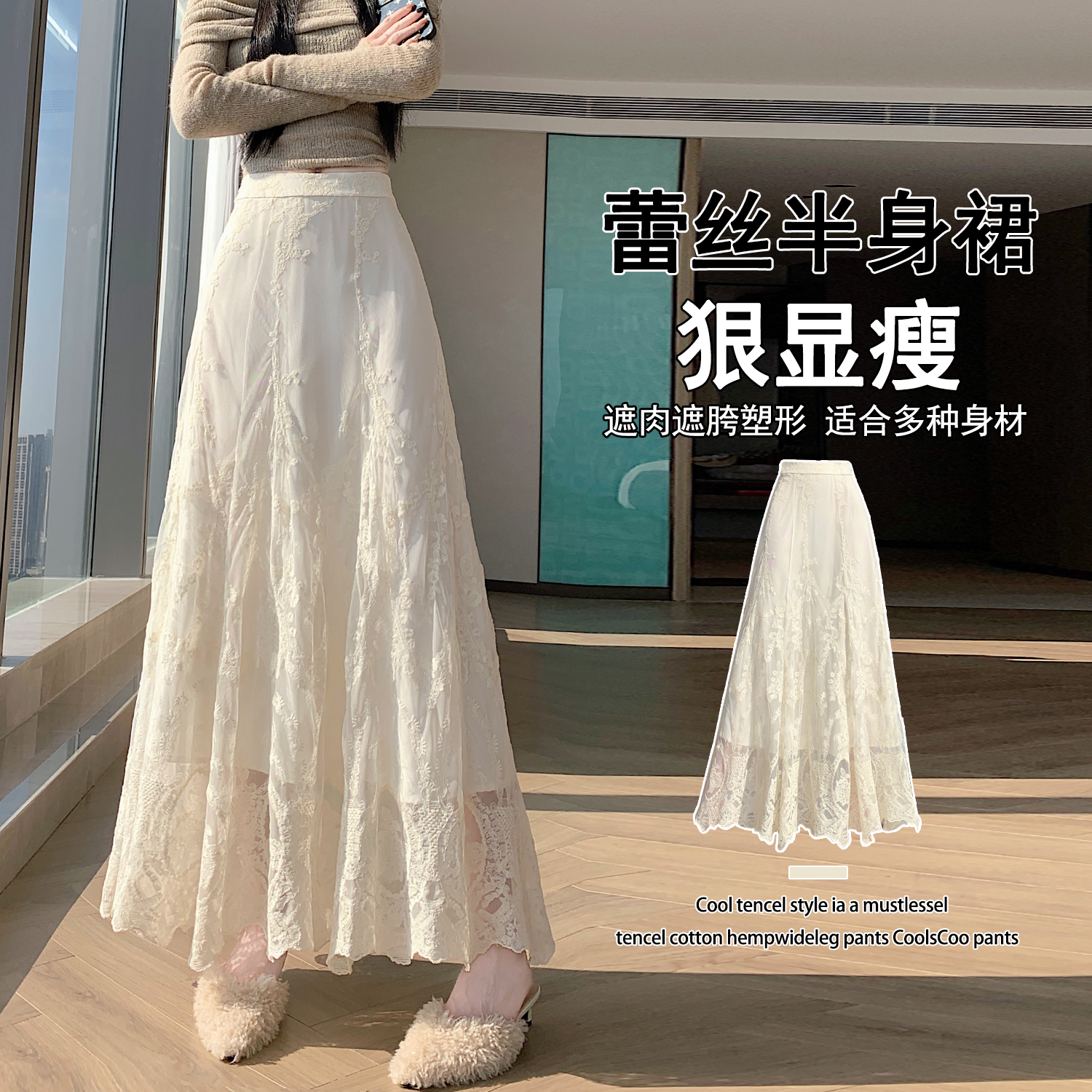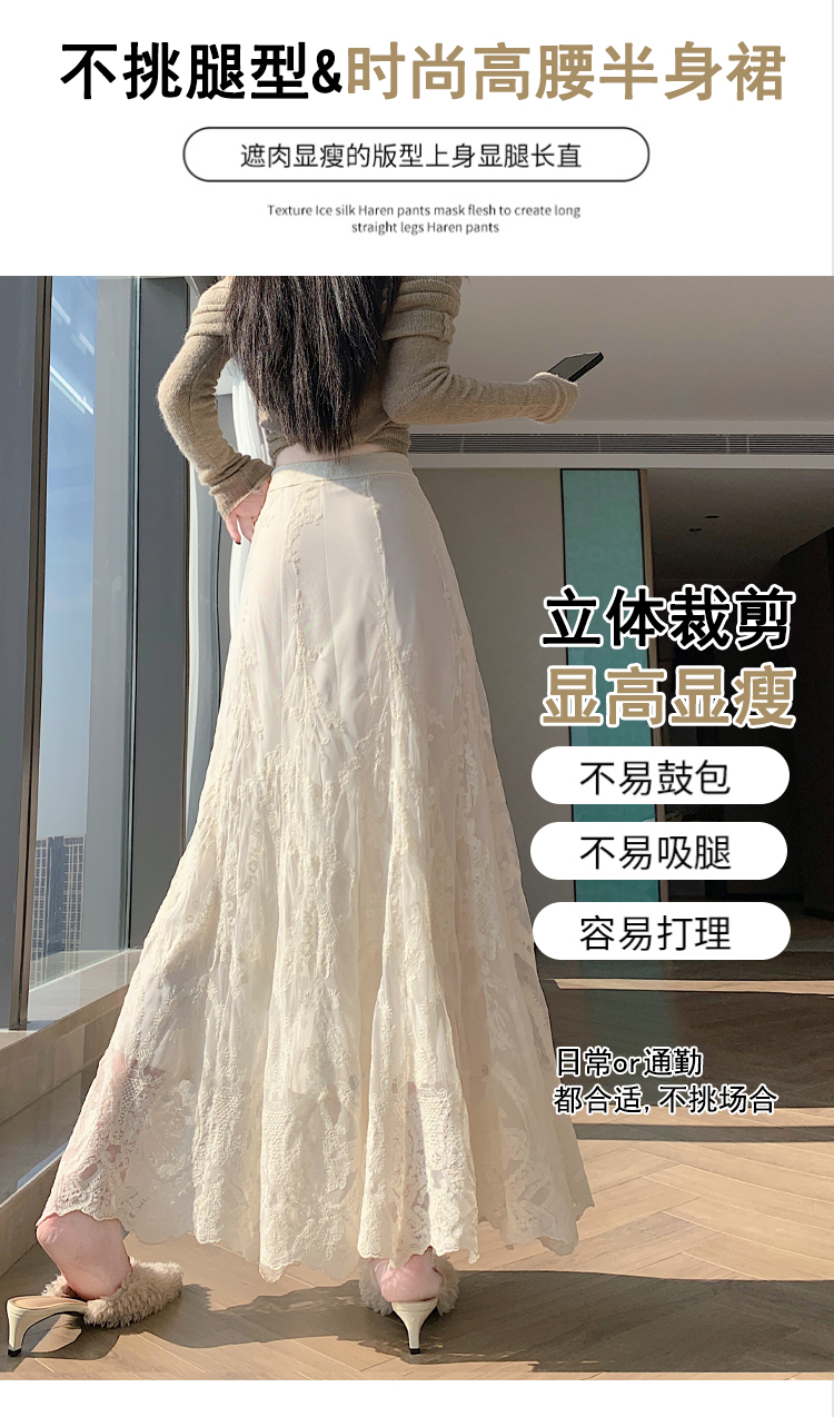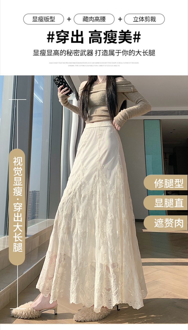 실사 불규칙 패치워크 프릴 반신 스커트 봄 여름 새로운 슬림해 보이는 다용도 레이스 케이크 롱 스커트 A라인 스커트