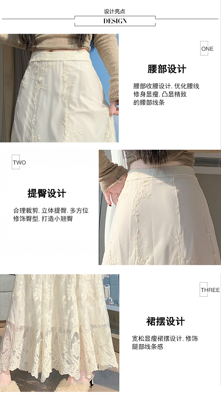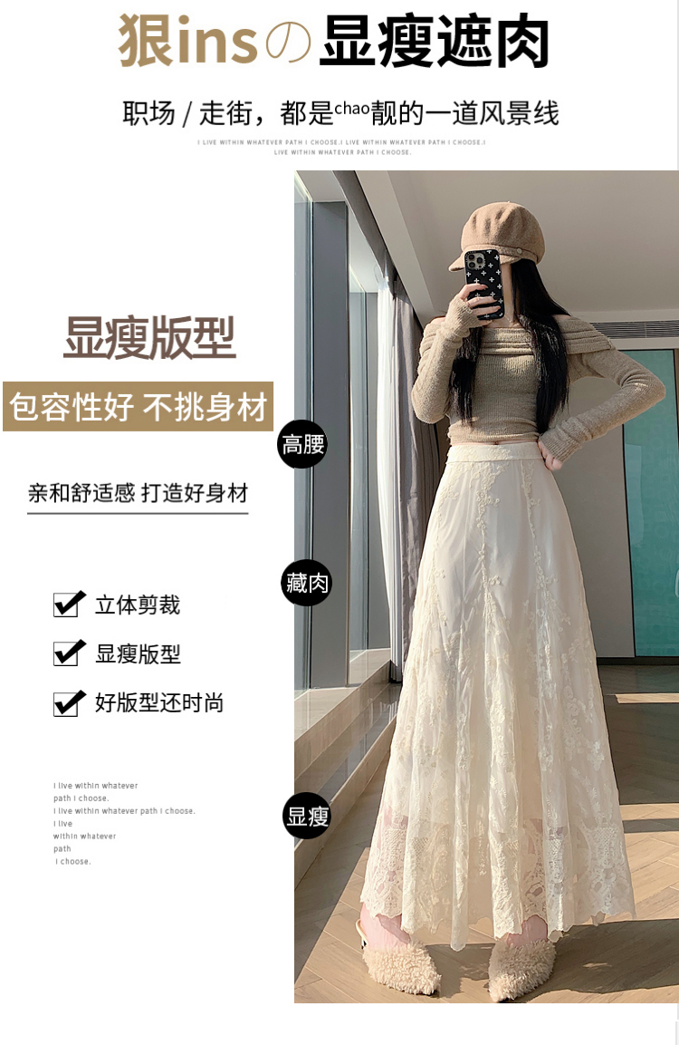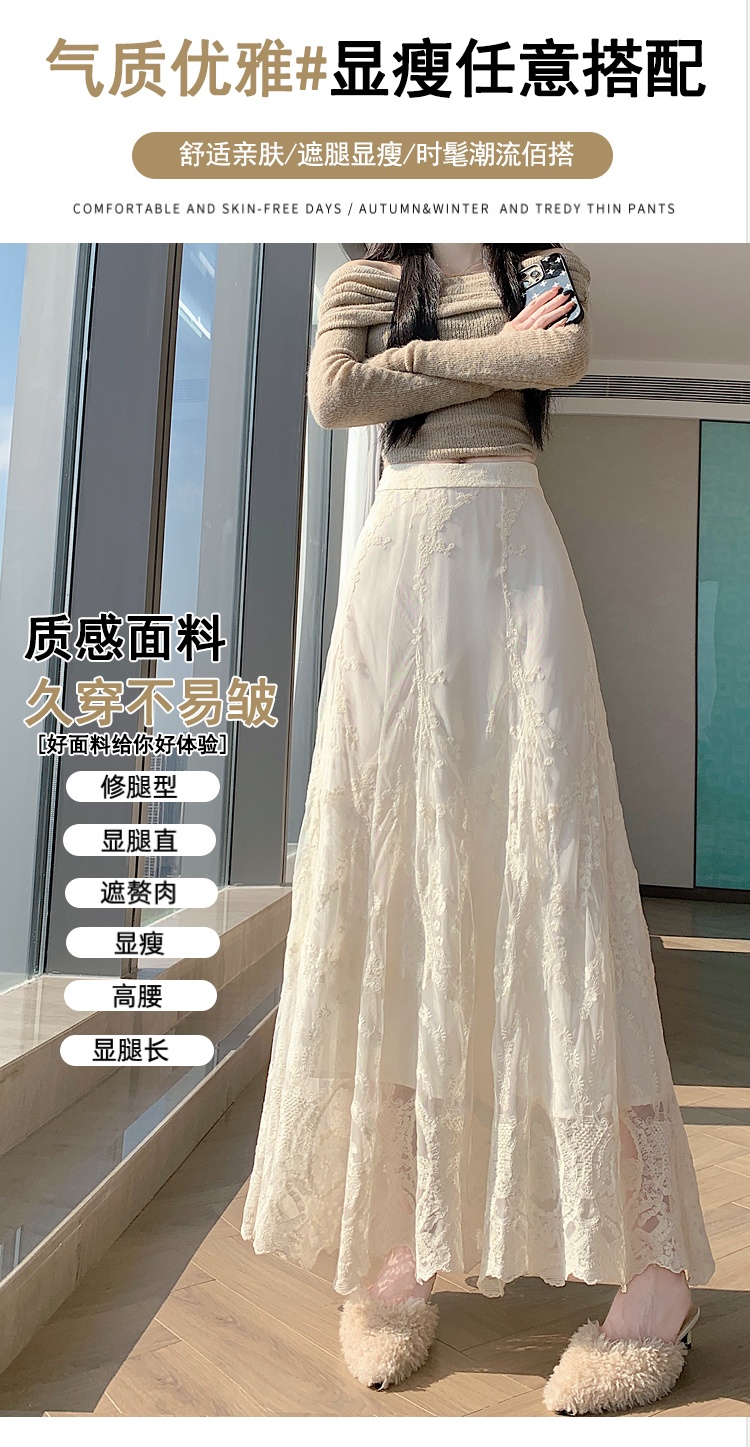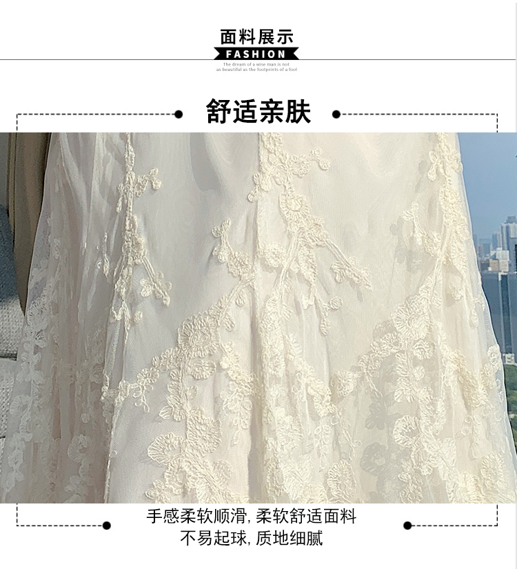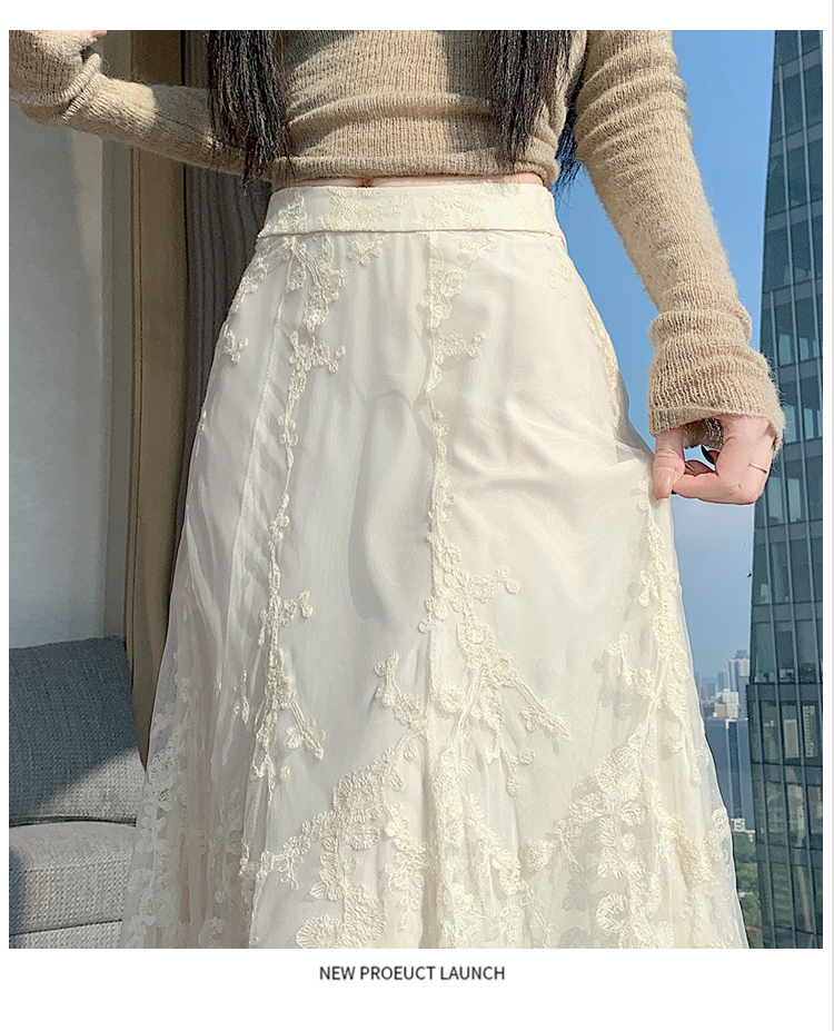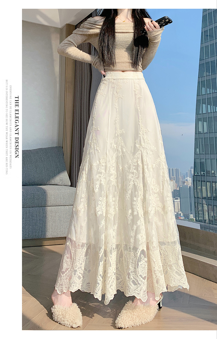 실사 가을 겨울 새로운 한국 스타일 하이웨이스트 부드러운 바람 망사 패치워크 레이스 드레스 표지 십자가 품격 빅 플레어 스커트