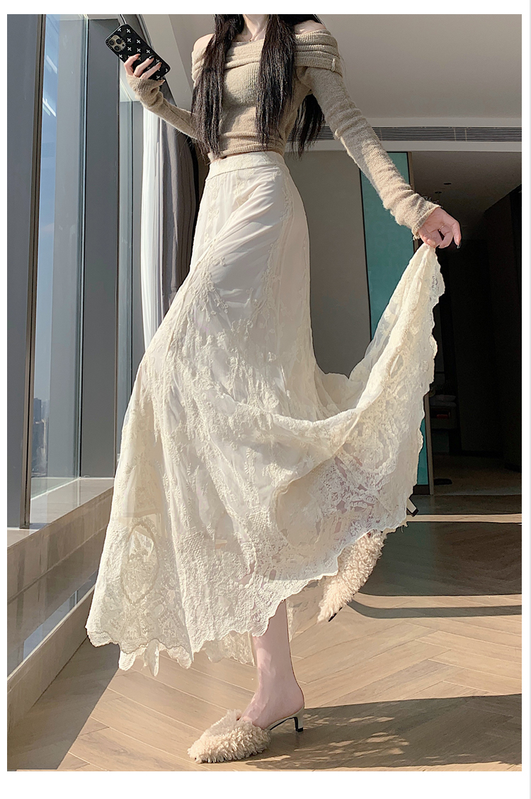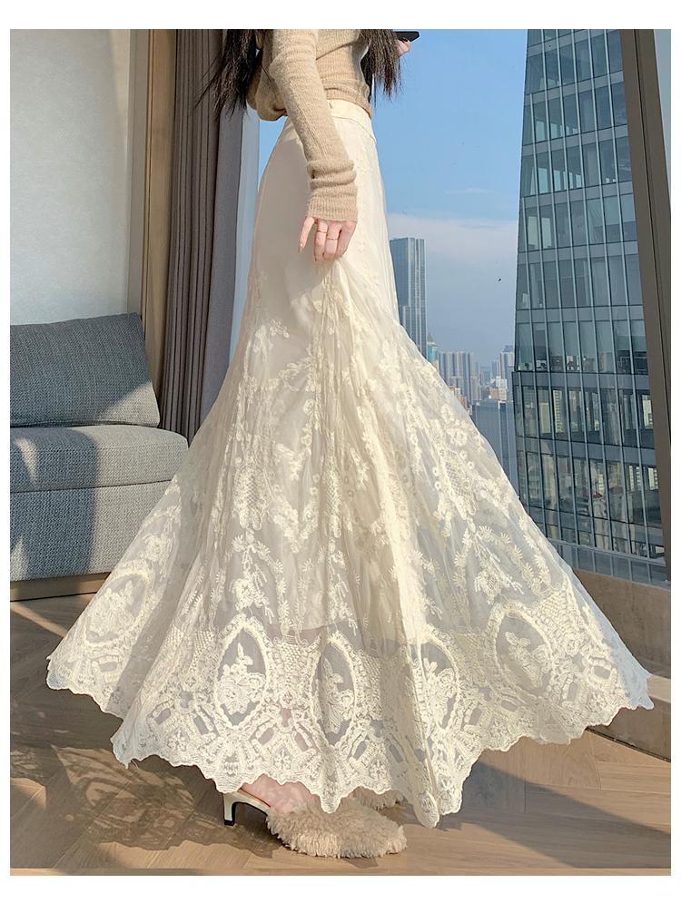 실사 레트로 레이스 조각 인어 꼬리 스커트 2026 봄 여름 하이웨이스트 슬림해 보이는 품격 타이트 스커트 한 마디 롱 스커트