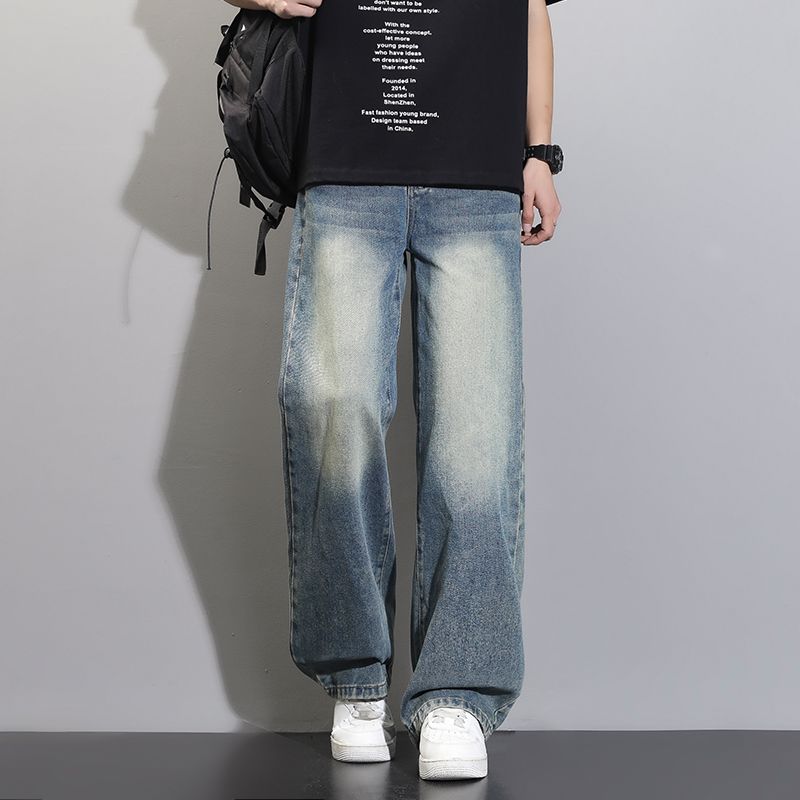 사계절 워시 물 바닥 청소 남성 청바지 레트로 항구 바람 루즈핏 스트레이트 트렌드 다용도 바지 와이드 레그 팬츠 긴 바지