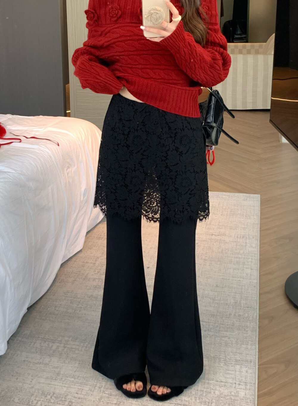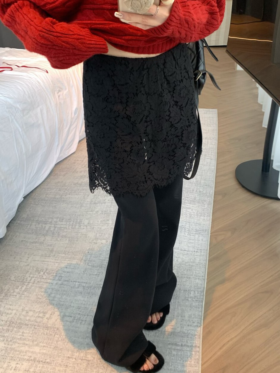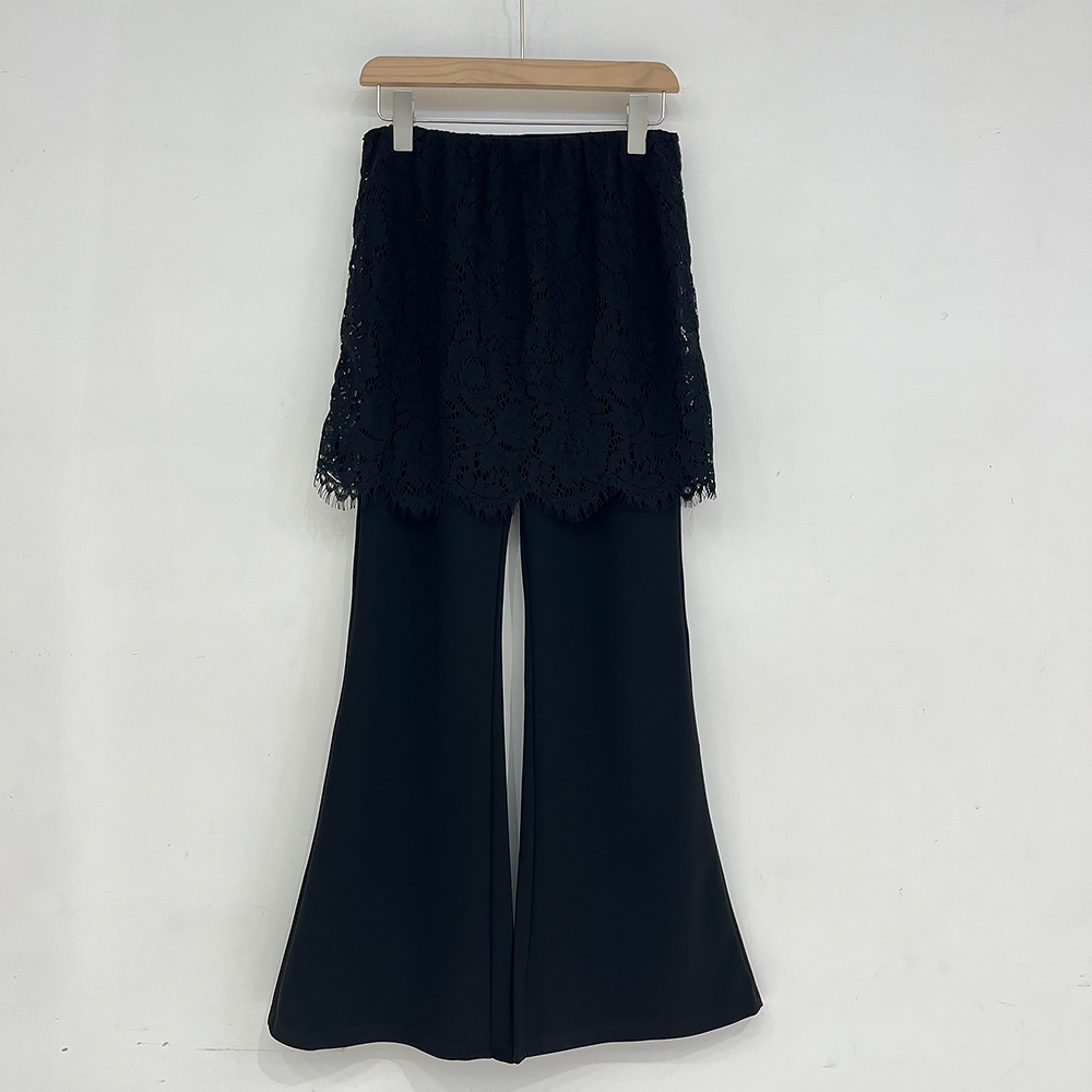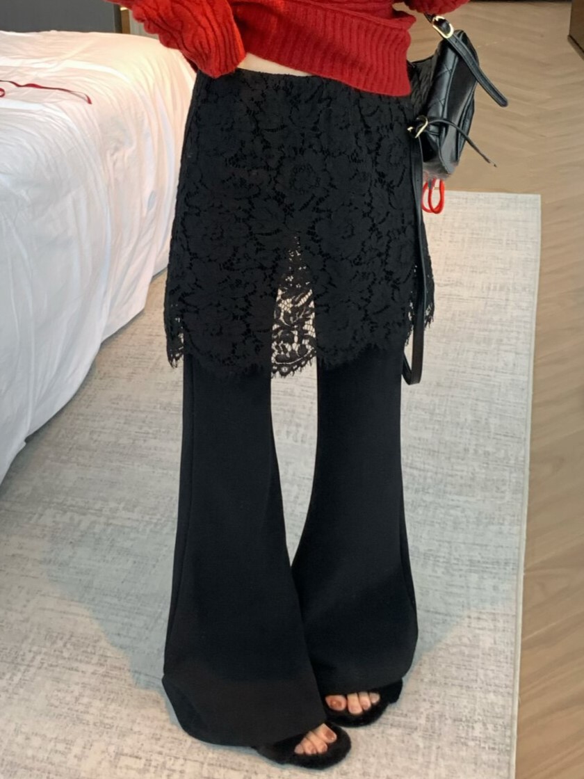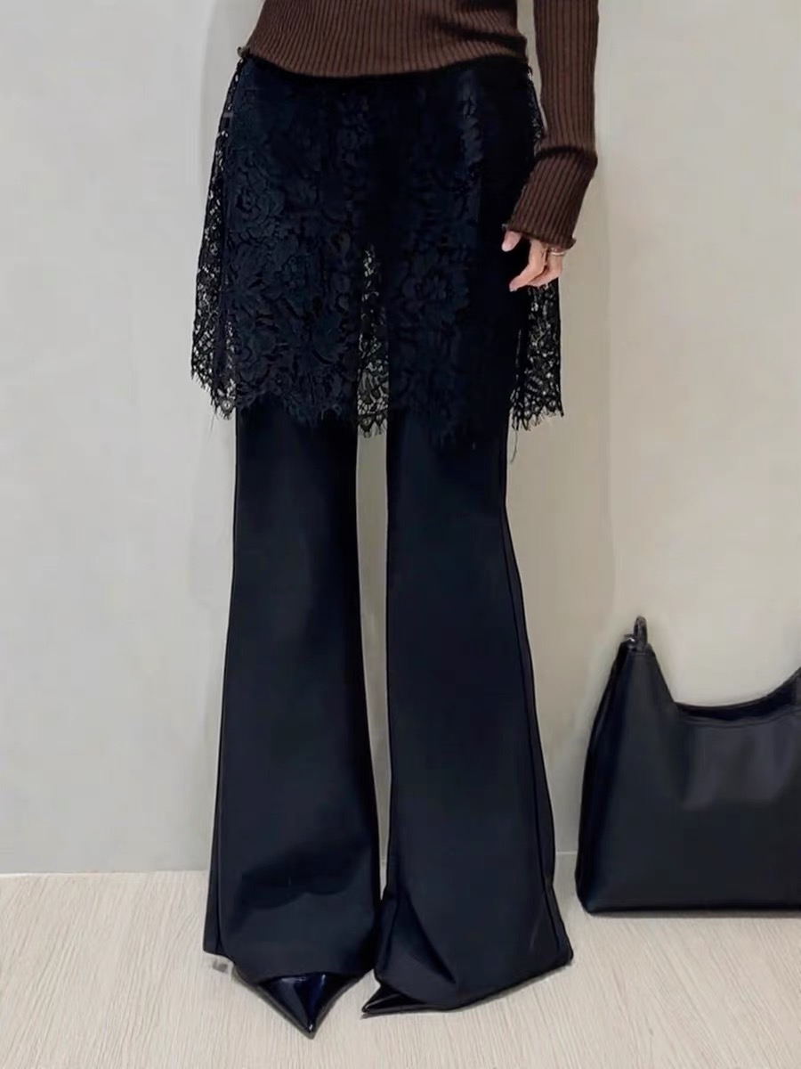 물리적 인지도 있음 업데이트 2026 봄 패션 페이크 레이어드 레이스 방귀 커튼 부츠컷 하이웨이스트 캐주얼 바지 여성 8752