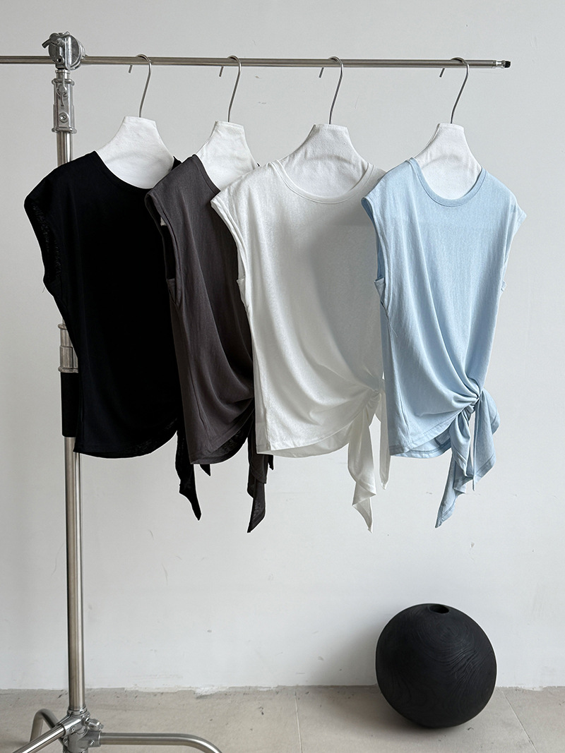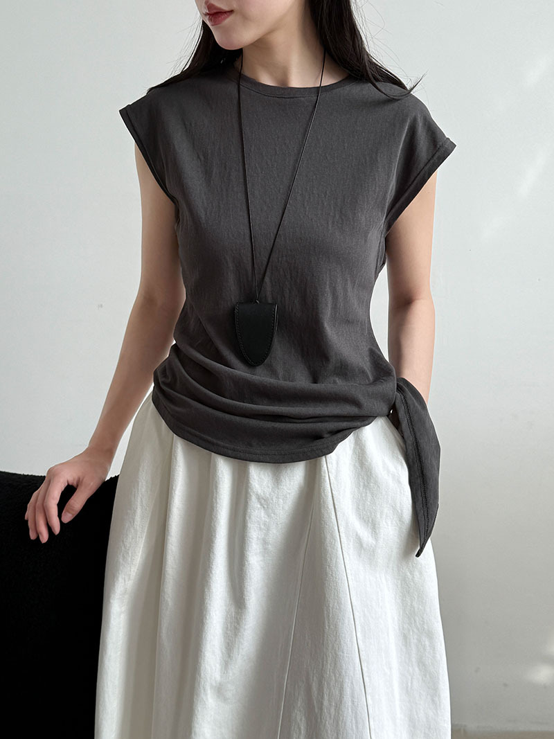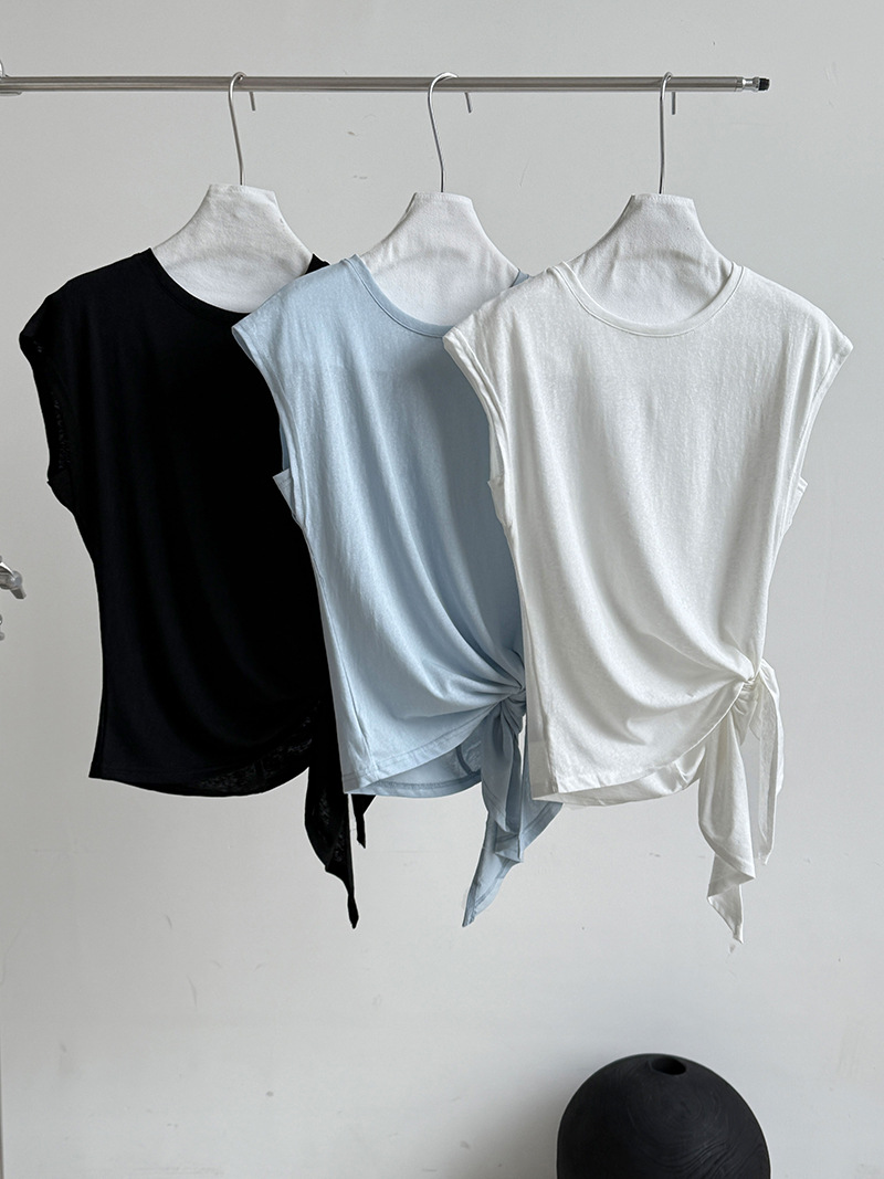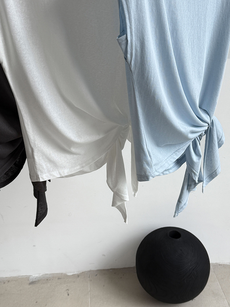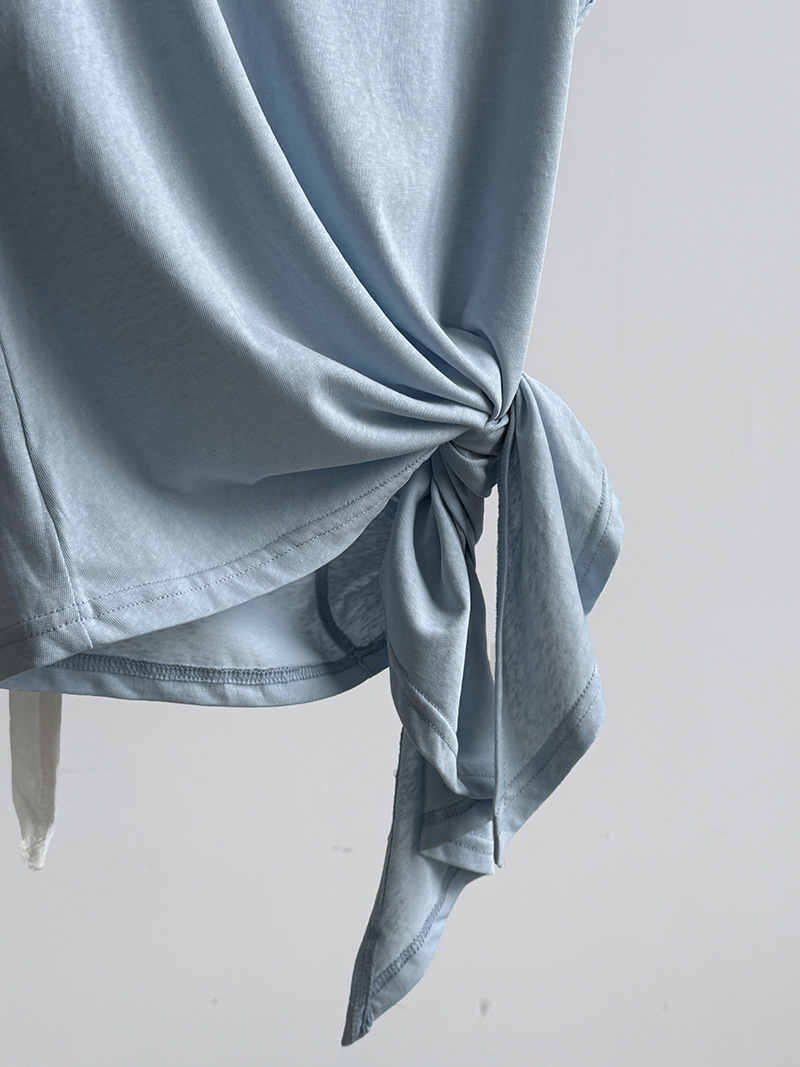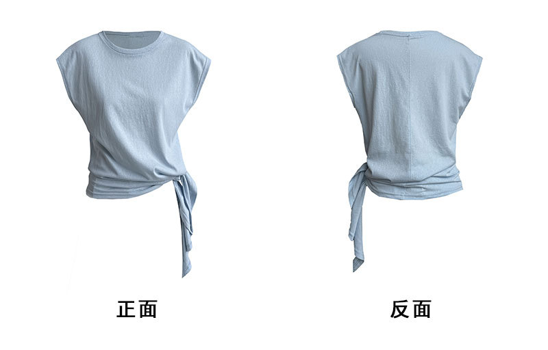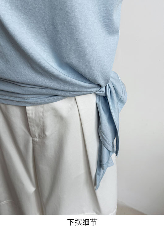 2026 한국 스타일 미니멀리즘 몸매 가꾸기 레이스업 반팔 여성 여름 새로운 허리 수축 불규칙 밑단 티셔츠 맨위