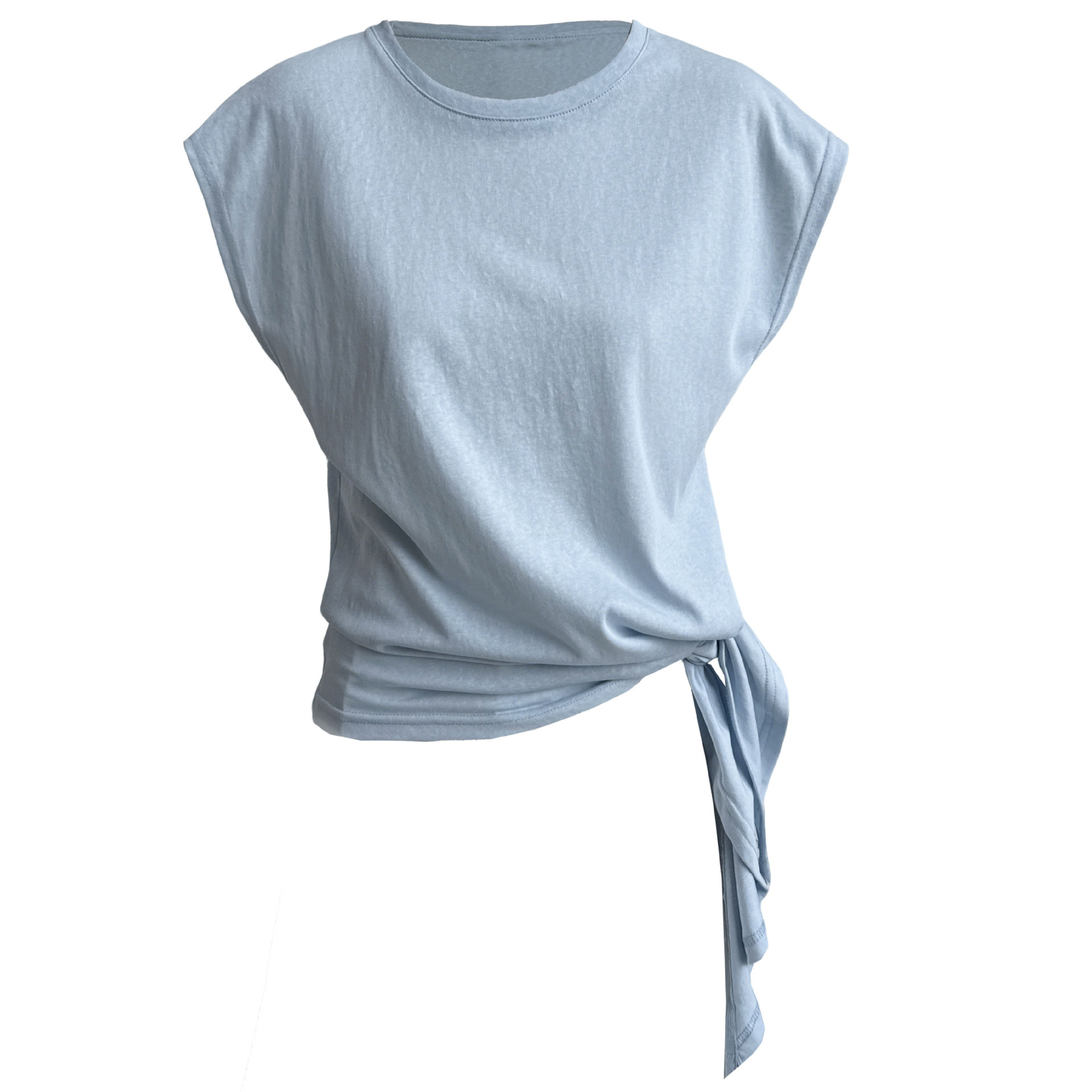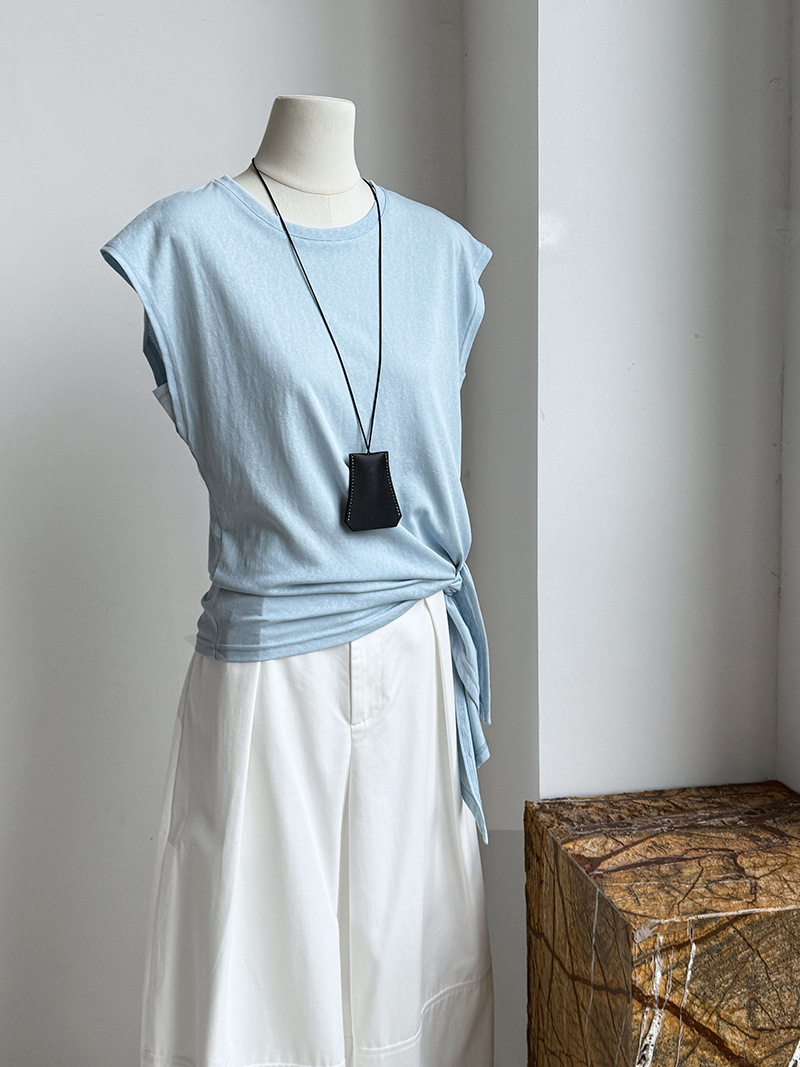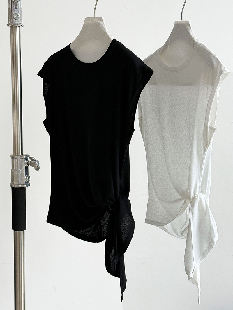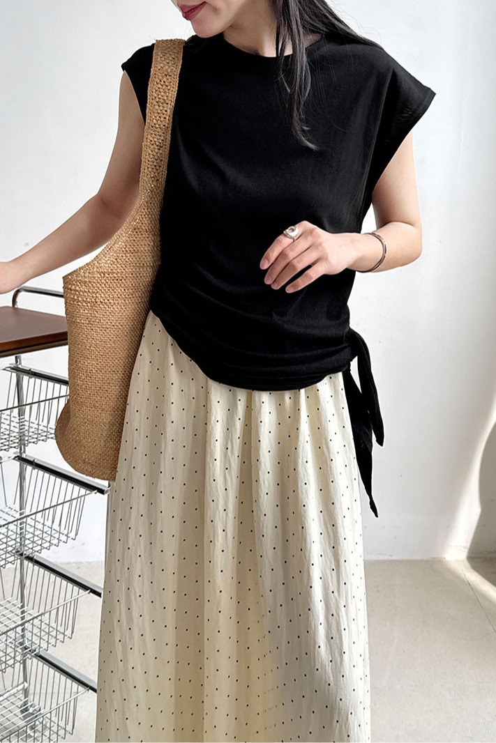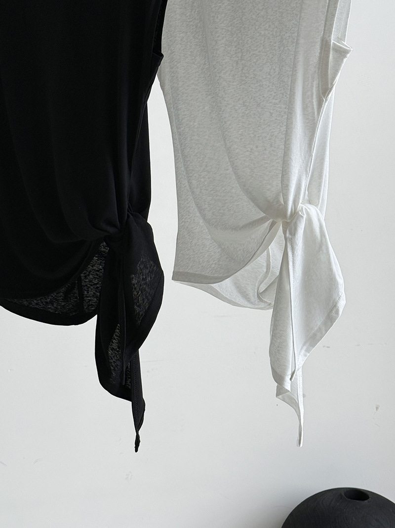 2026 한국 스타일 미니멀리즘 몸매 가꾸기 레이스업 반팔 여성 여름 새로운 허리 수축 불규칙 밑단 티셔츠 맨위