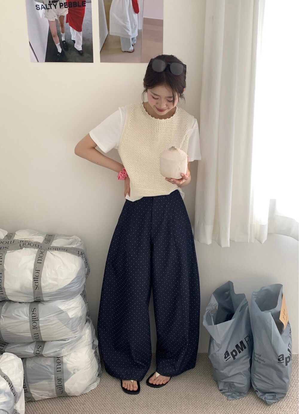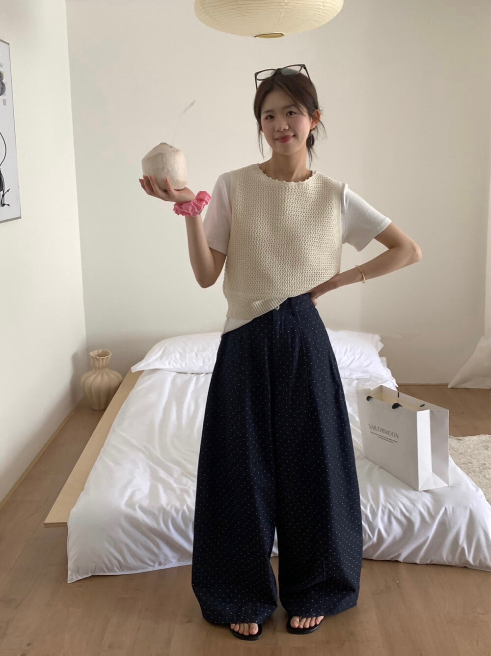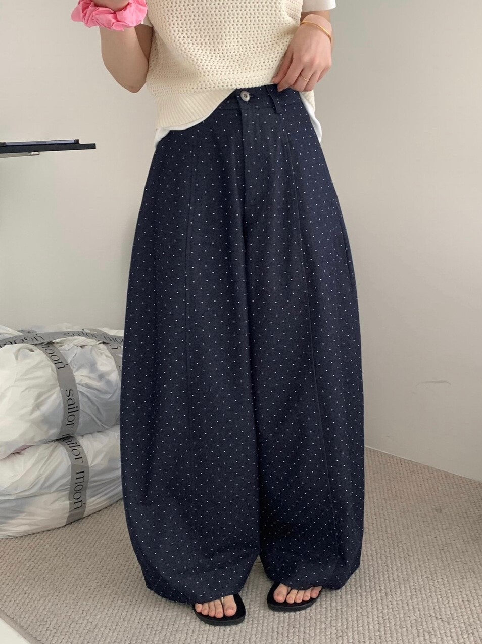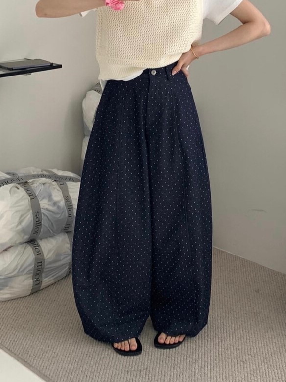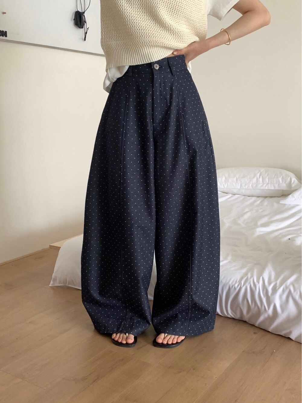 물리적 인지도 있음 업데이트 여름 섹션 디자인 센스 넓은 다리 도트 무늬 패션 캐주얼 바지