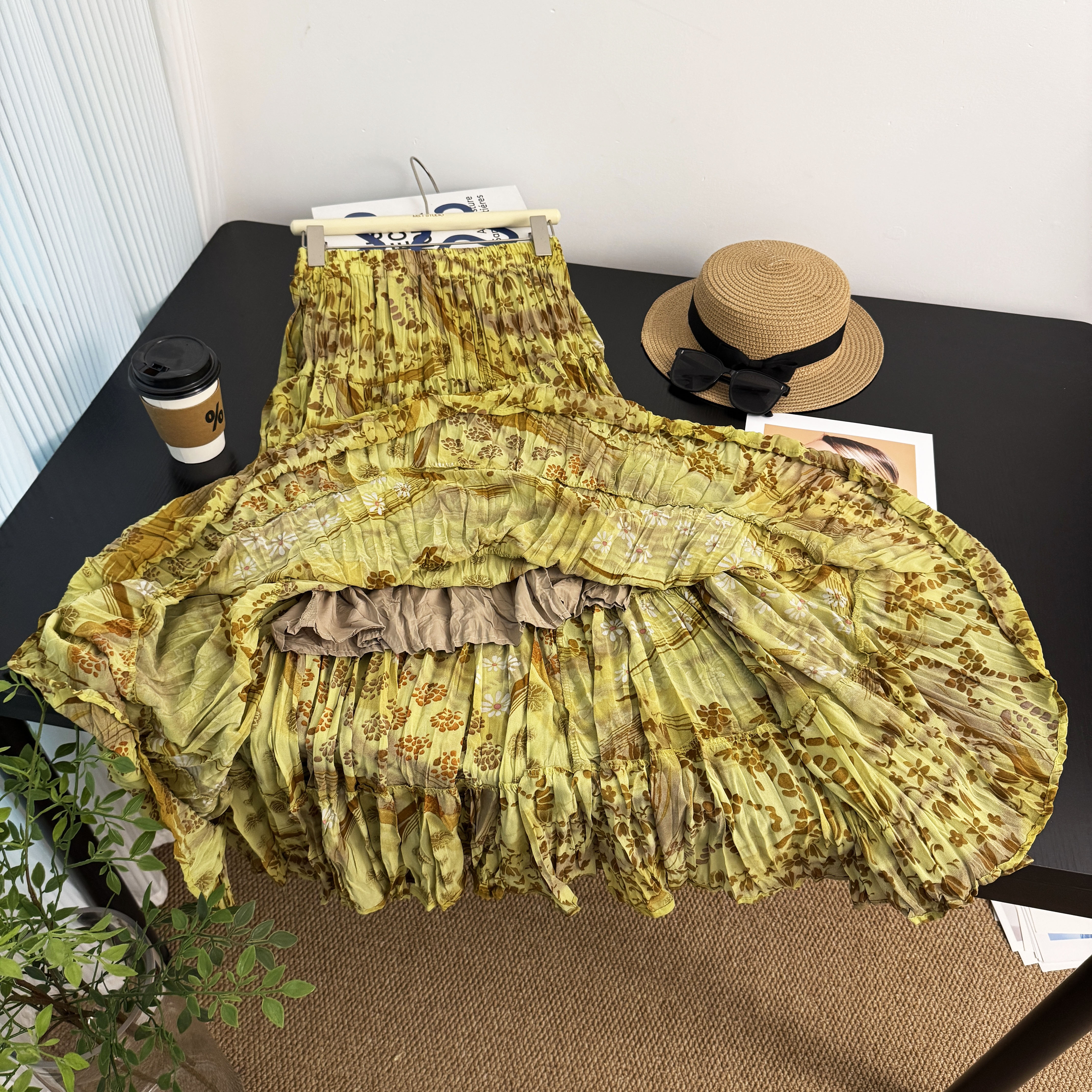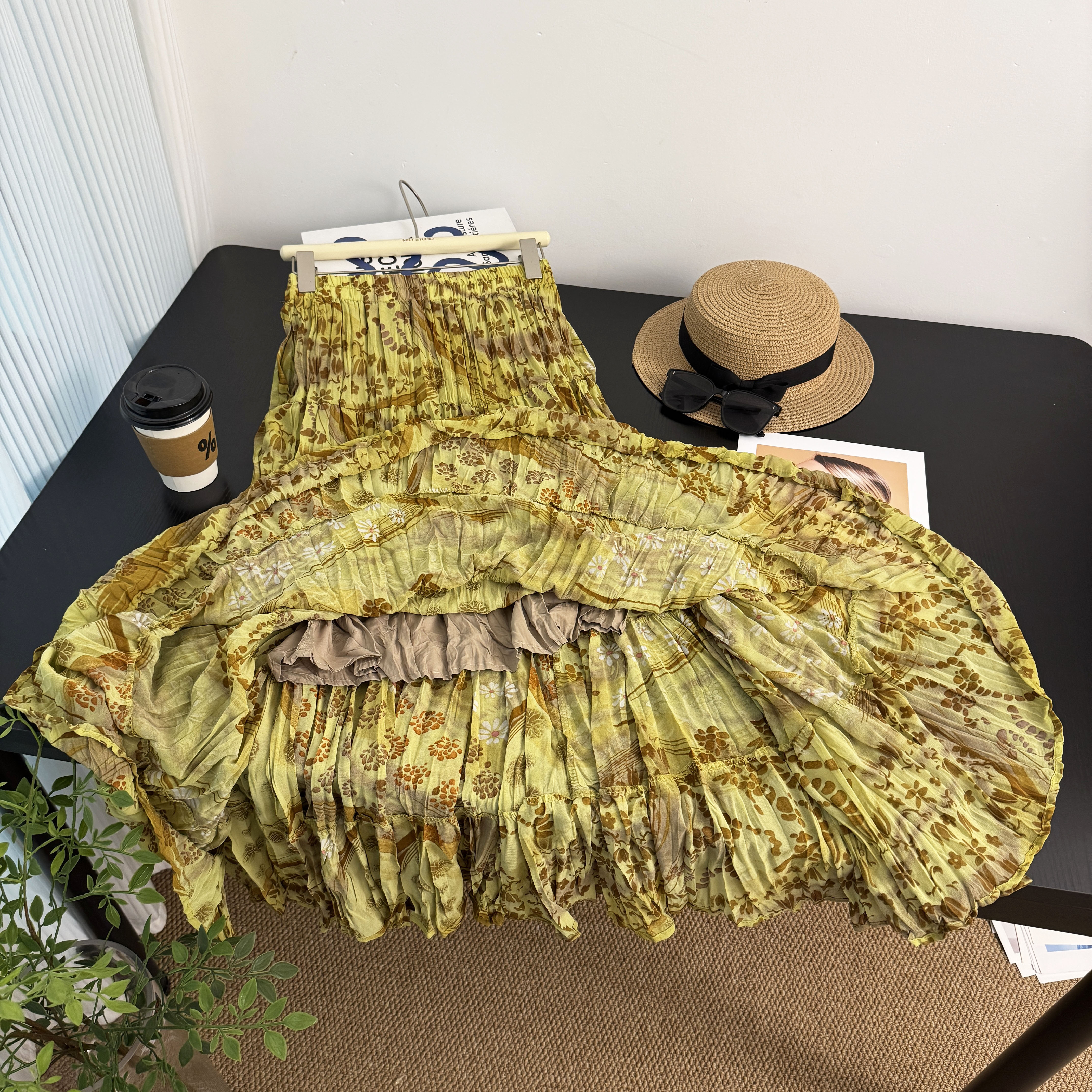 작은 대중 레트로 꽃무늬 반신 스커트 여성 2025 여름 휴가 해변 롱 스커트 슈퍼 요정 품격 쉬폰 빅 플레어 스커트 트렌디