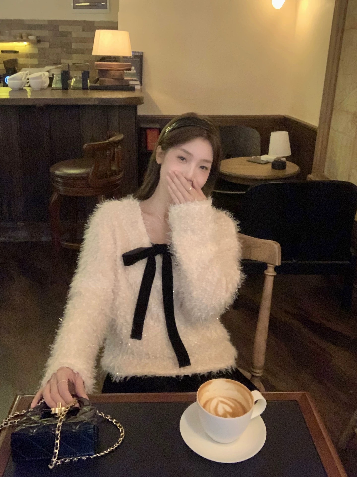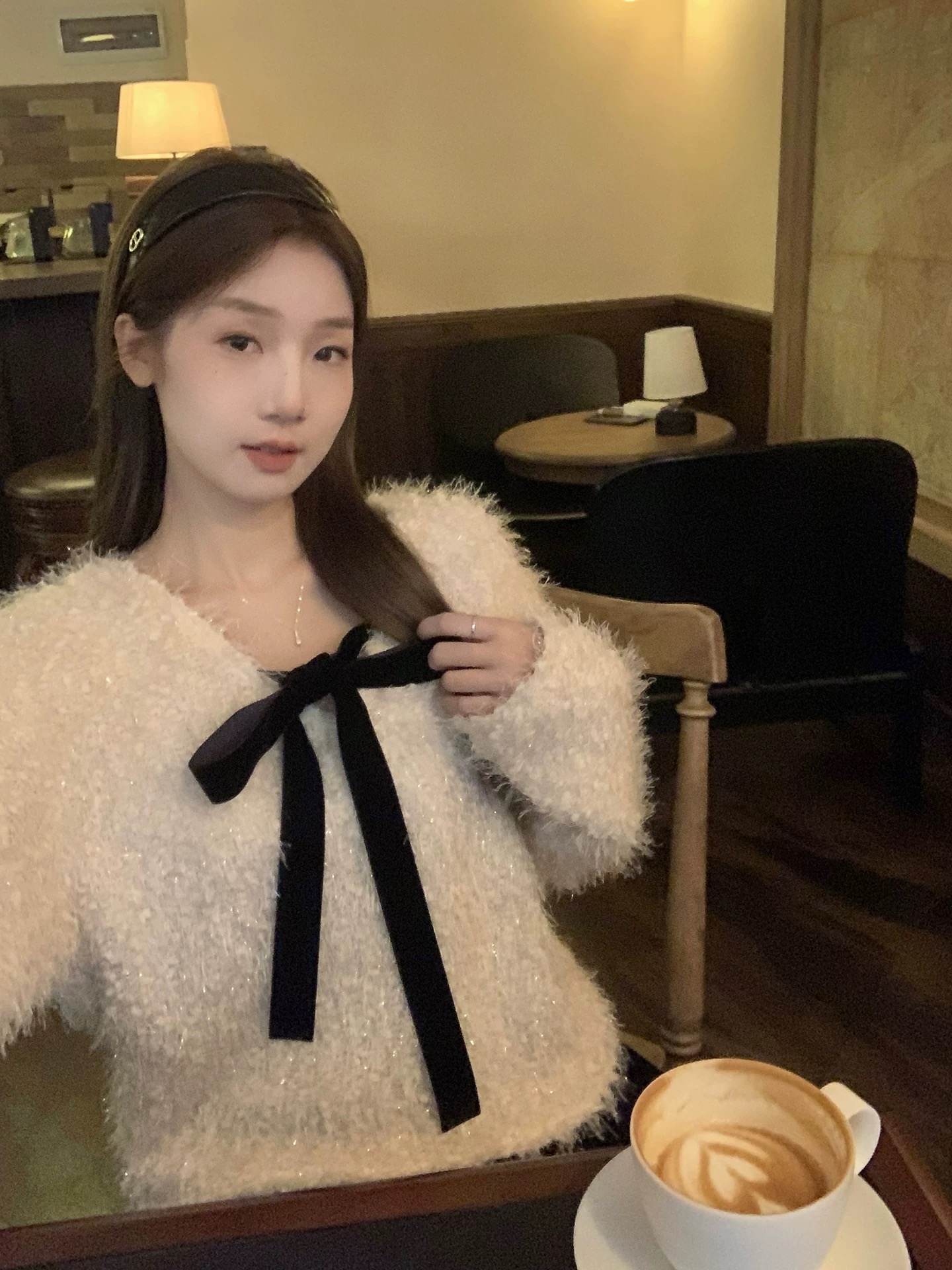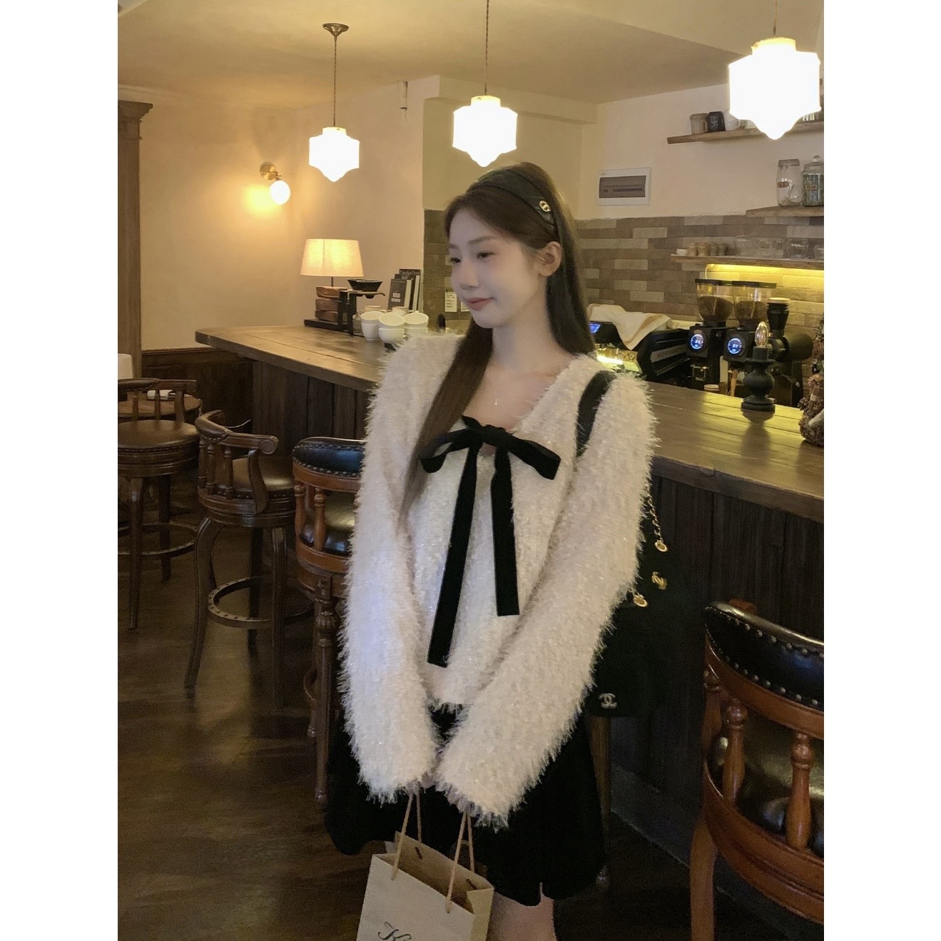 열세 개 가을과 겨울 높음 빛 순간 벨벳 나비 매듭 무거운 작업 은사 보온 스웨터 프랑스식 부드러운 명문 여성 여성