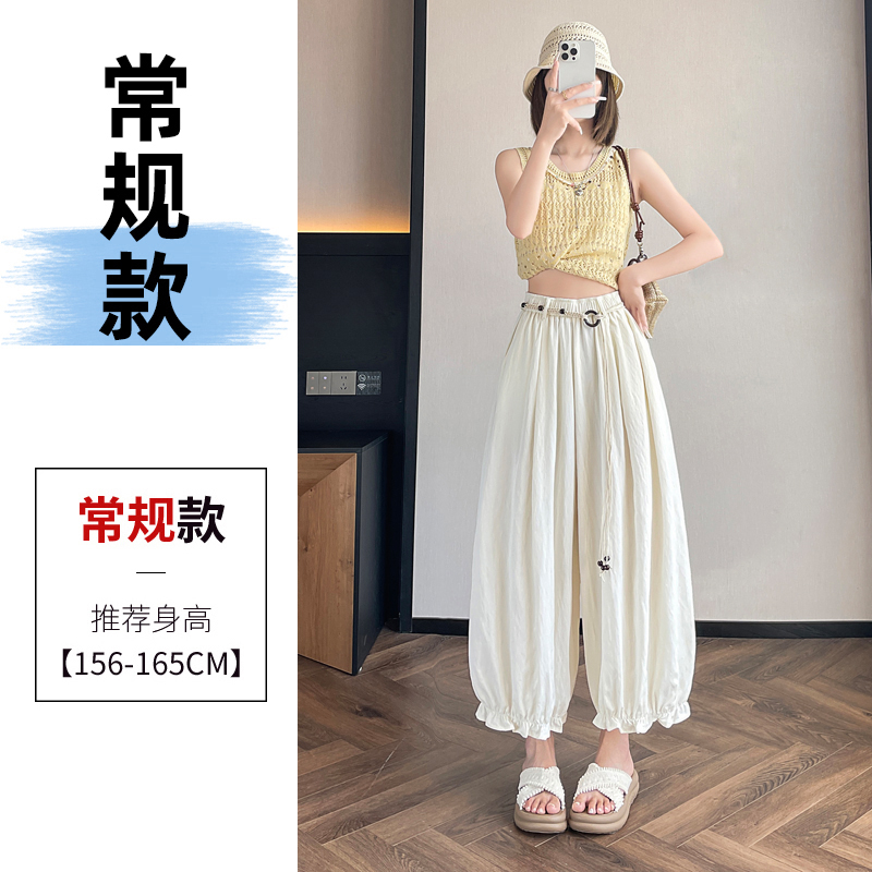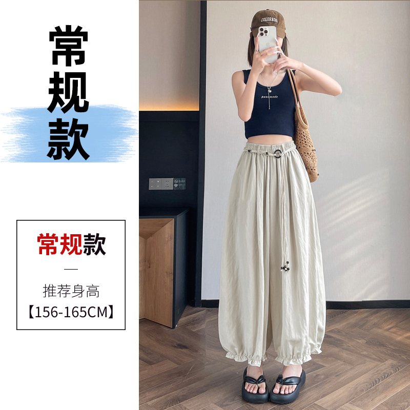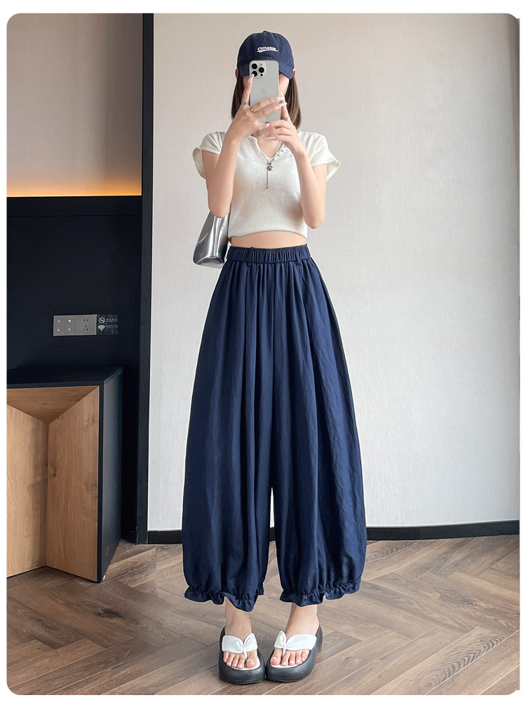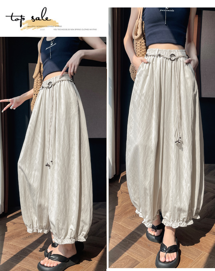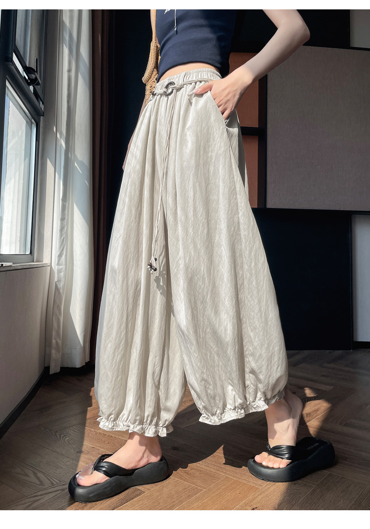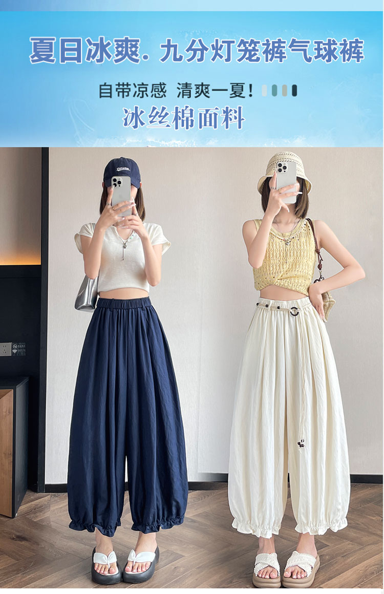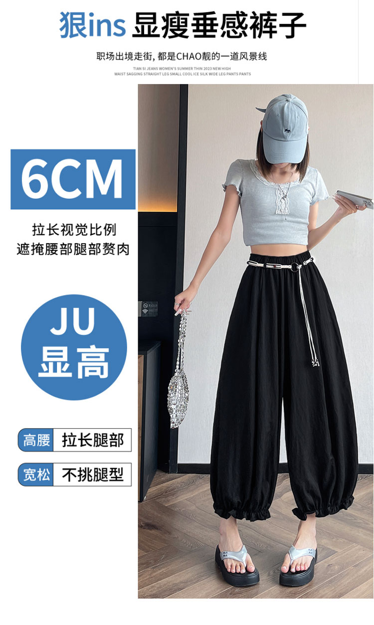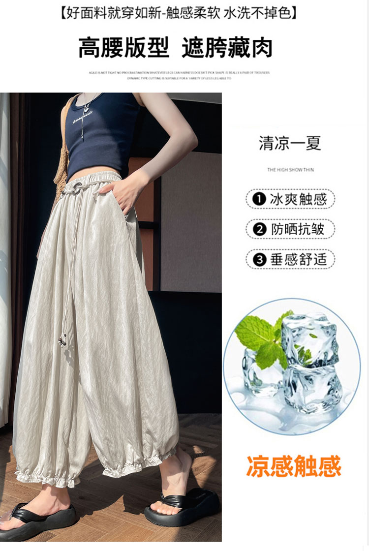 실사 여름 새로운 꽃밭 배기 바지 루즈핏 슬림해 보이는 하이웨이스트 다용도 캐주얼 얼음 실크 풍선 바지