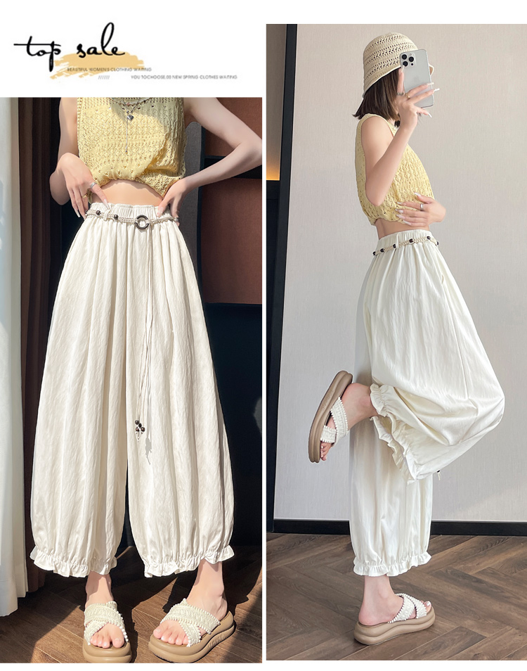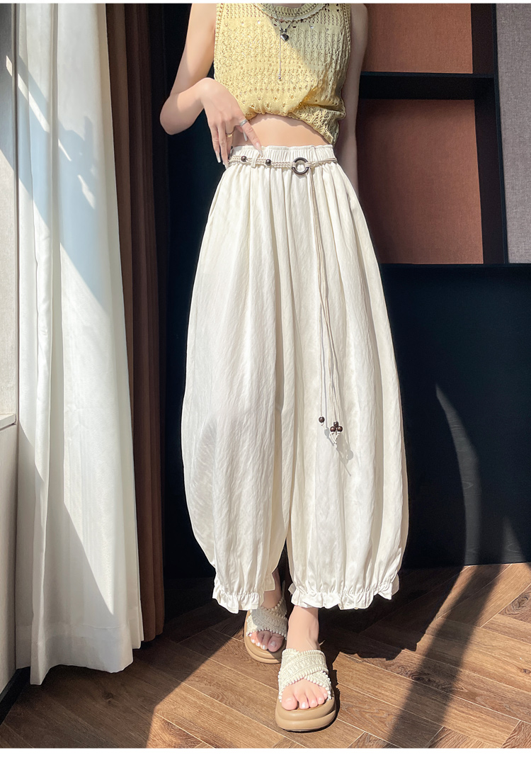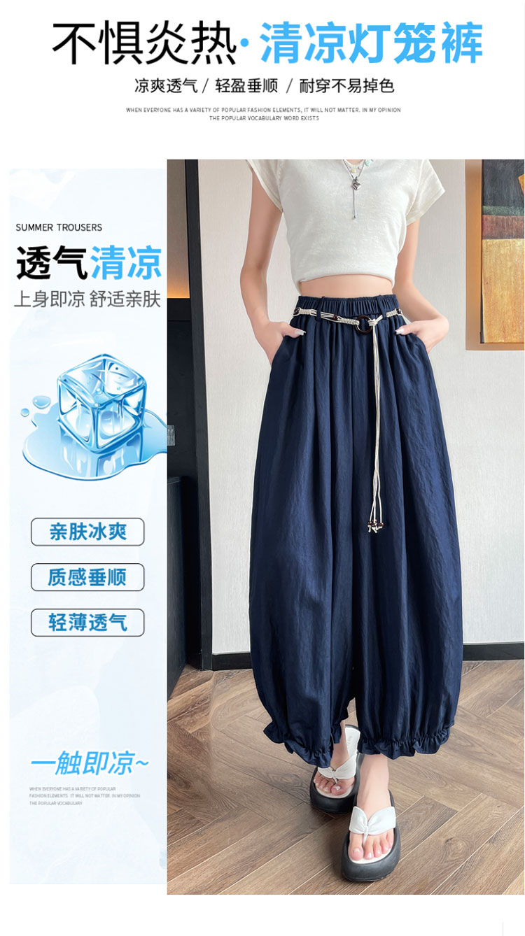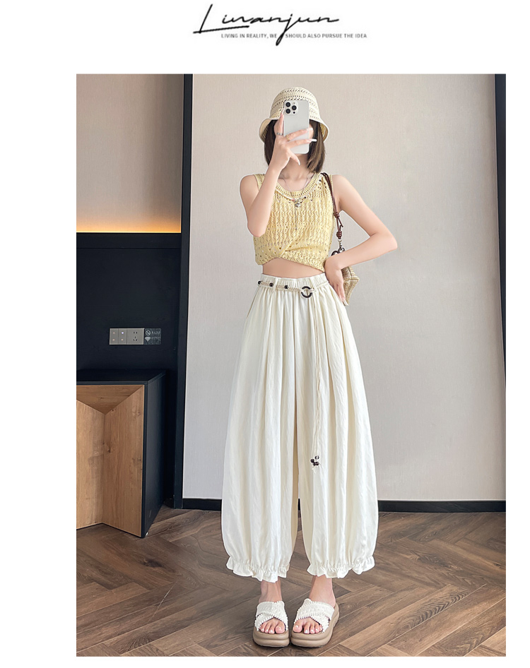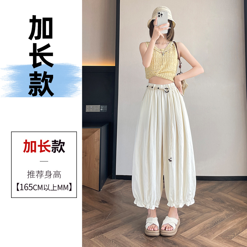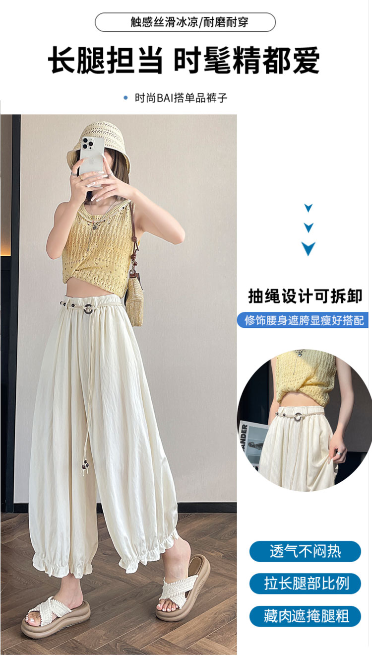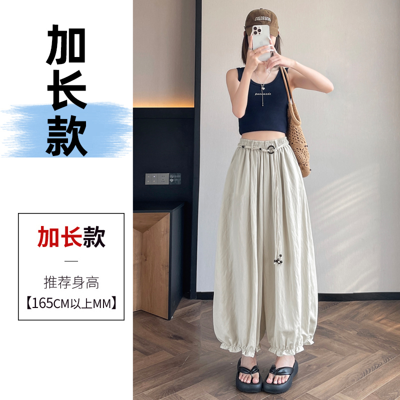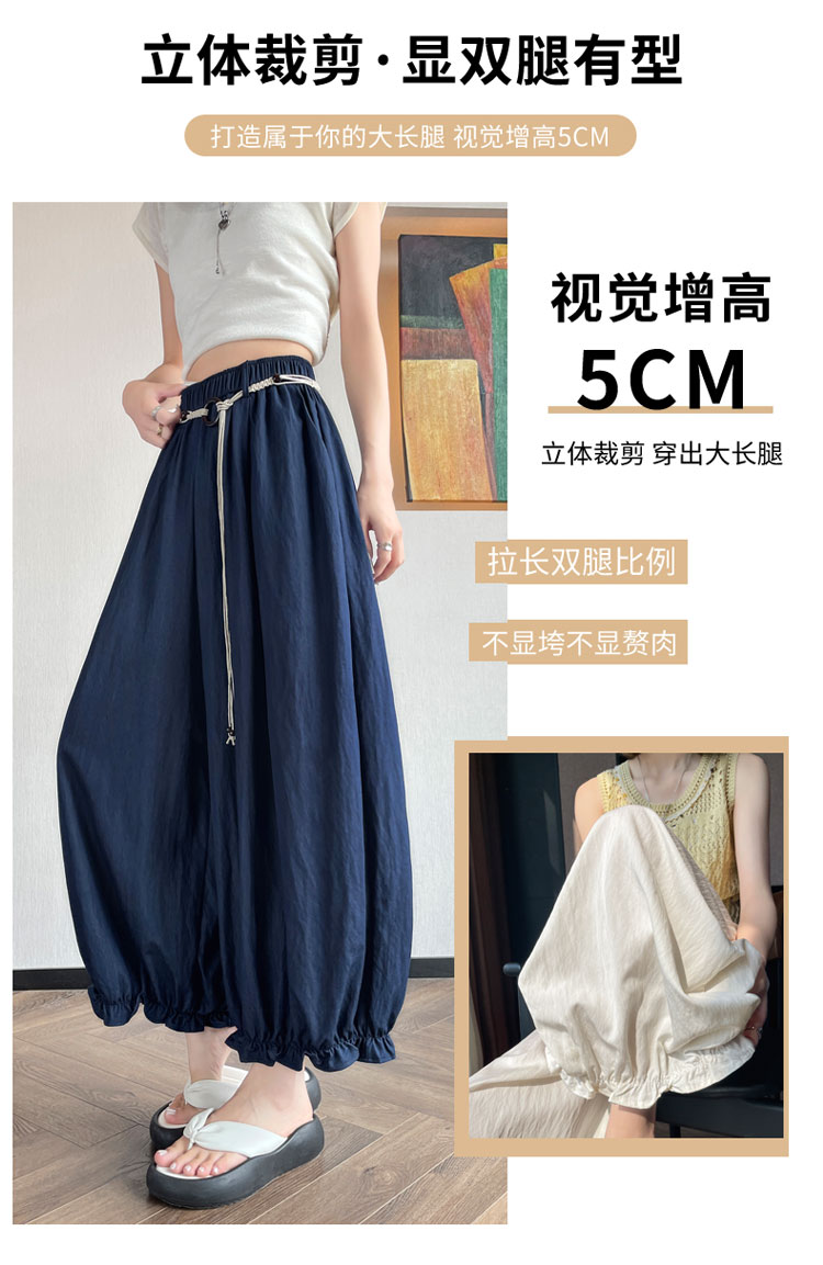 실사 여름 새로운 꽃밭 배기 바지 루즈핏 슬림해 보이는 하이웨이스트 다용도 캐주얼 얼음 실크 풍선 바지