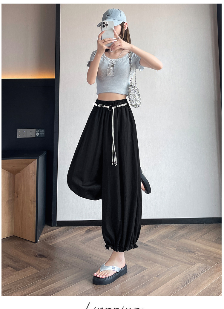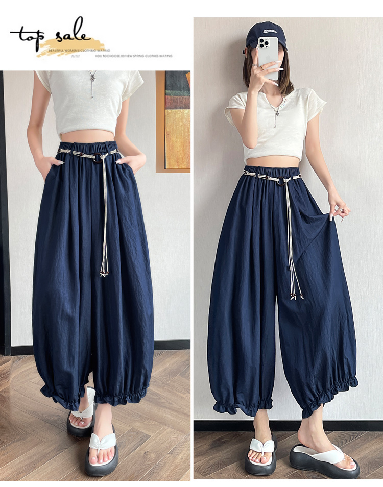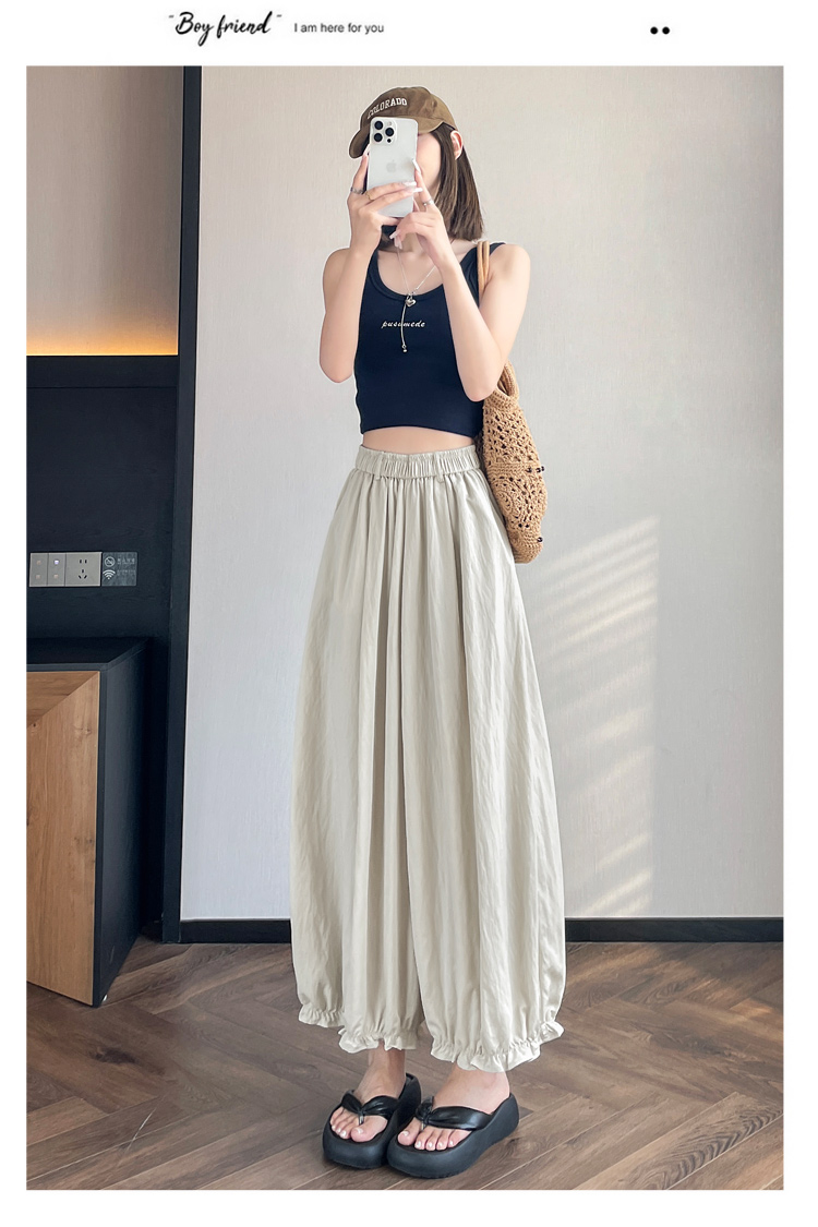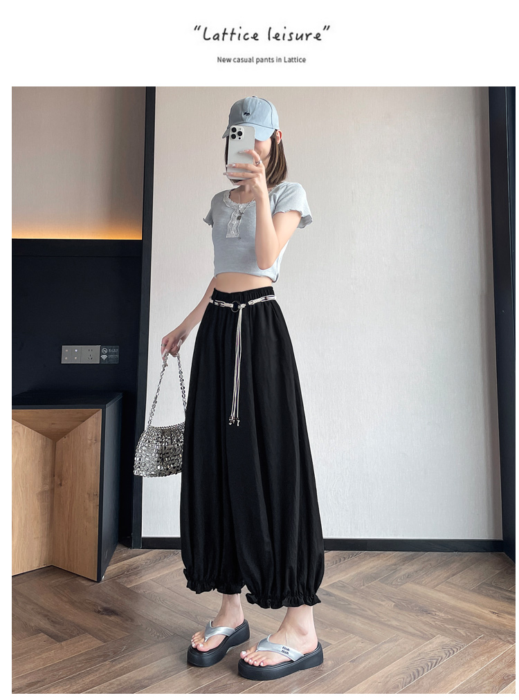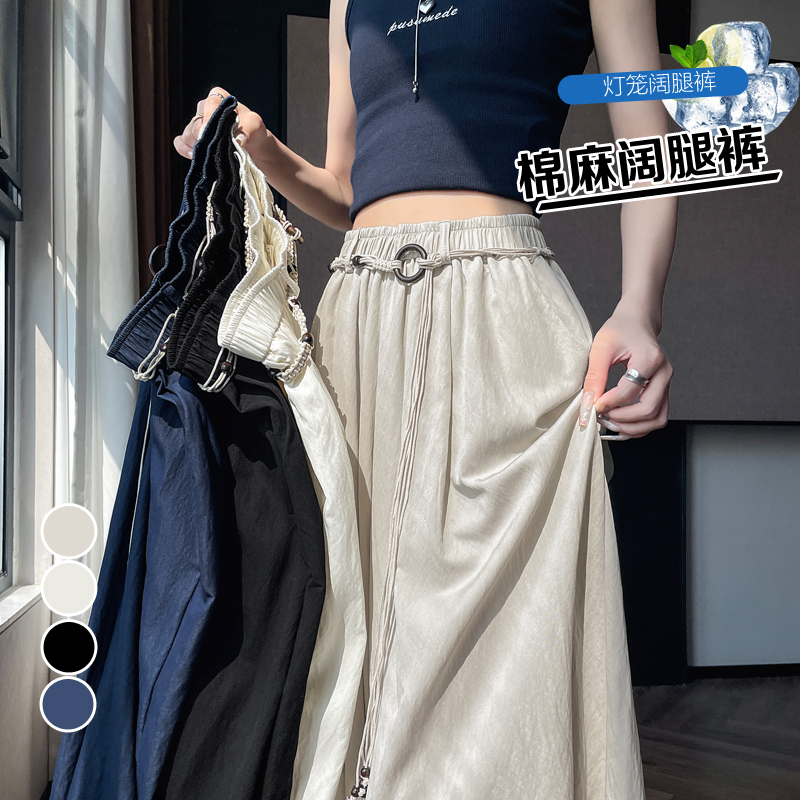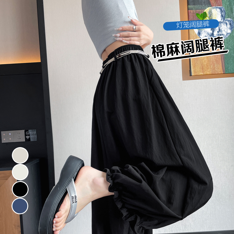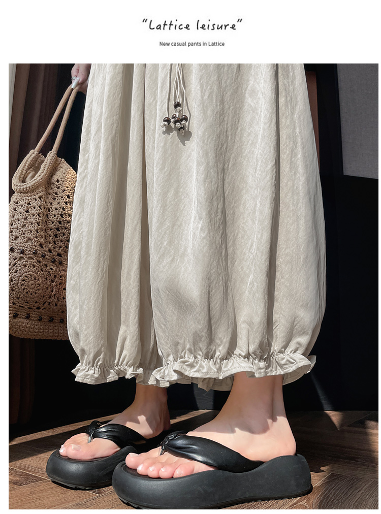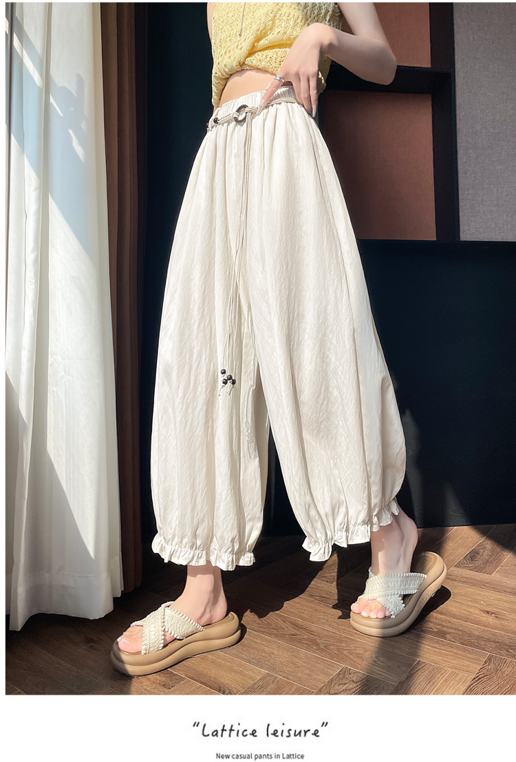 실사 여름 새로운 꽃밭 배기 바지 루즈핏 슬림해 보이는 하이웨이스트 다용도 캐주얼 얼음 실크 풍선 바지