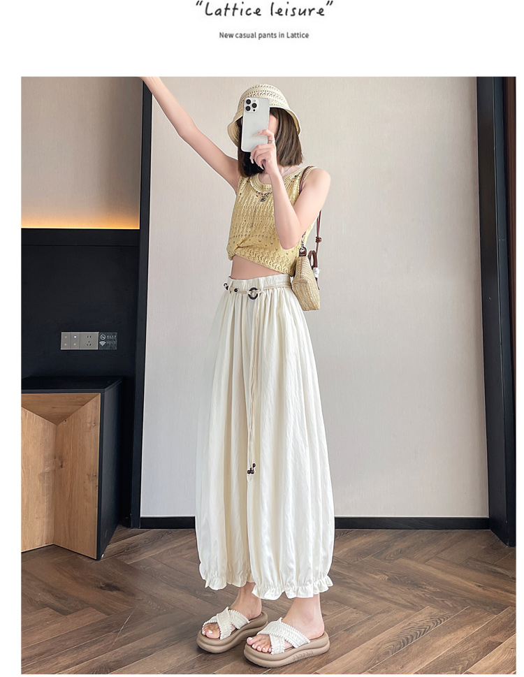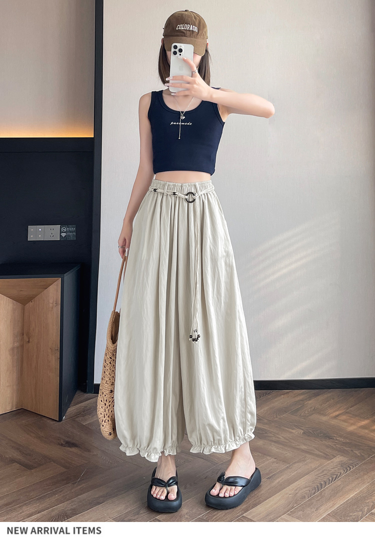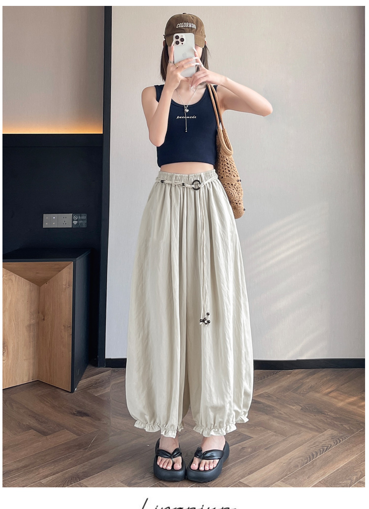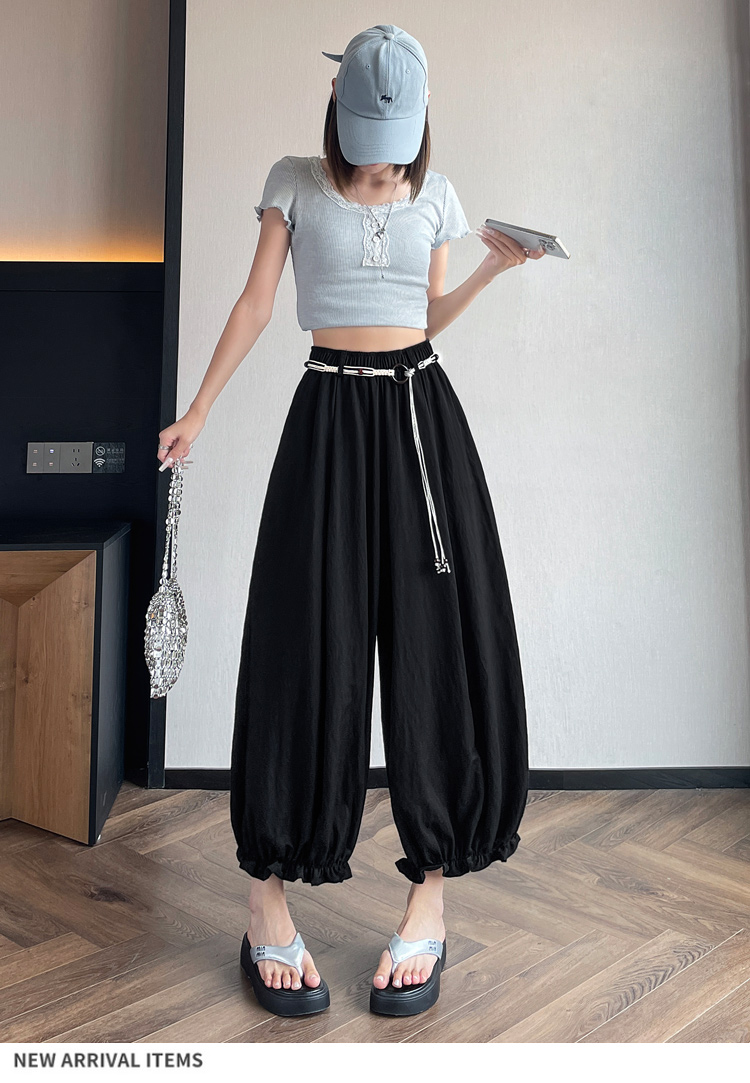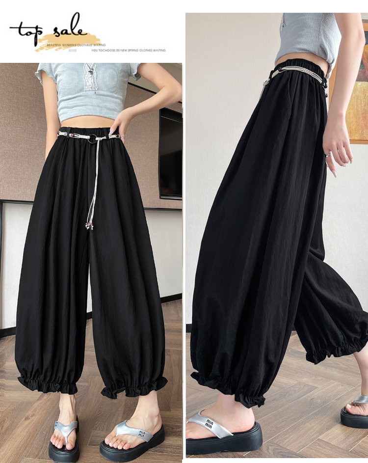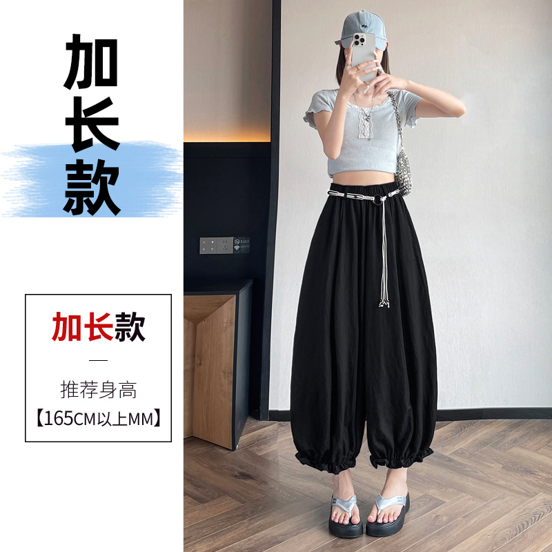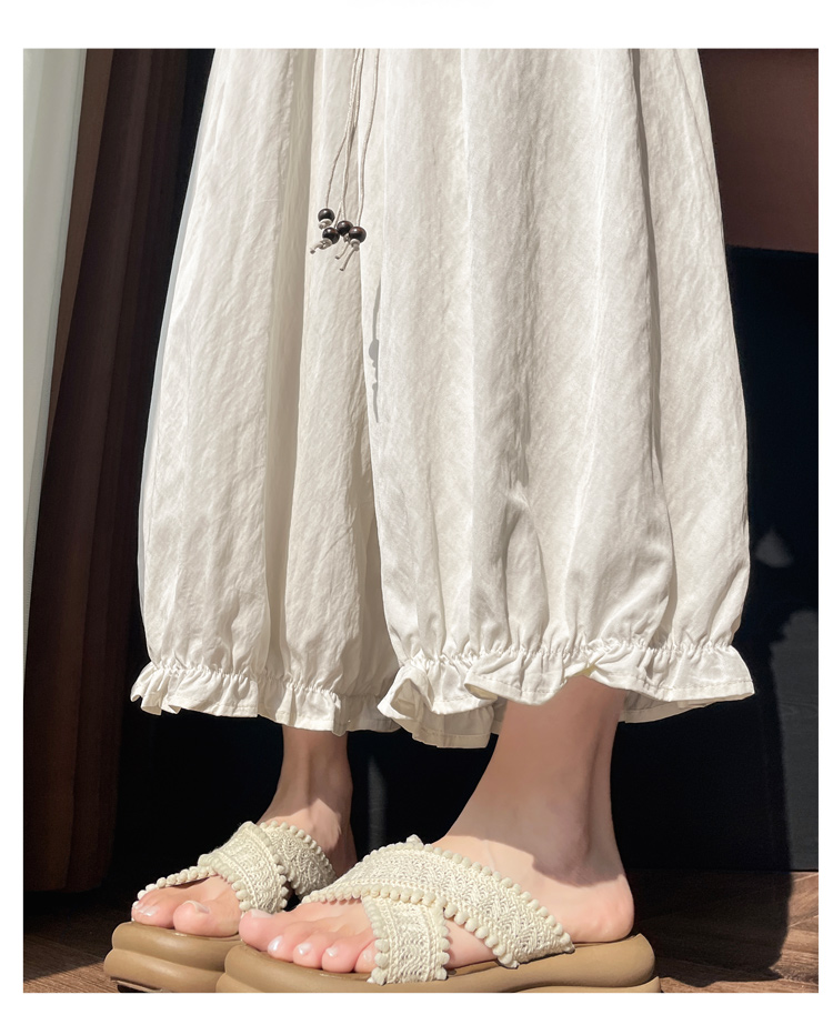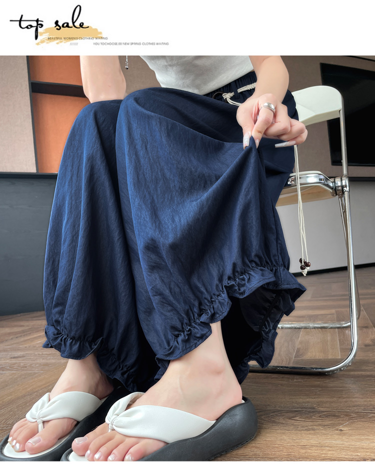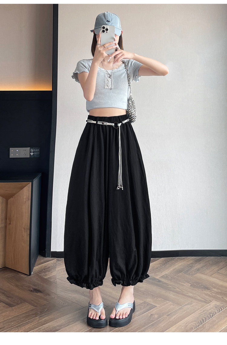 실사 여름 새로운 꽃밭 배기 바지 루즈핏 슬림해 보이는 하이웨이스트 다용도 캐주얼 얼음 실크 풍선 바지