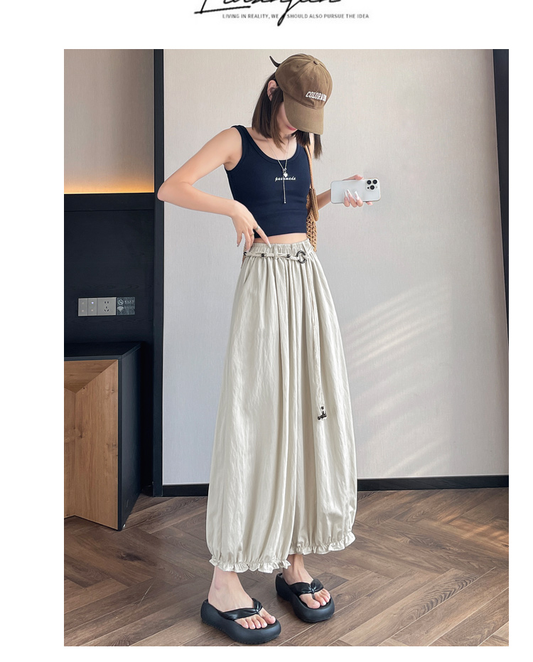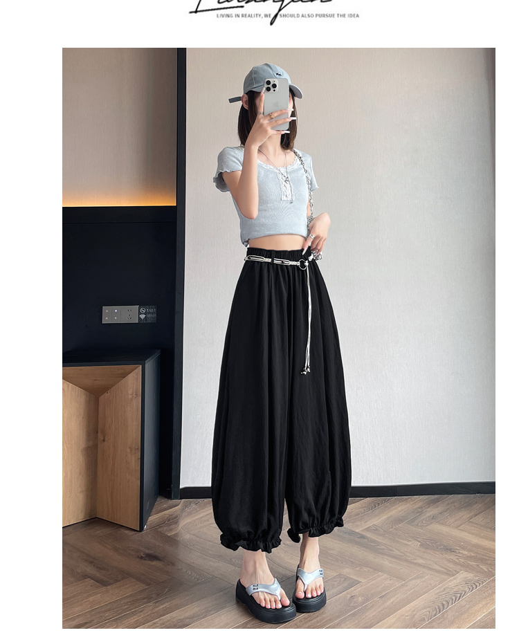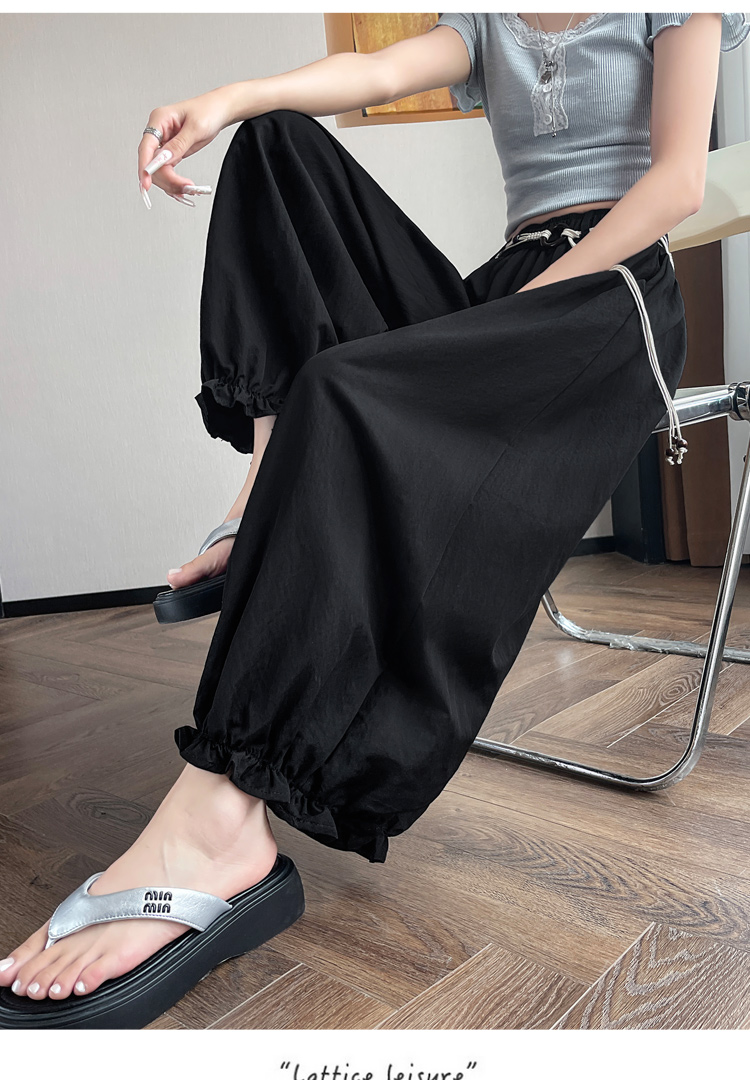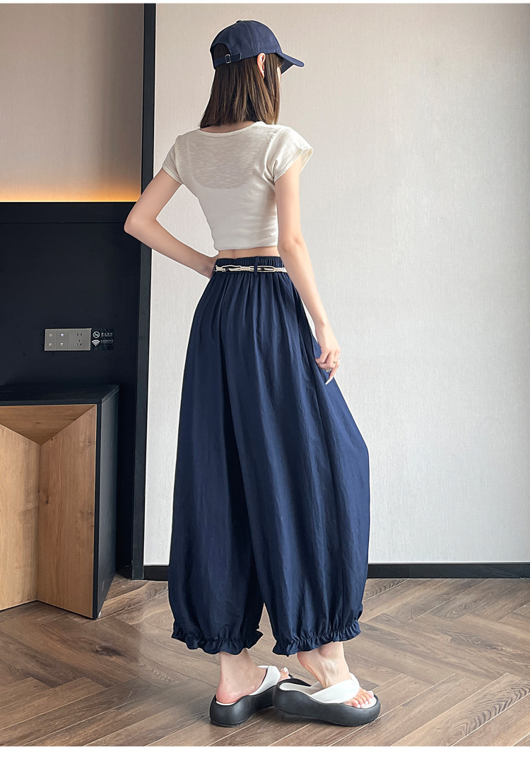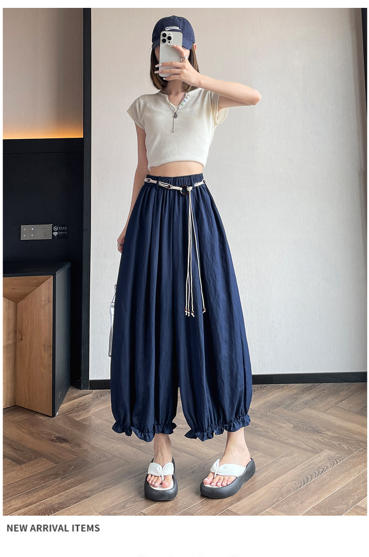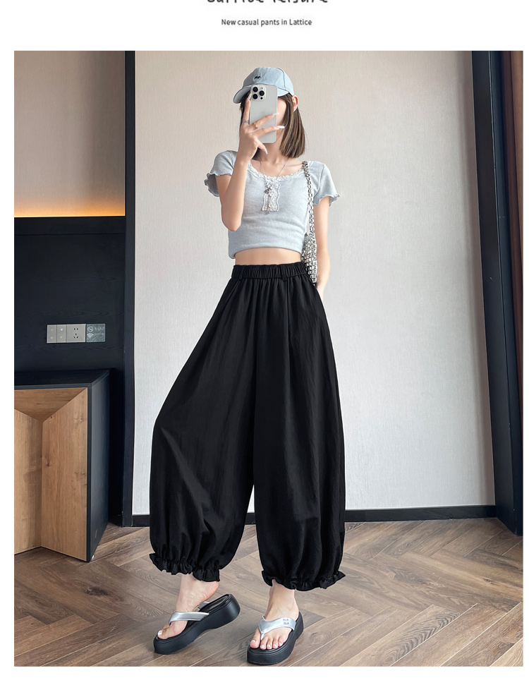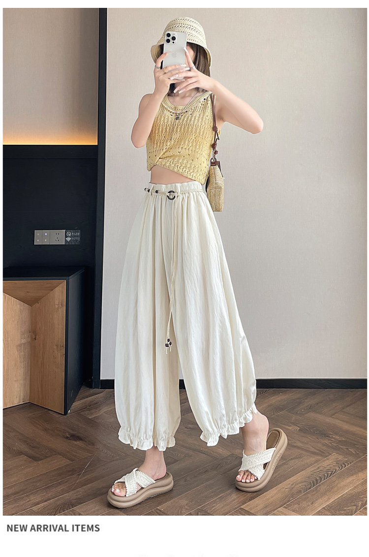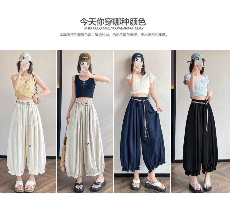 실사 여름 새로운 꽃밭 배기 바지 루즈핏 슬림해 보이는 하이웨이스트 다용도 캐주얼 얼음 실크 풍선 바지