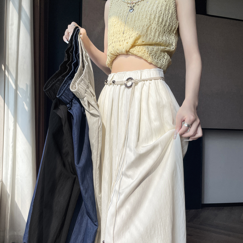실제 촬영 정가 높은 허리 슬림 플리츠 정장 롱 스커트 와일드 빅 스윙 스커트 하프 바디 A 라인 치마