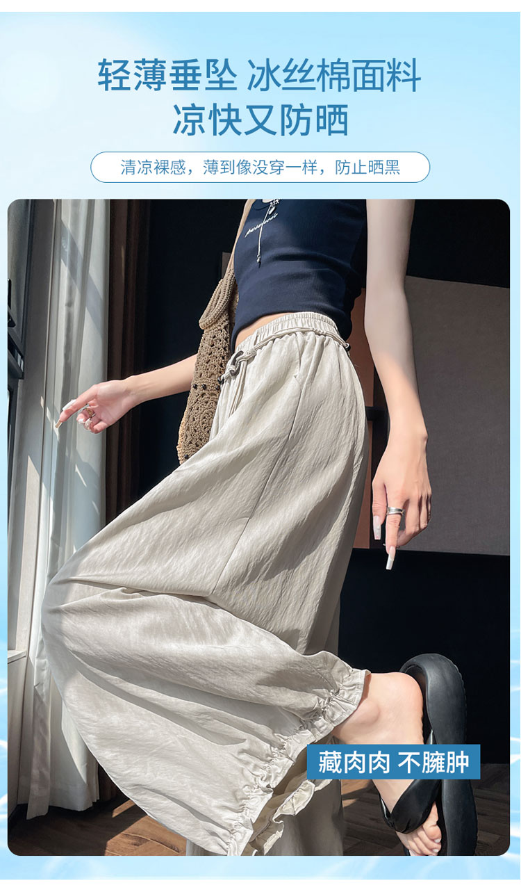 실사 재고 상품 속도 건조한 워크웨어 팬츠 여성 여름 얇은 스타일 하이웨이스트 조거 넓은 다리 둘 착용 얼음 실크 캐주얼 운동 바지