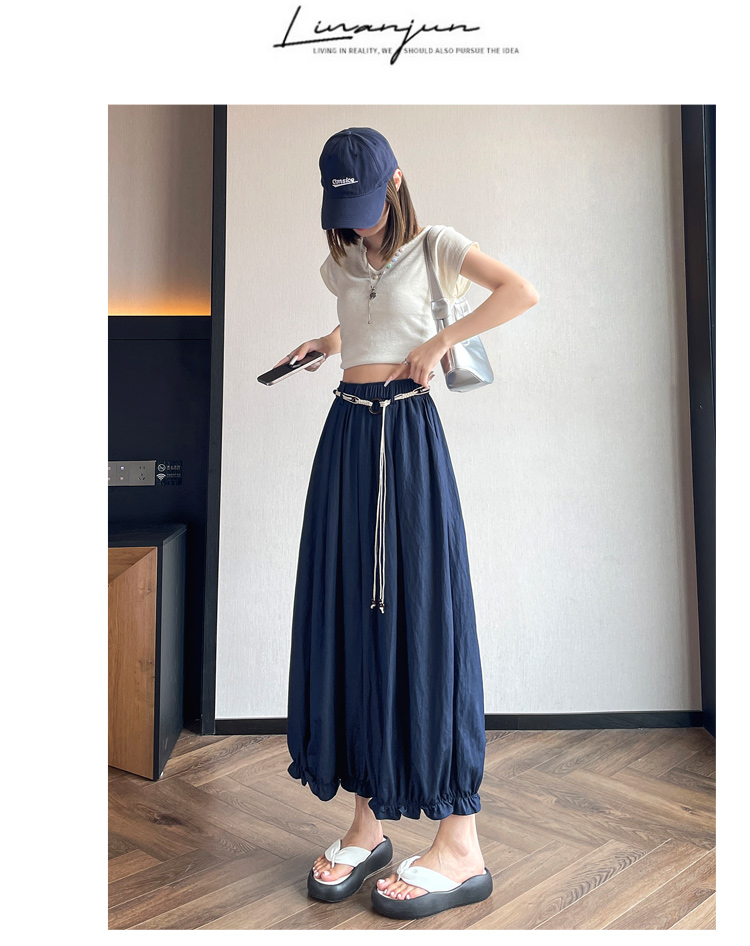 실사 2026 하이웨이스트 워크웨어 주머니 반신 스커트 하프 허리밴드 도루 센스 중간 스커트 슬림해 보이는 한 마디 빅 플레어 스커트 여름