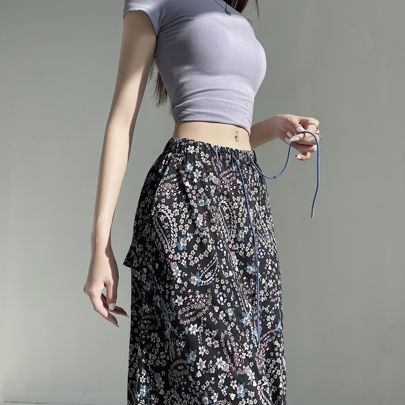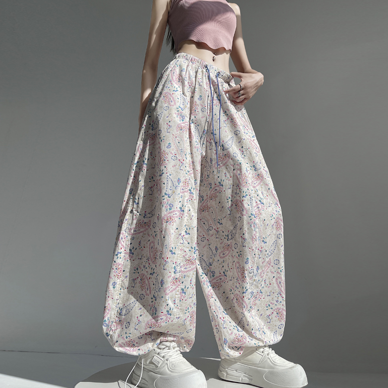실사 여름 새로운 꽃밭 배기 바지 루즈핏 슬림해 보이는 하이웨이스트 다용도 캐주얼 얼음 실크 풍선 바지