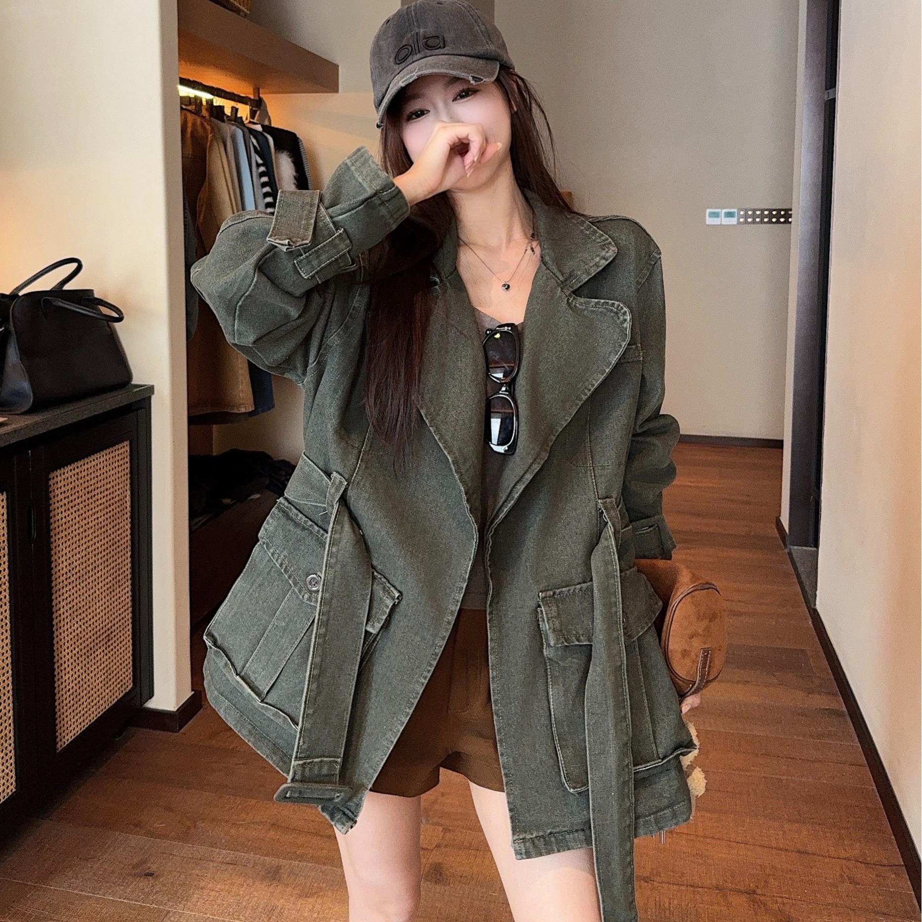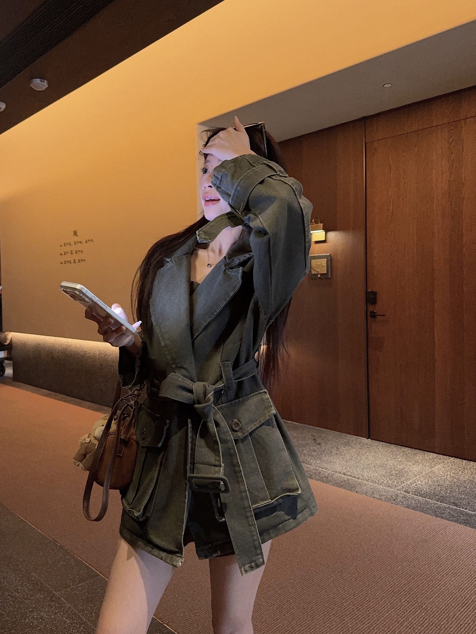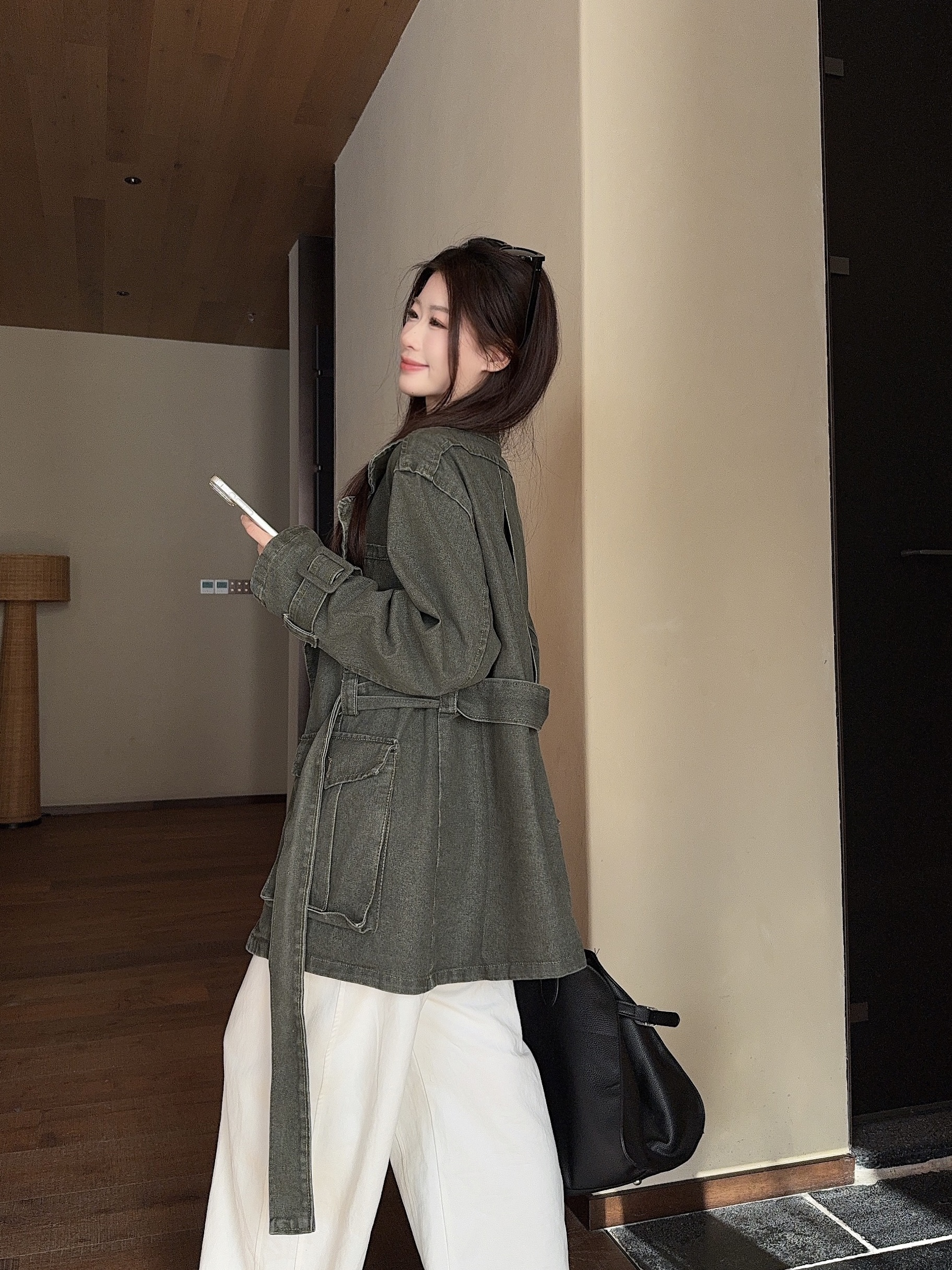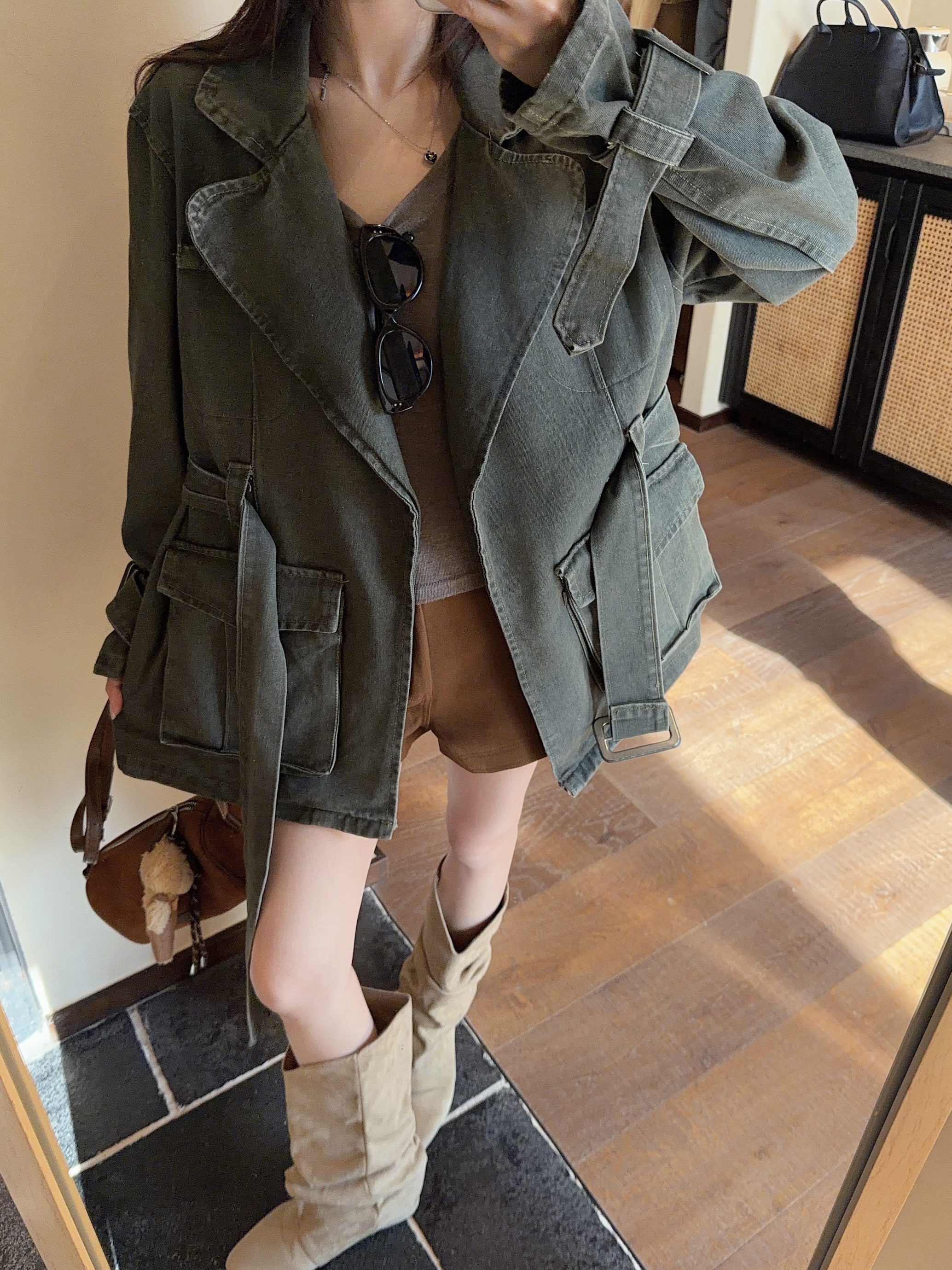 실사 정가 레트로 마 오래된 워크웨어 바람 레이스업 프로필 모양 재킷 26 봄 새로운 디자인 센스 허리 수축 재킷