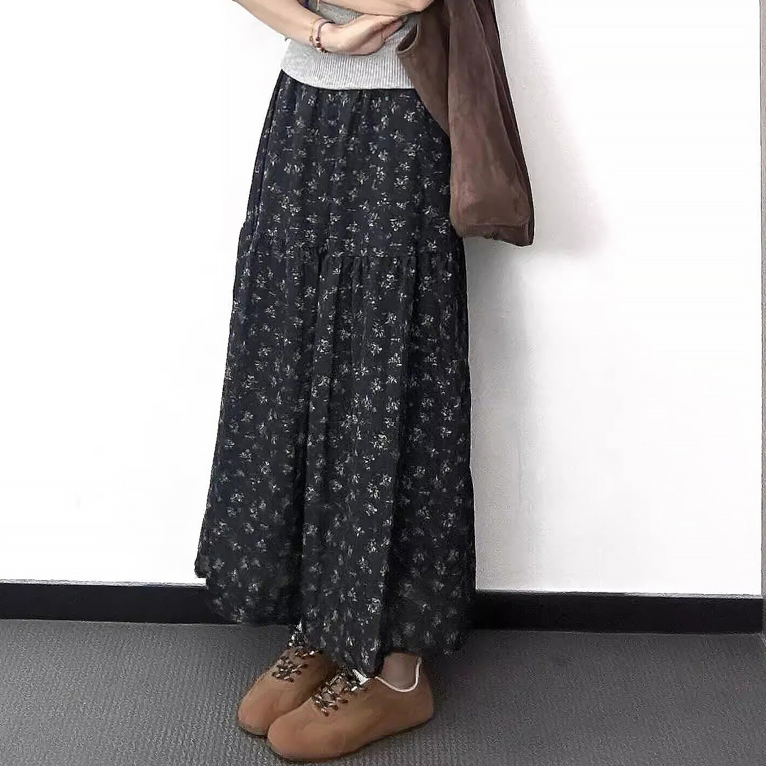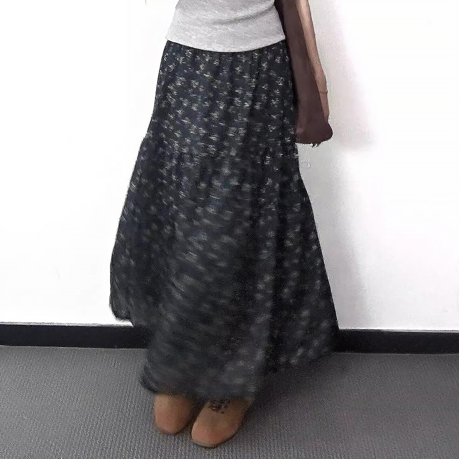 실사 겨울로 행사 센스 세련된 좋은 작은 단어 버전 헤링본 곡물 이전 트임 품격 미니멀리즘 모직 자료 롱 스커트