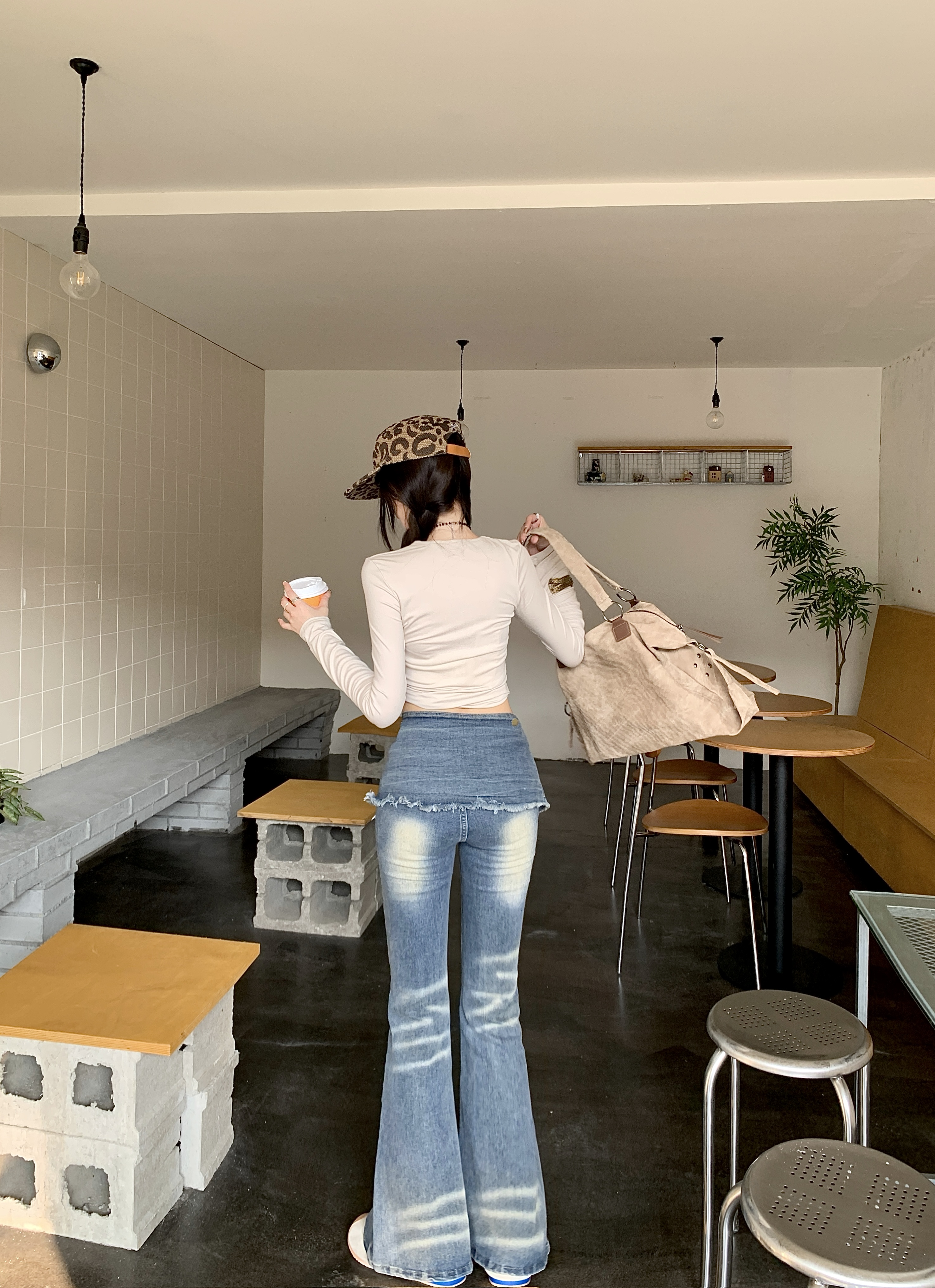 실사 정가 봄 가을 레이스 스트랩 신축성 청바지 여성 작은 대중 패션 핫걸 슬림해 보이는 나팔 바지 긴 바지