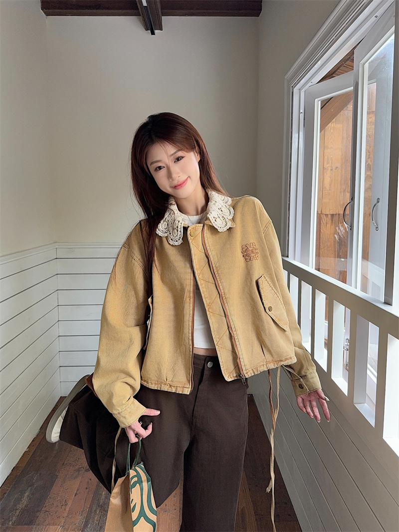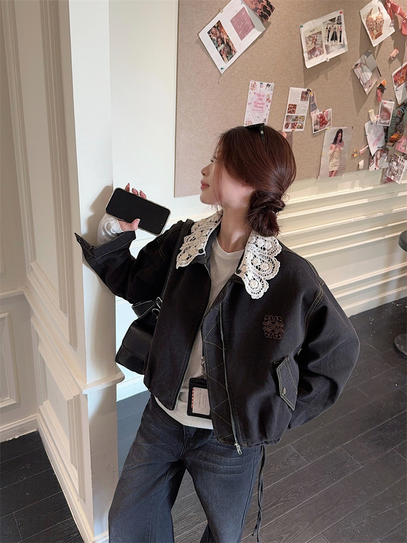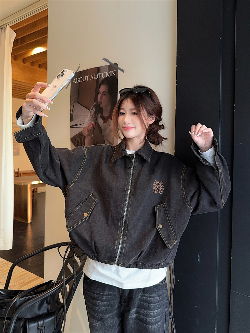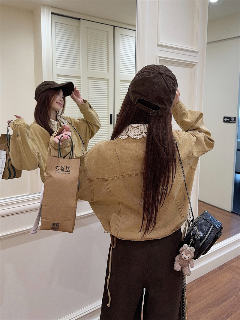 실사 정가 가을 아메리칸 레트로 쇼트 스타일 패치워크 데님 재킷 새로운 가을 작은 키 재킷 맨위 트렌디
