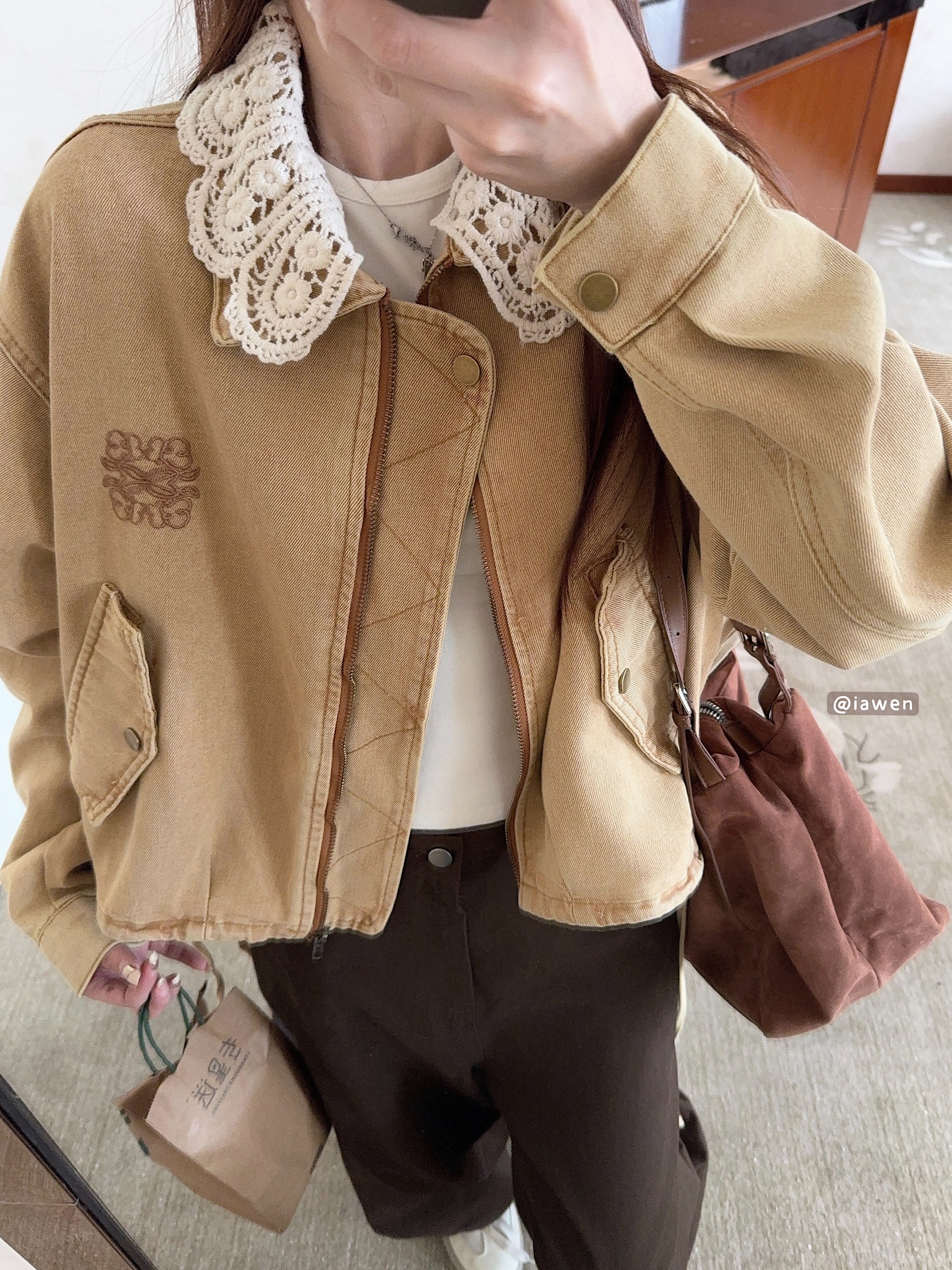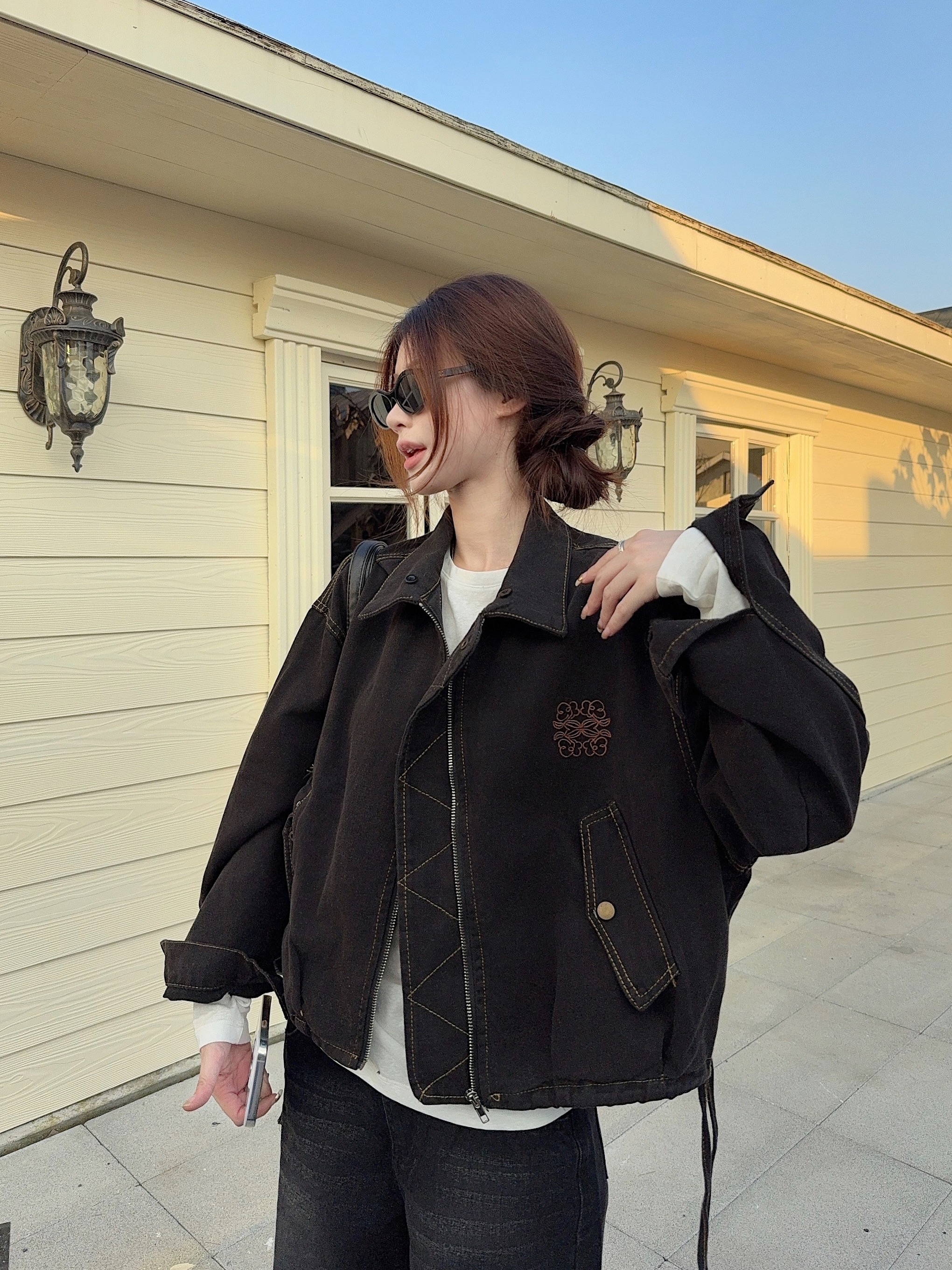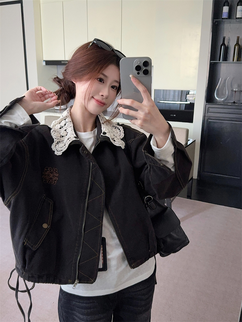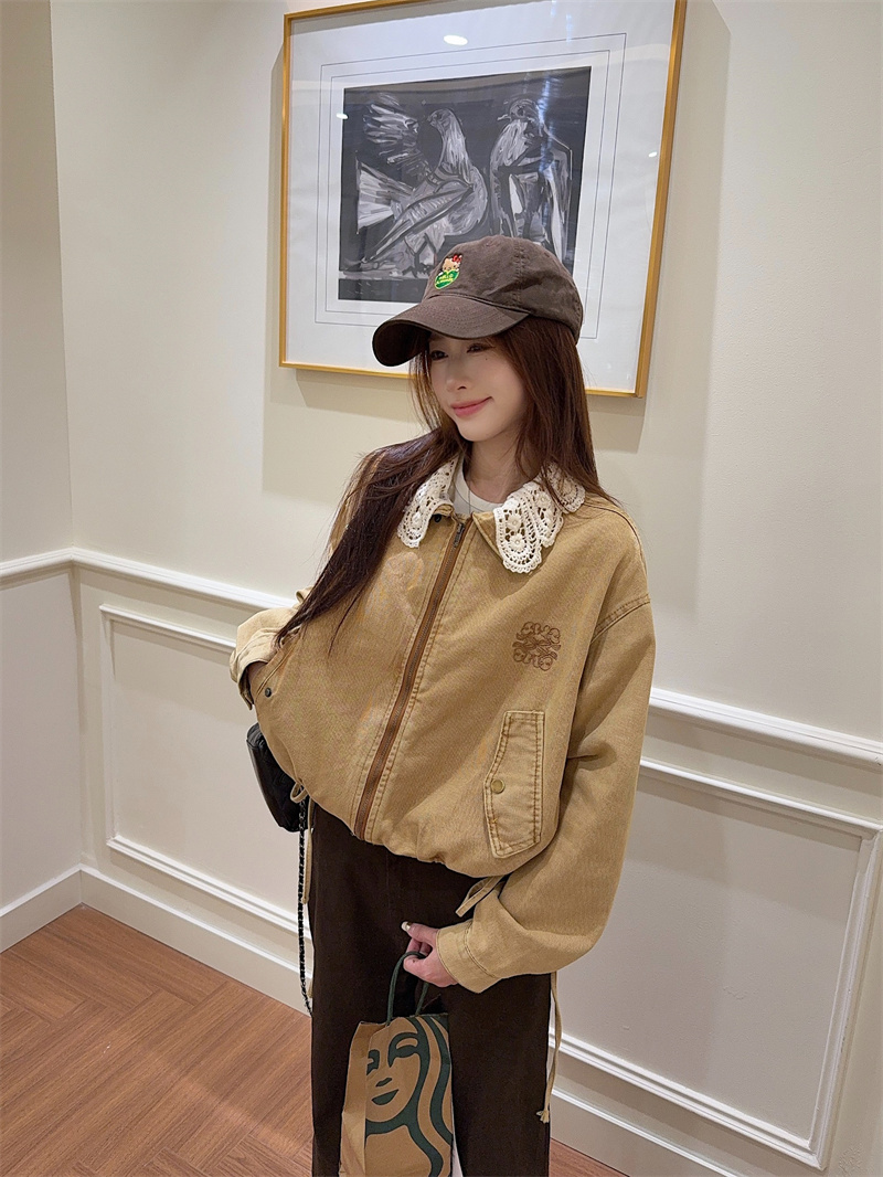 실사 정가 가을 아메리칸 레트로 쇼트 스타일 패치워크 데님 재킷 새로운 가을 작은 키 재킷 맨위 트렌디