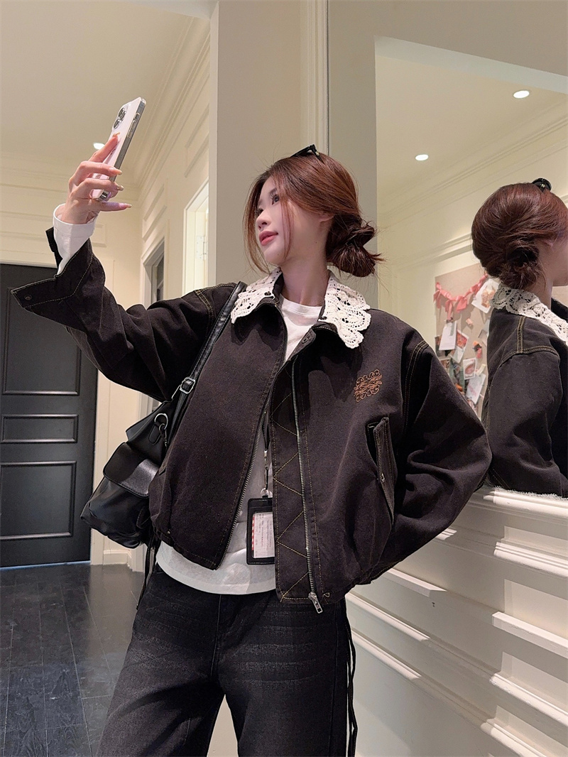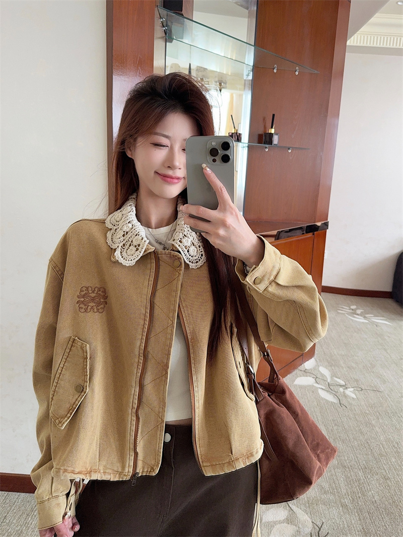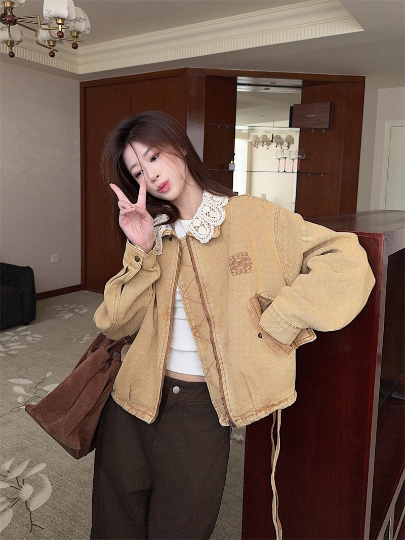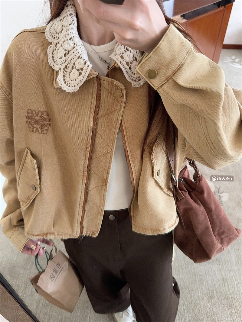 실사 정가 꽃밭 밑단 수 있습니다. 언 로딩 니트 칼라 데님 재킷 낭만주의 레이스 천 금빛 바람 25 가을