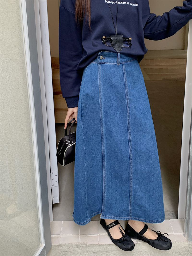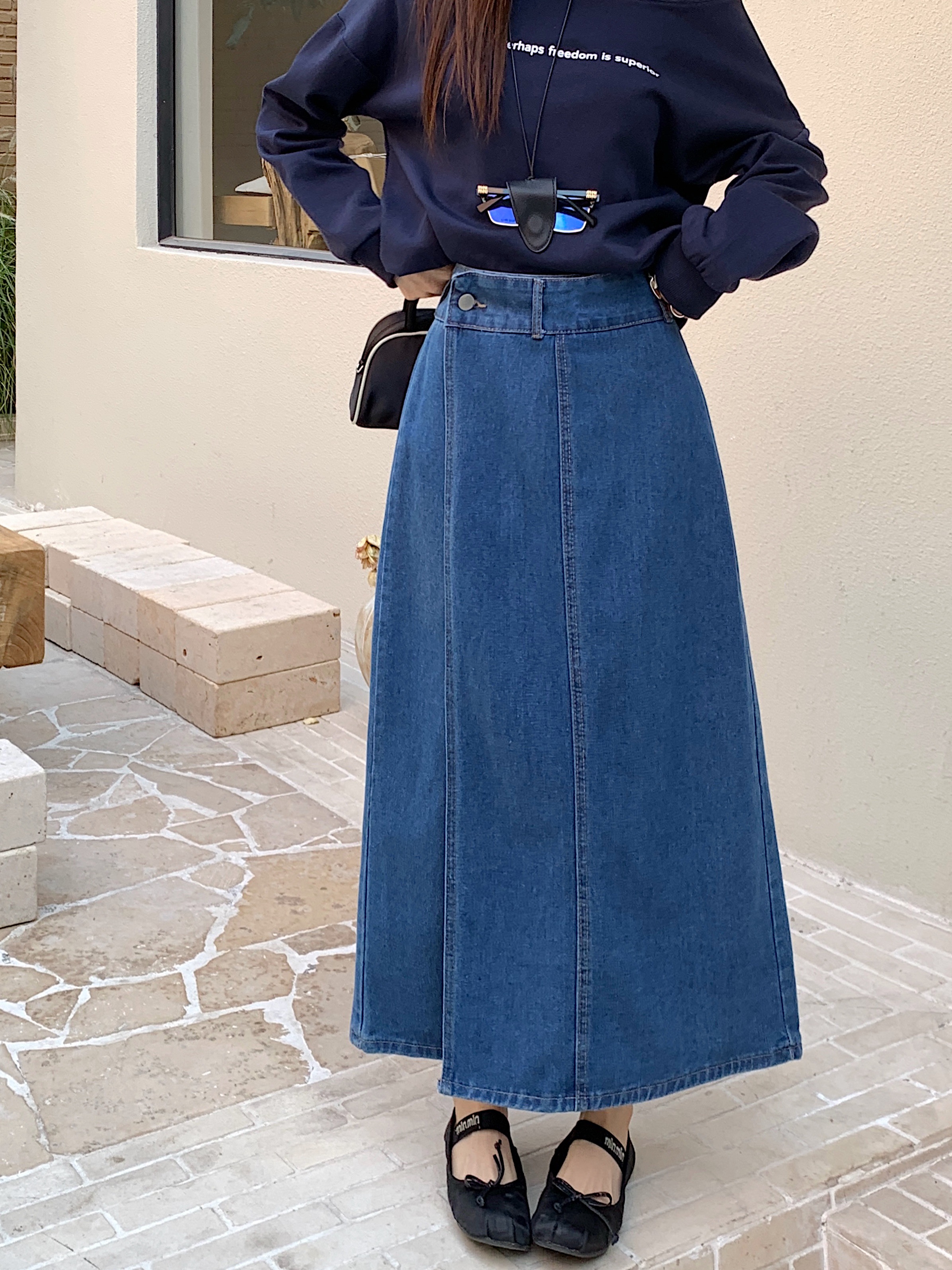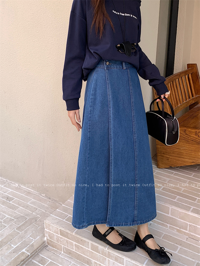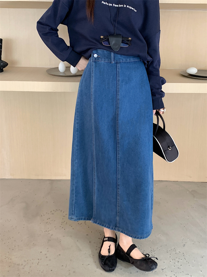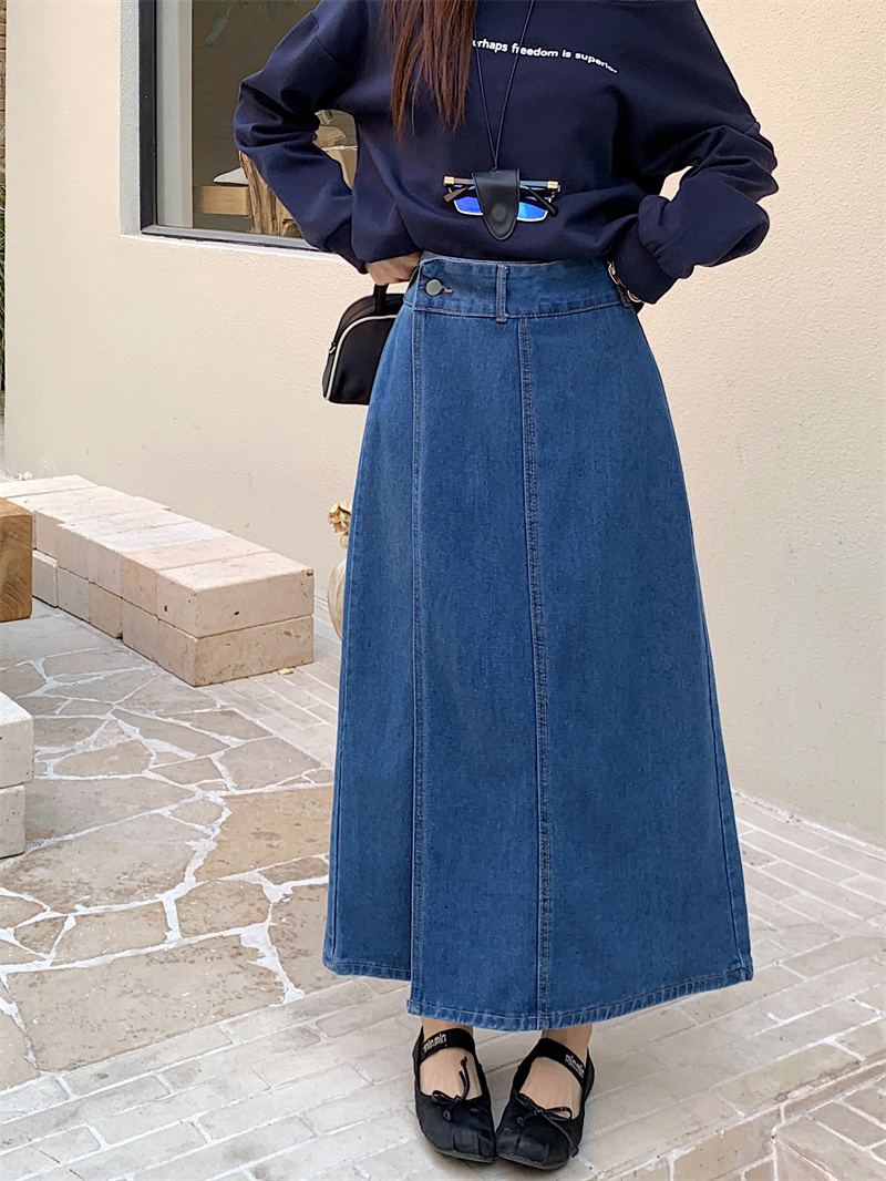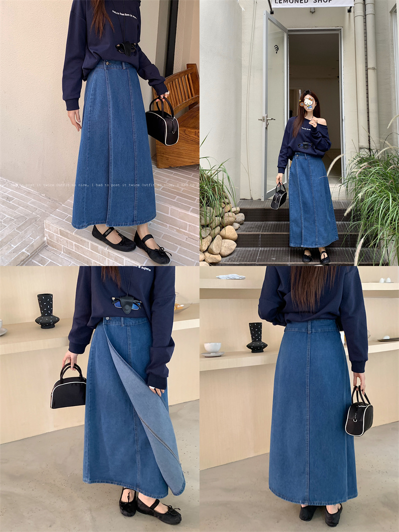 실사 정가 레트로 데님 드레스 롱 코트 홍콩 느낌 POLO 칼라 허리 수축 슬림해 보이는 봄 가을 품격 길다 치마