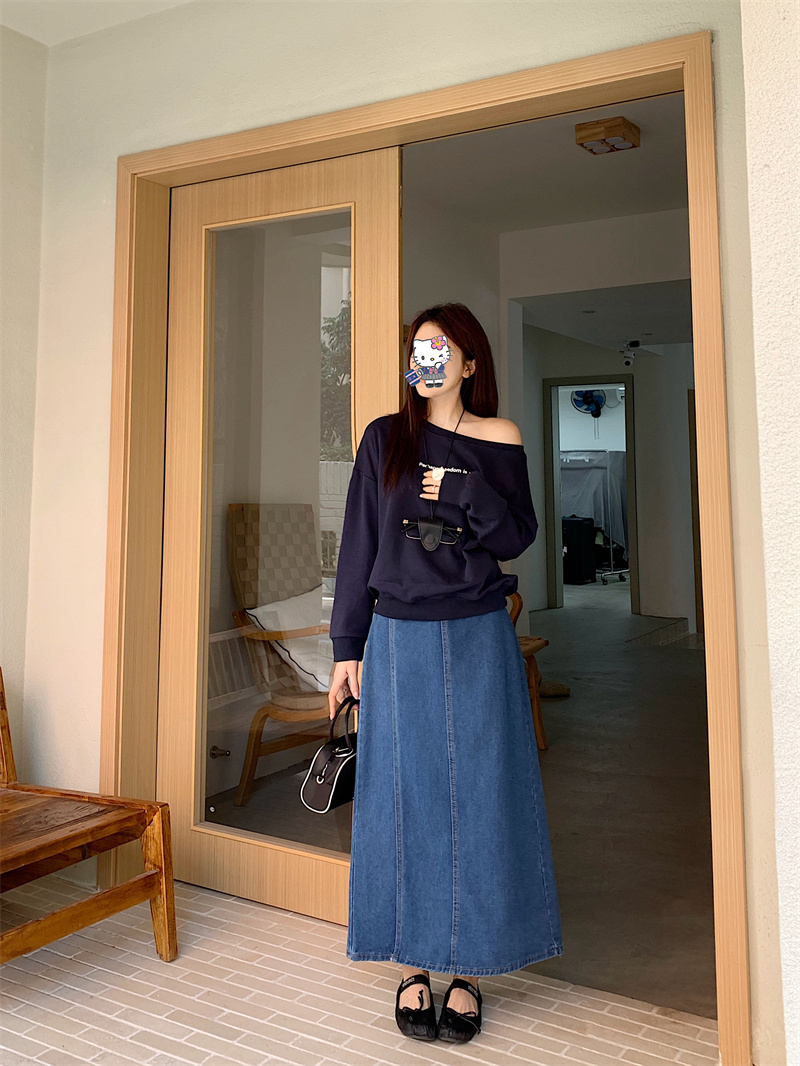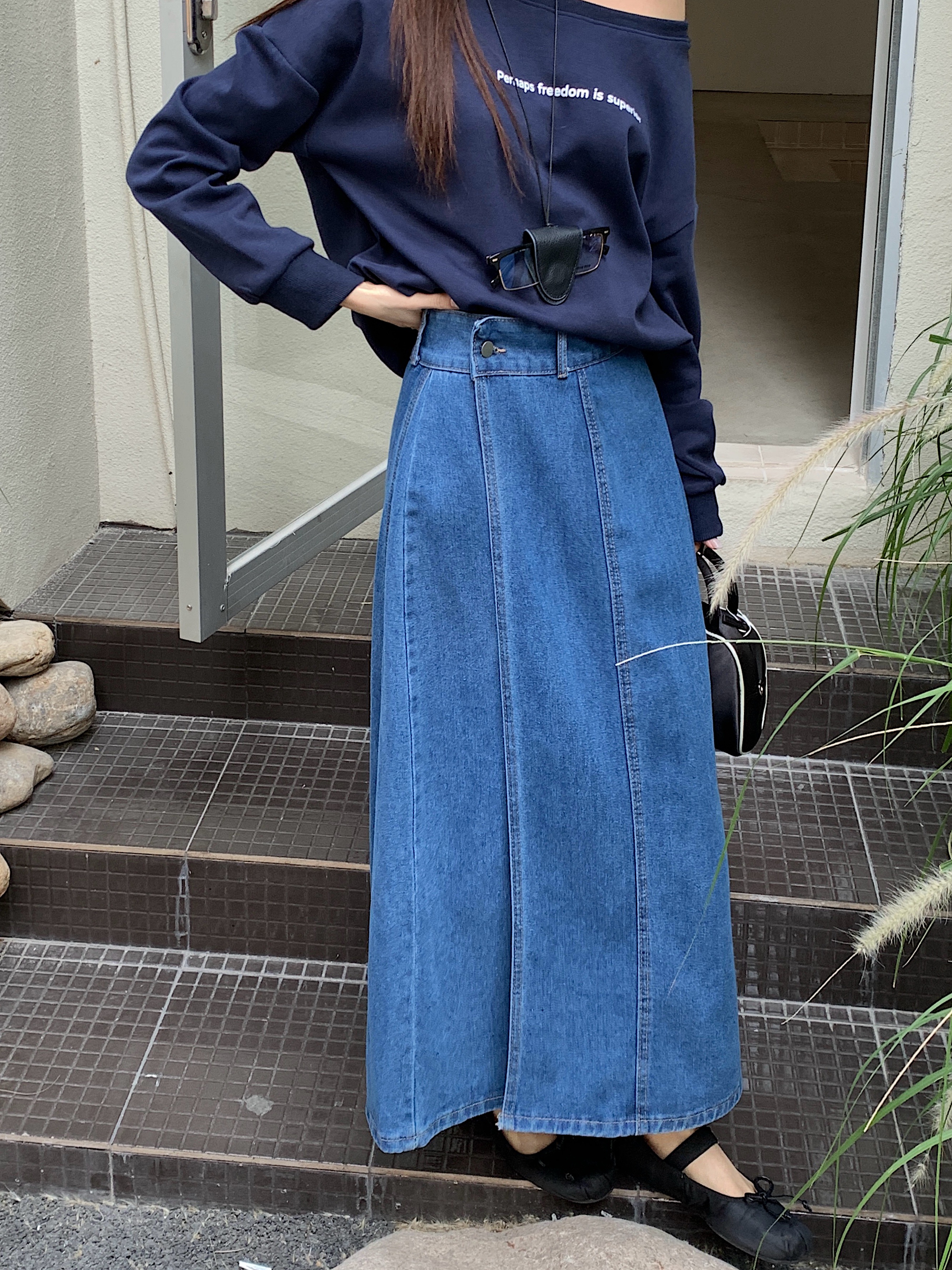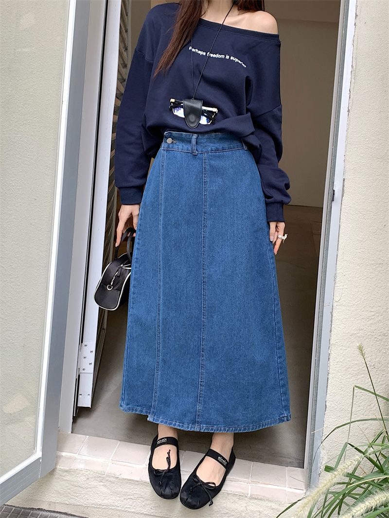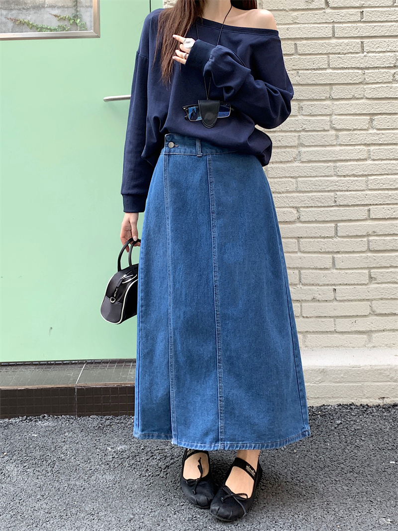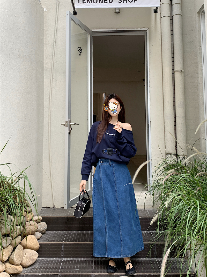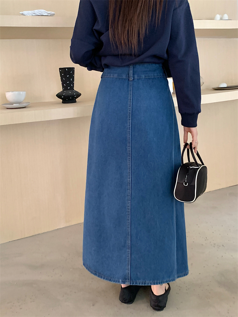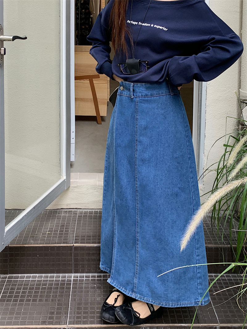 실사 정가 레트로 데님 드레스 롱 코트 홍콩 느낌 POLO 칼라 허리 수축 슬림해 보이는 봄 가을 품격 길다 치마