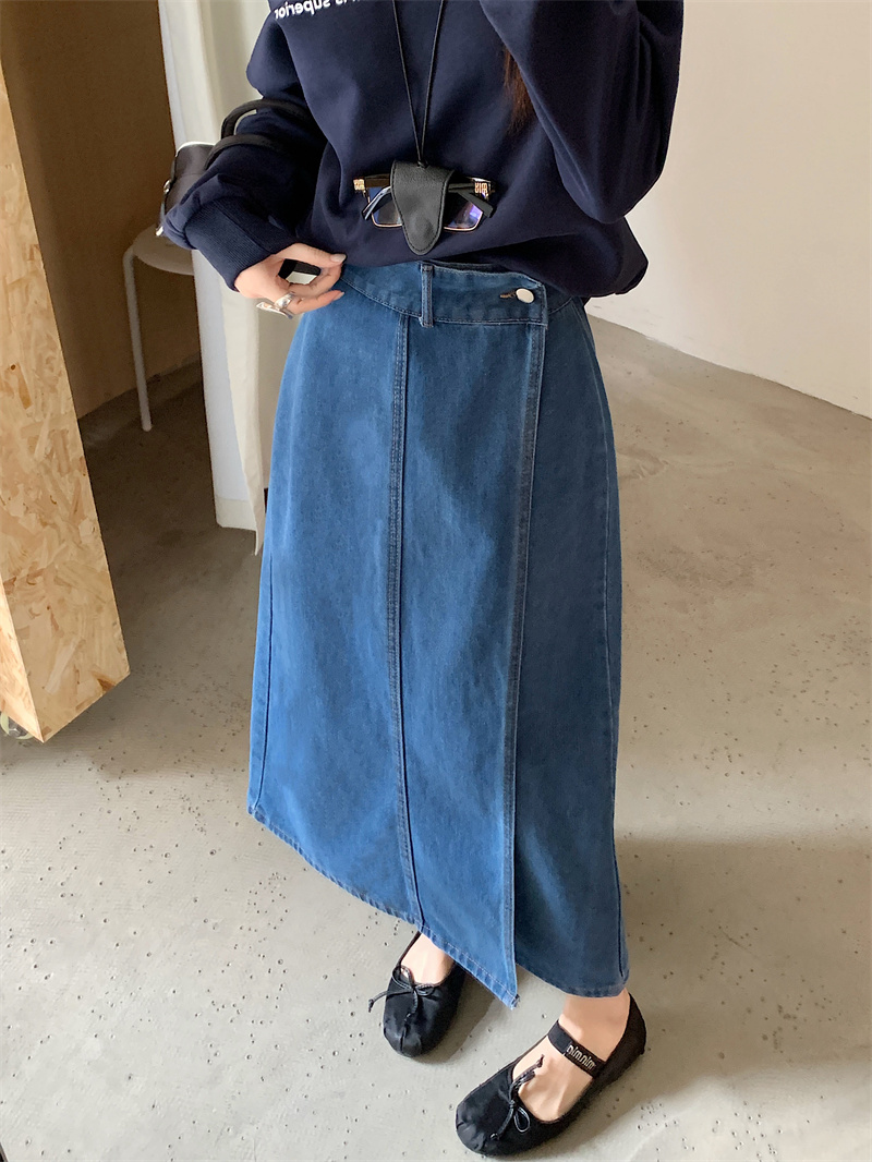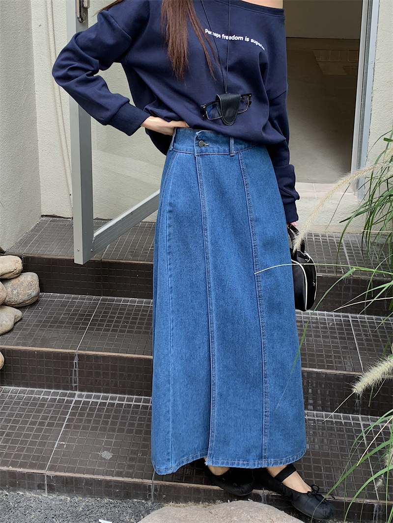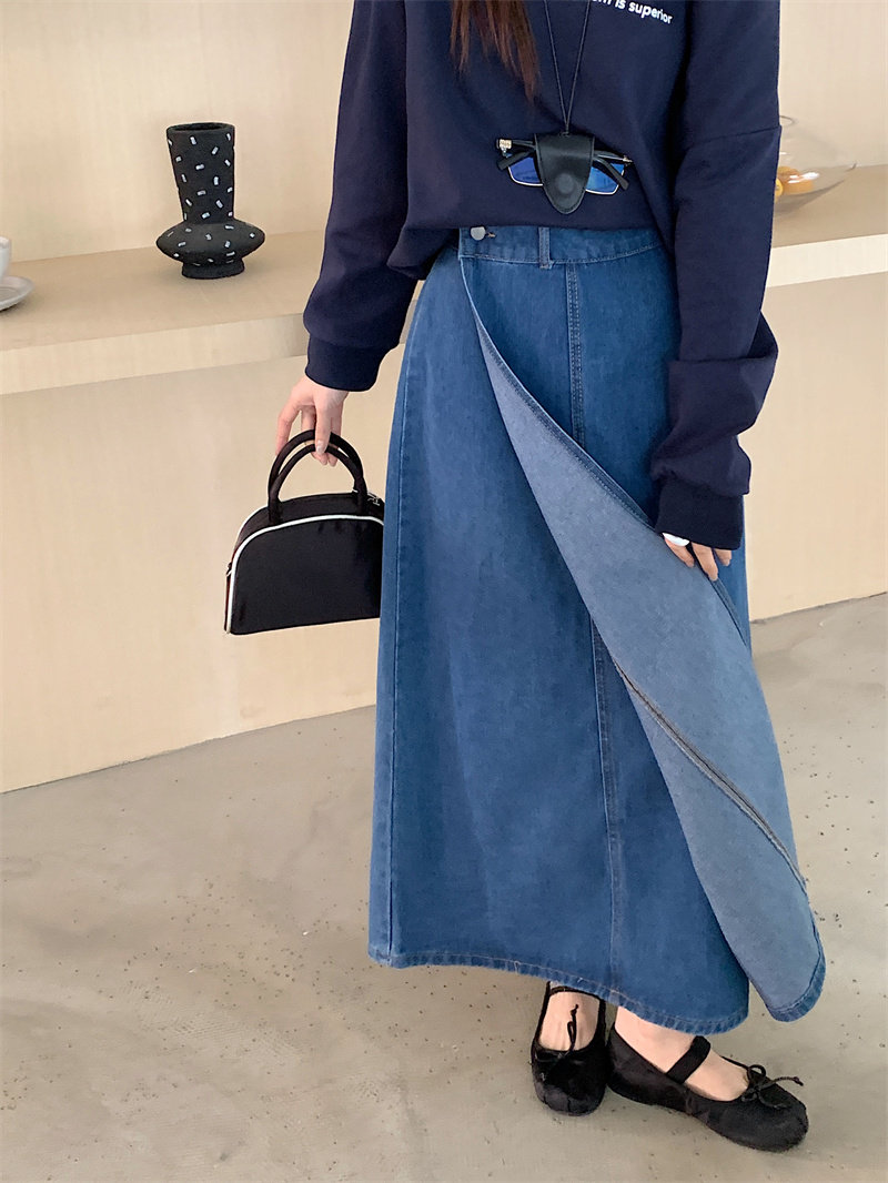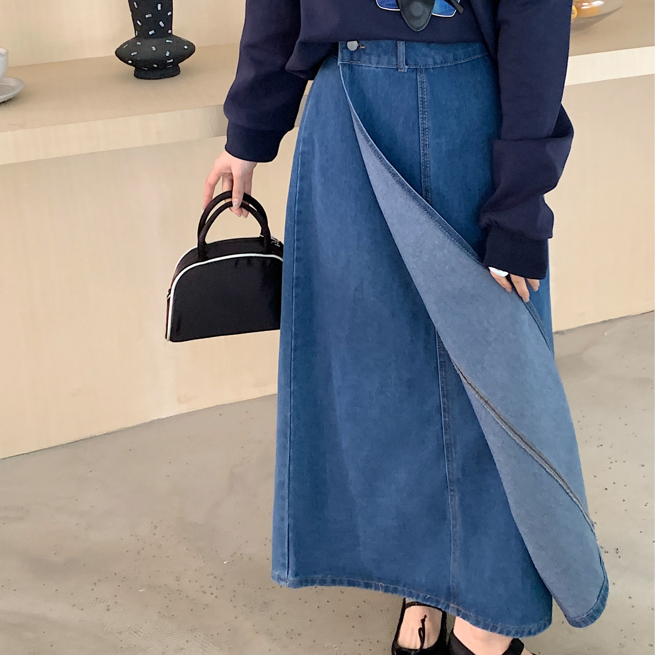실사 정가 아메리칸 페이크 레이어드 마이크로 나팔 데님 스커트 바지 봄 가을 하이웨이스트 몸매 가꾸기 슬림해 보이는 바닥 청소 긴 바지