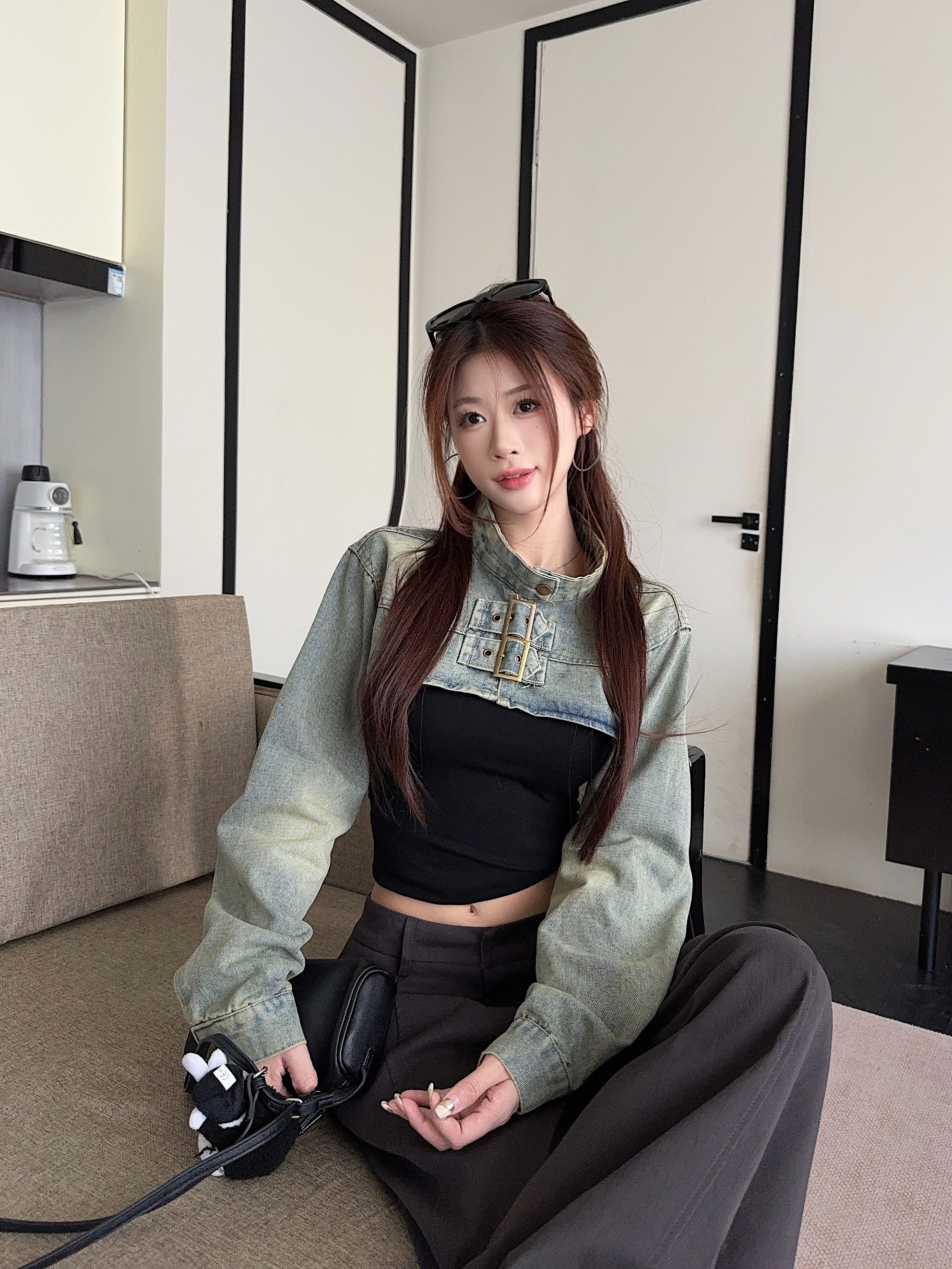 실사 정가 가을 아메리칸 레트로 쇼트 스타일 패치워크 데님 재킷 새로운 가을 작은 키 재킷 맨위 트렌디