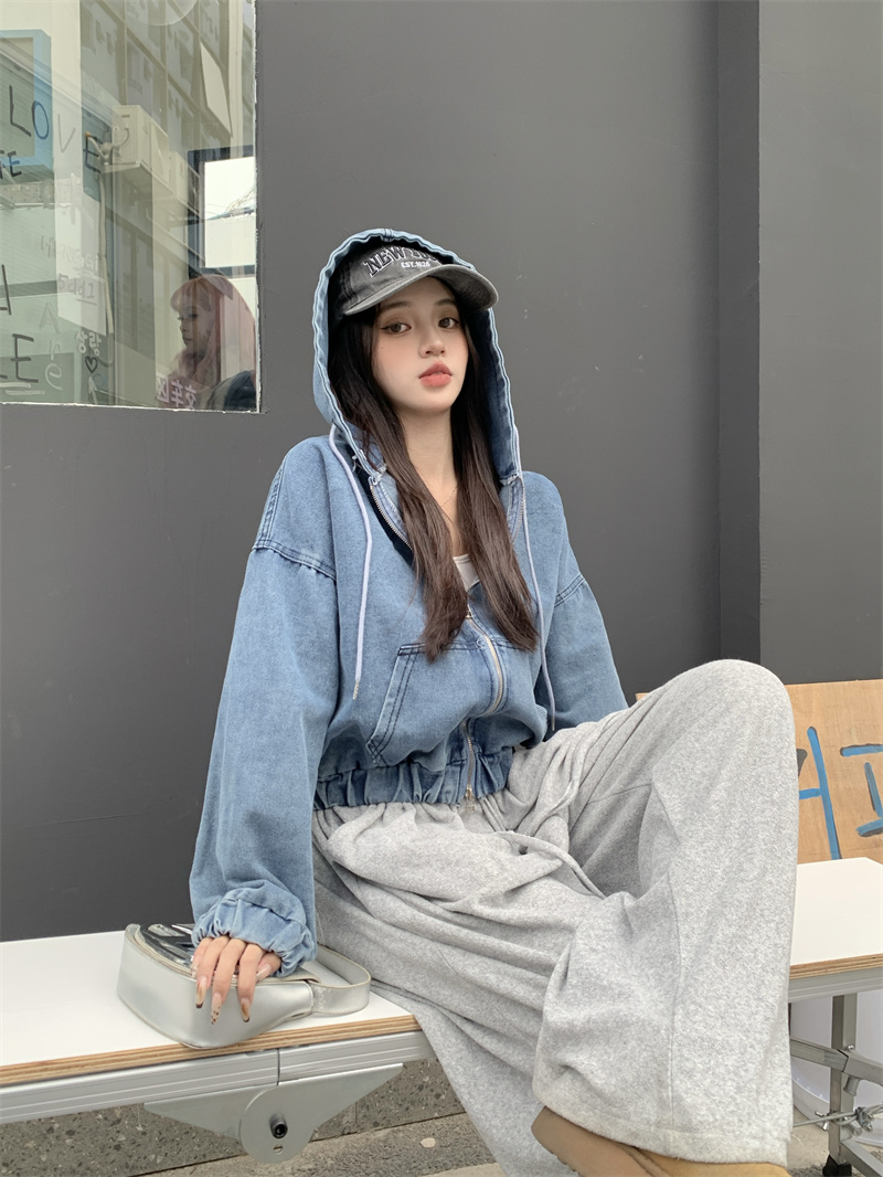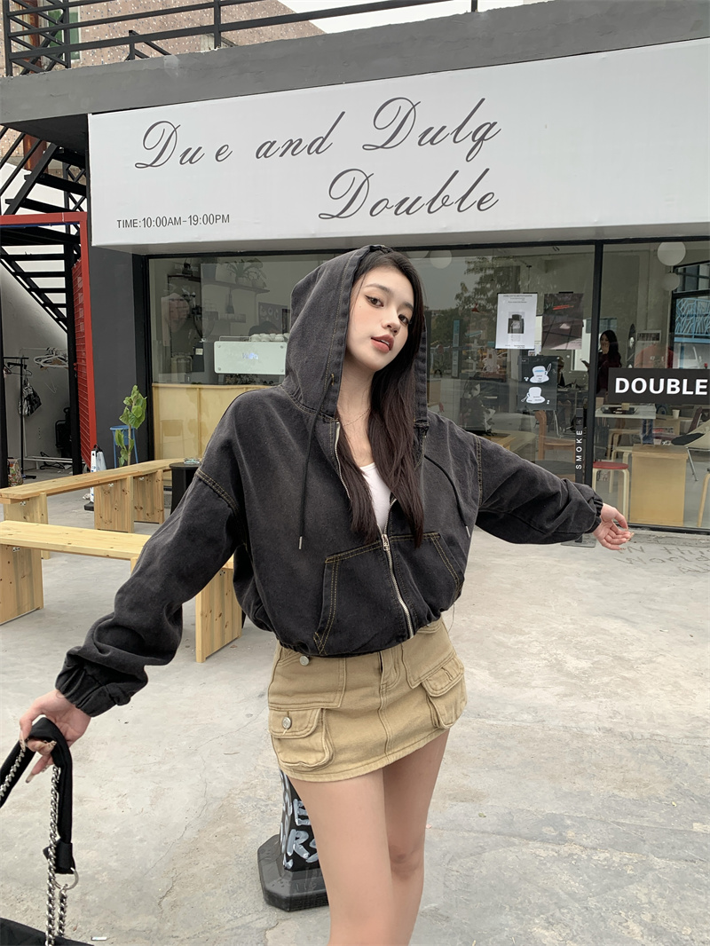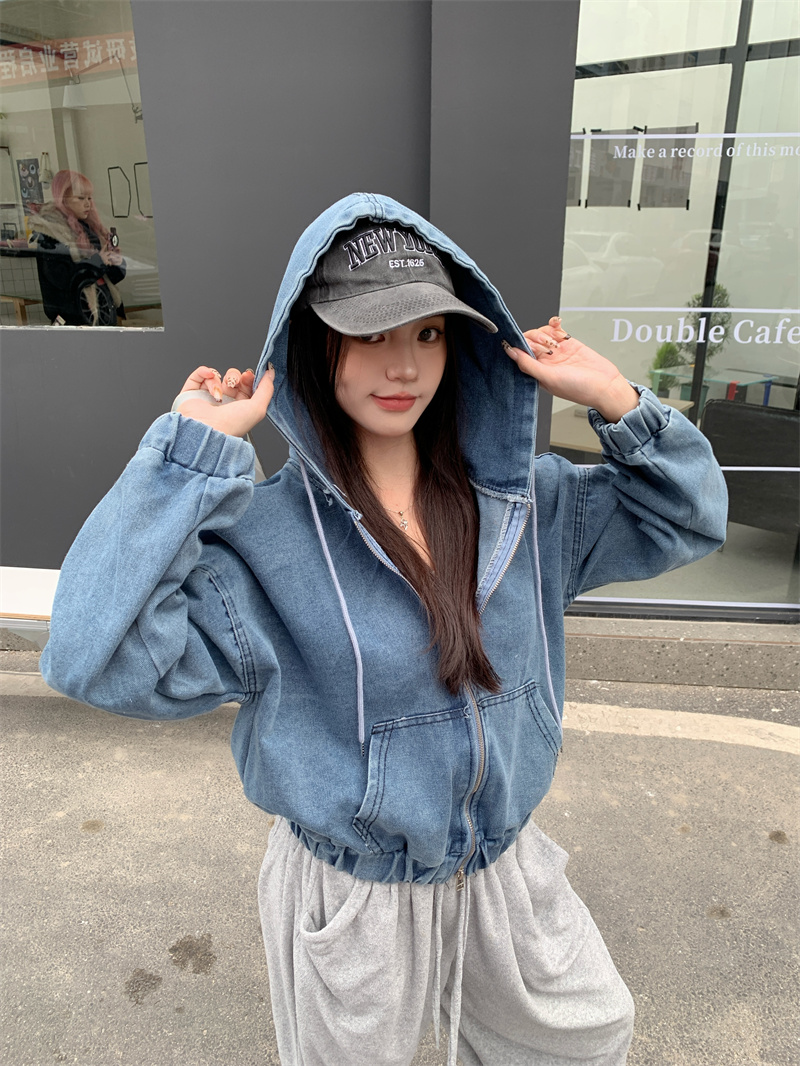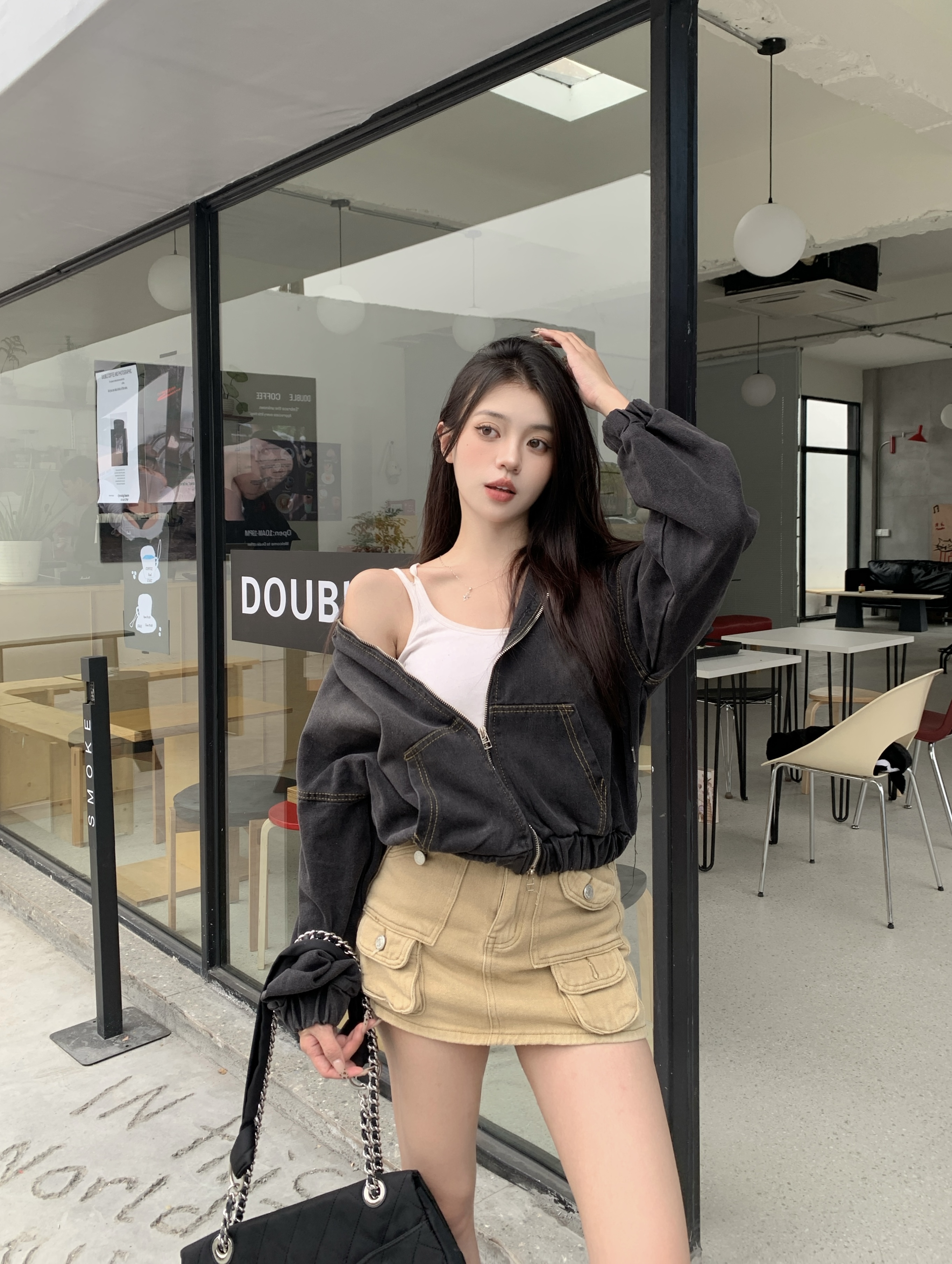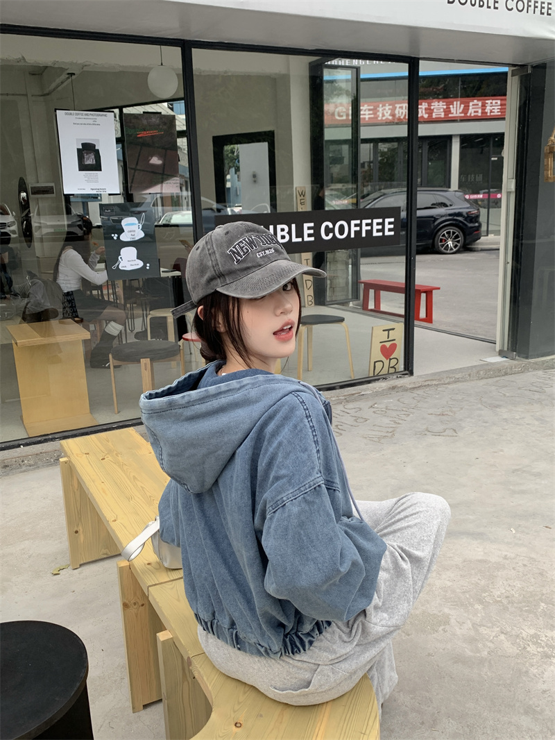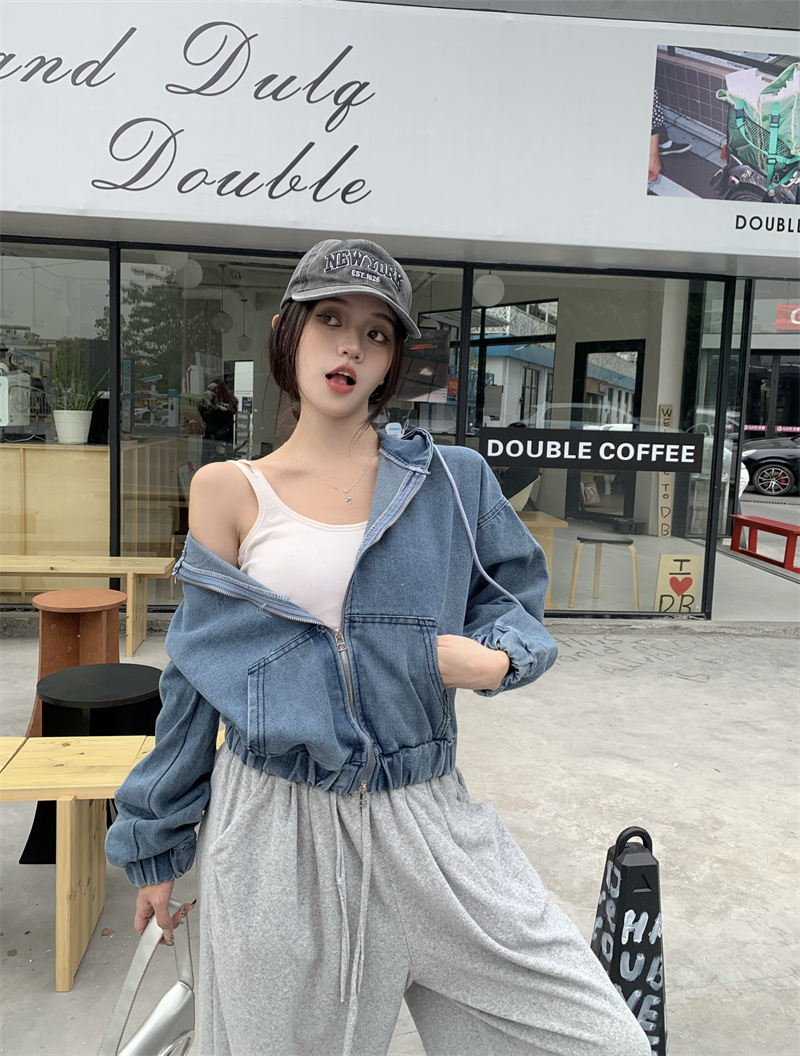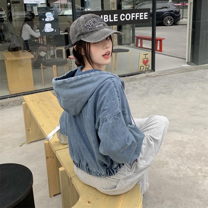 실사 정가 튀김 거리 핫걸 레트로 워시 물 마 오래된 작은 대중 다용도 트렌디 차가운 어깨 데님 쇼트 스타일 재킷