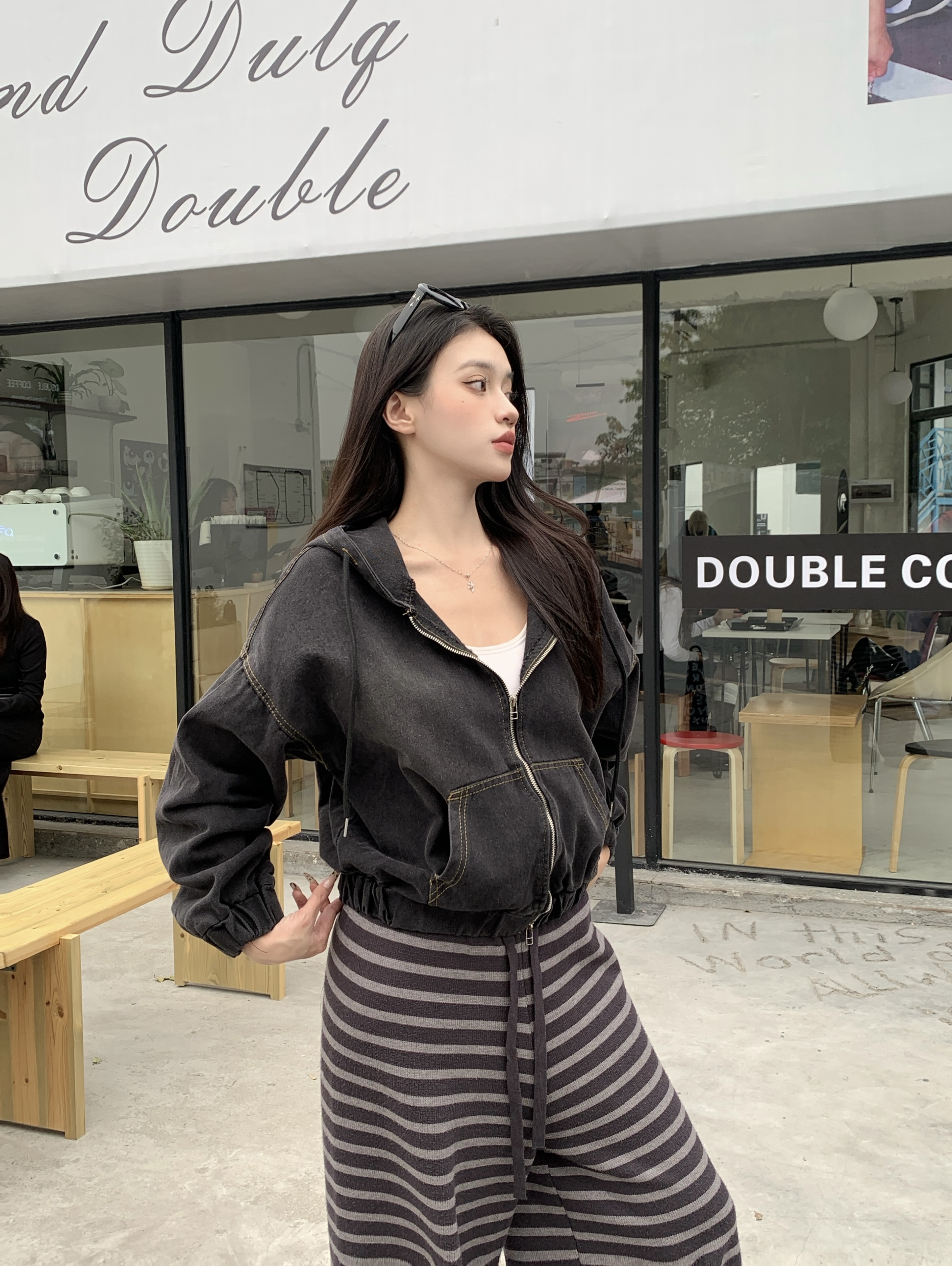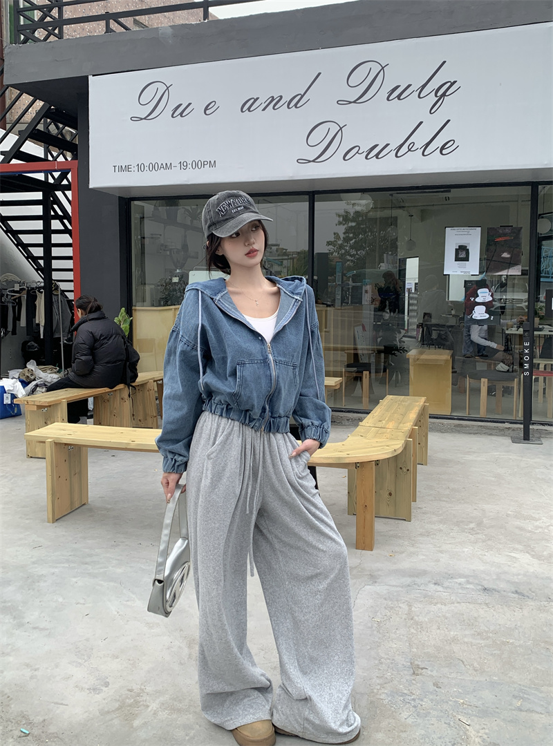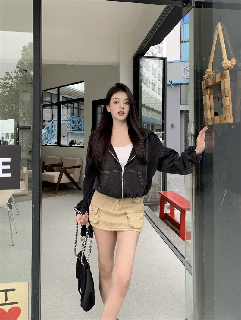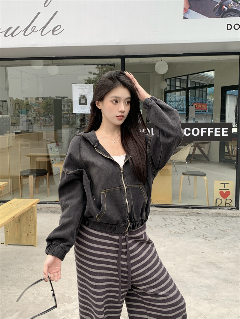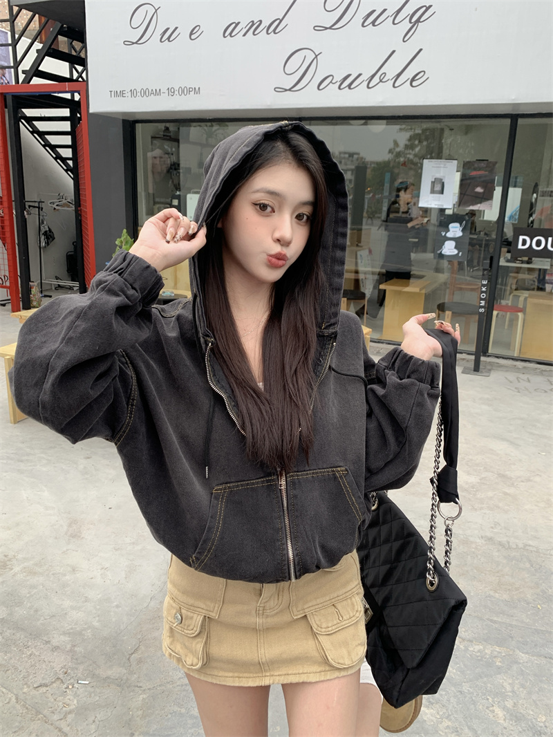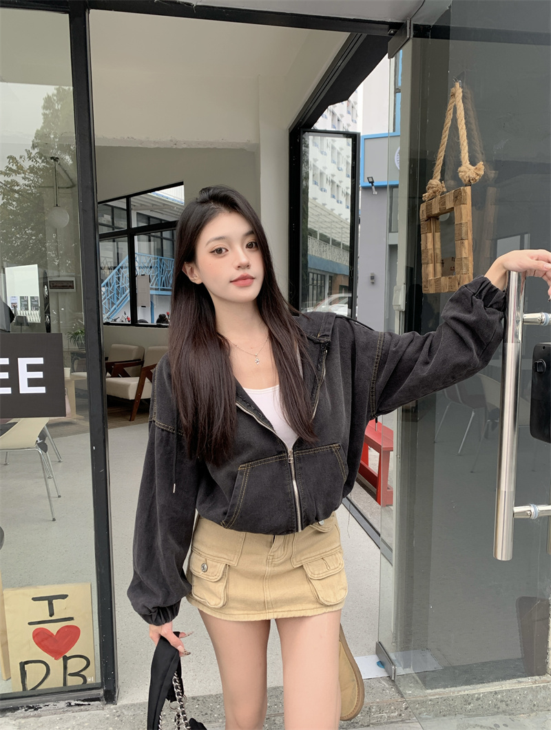 실사 정가 튀김 거리 핫걸 레트로 워시 물 마 오래된 작은 대중 다용도 트렌디 차가운 어깨 데님 쇼트 스타일 재킷