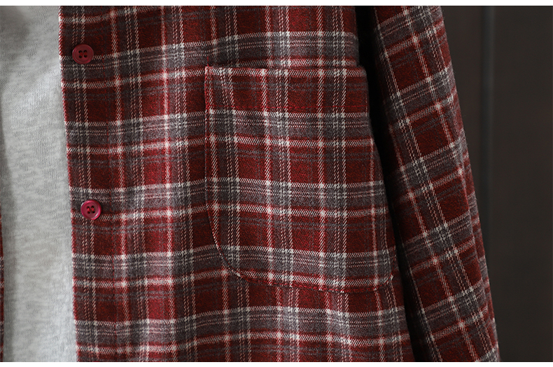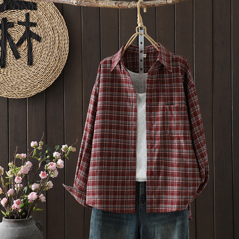 실사 앤 코라 빨간색 체크무늬 연삭 털 셔츠 봄과 가을 레트로 다용도 루즈핏 스택 착용 긴팔 맨위 여성