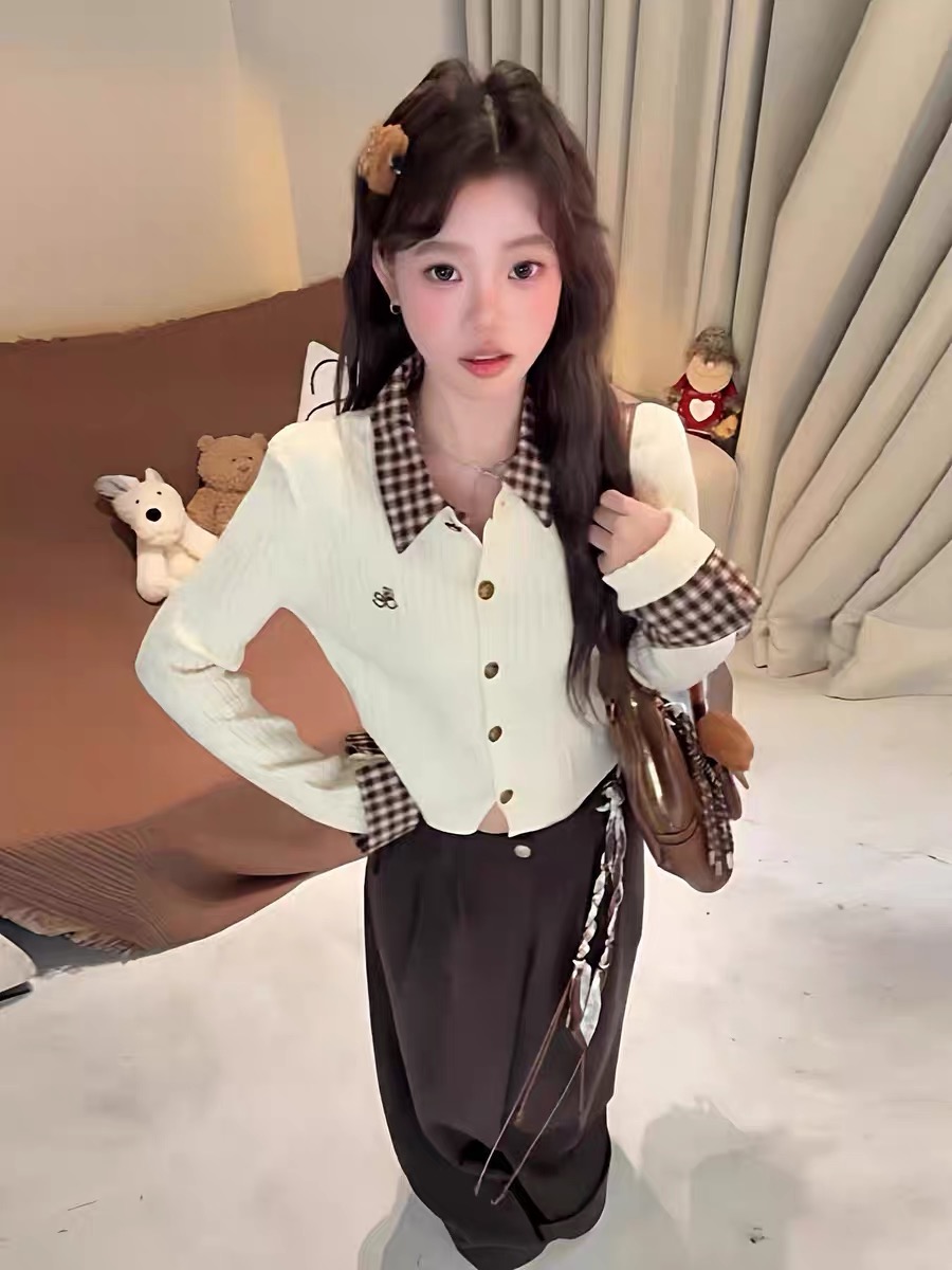 한 비 지아 hallstatt 비싼 가스 오래된 돈 바람 베이지 색 트위스트 꽃 니트 기본 셔츠 스트레이트 긴 바지 세트