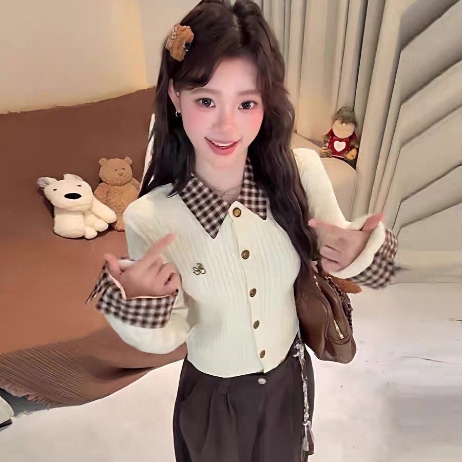송 긍정적 인 En 화이트 프릴 라운드 넥 인사이드 가져 가라. 만나는 니트 스웨터 여성 겨울 몸매 가꾸기 자이언트 잘 생긴 스웨터 작은 맨위