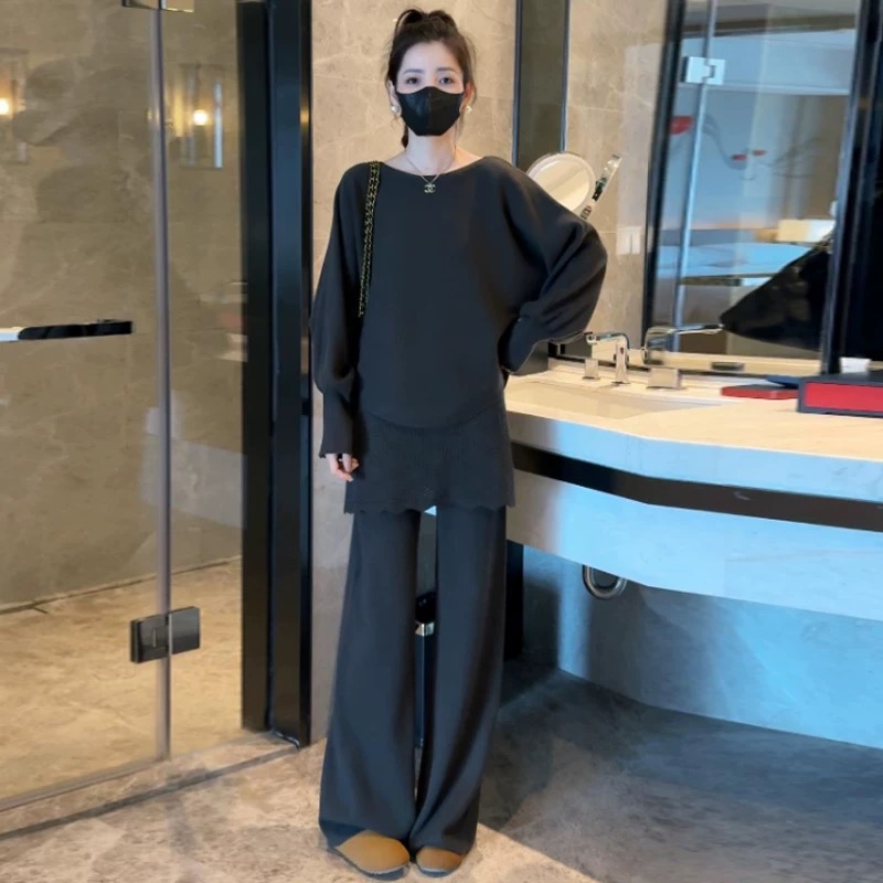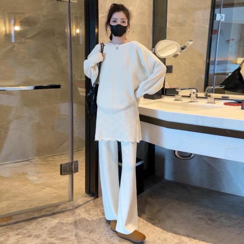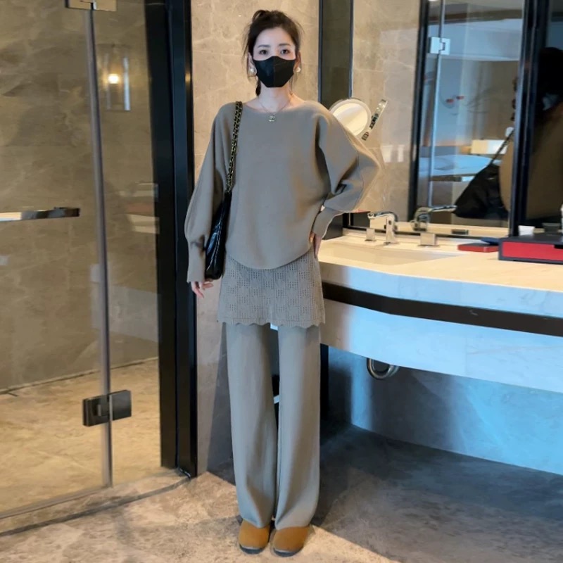 한 비 지아 hallstatt 비싼 가스 오래된 돈 바람 베이지 색 트위스트 꽃 니트 기본 셔츠 스트레이트 긴 바지 세트