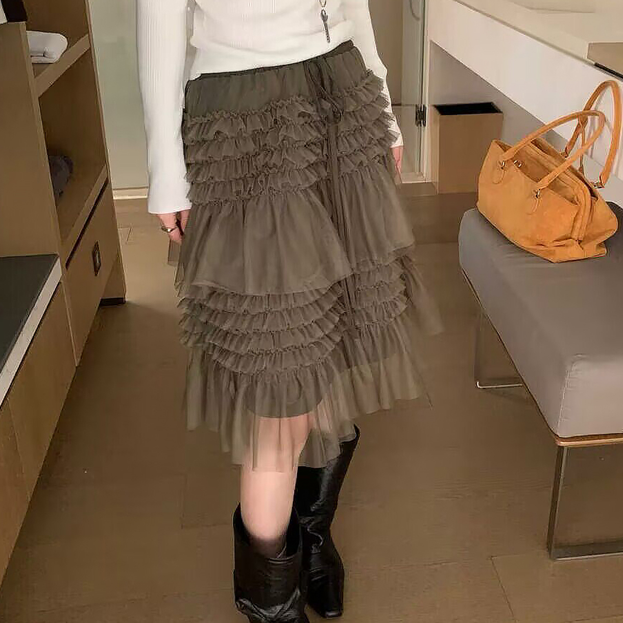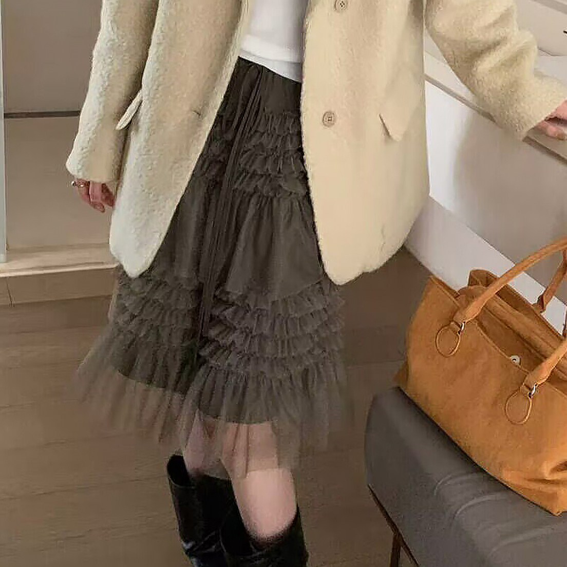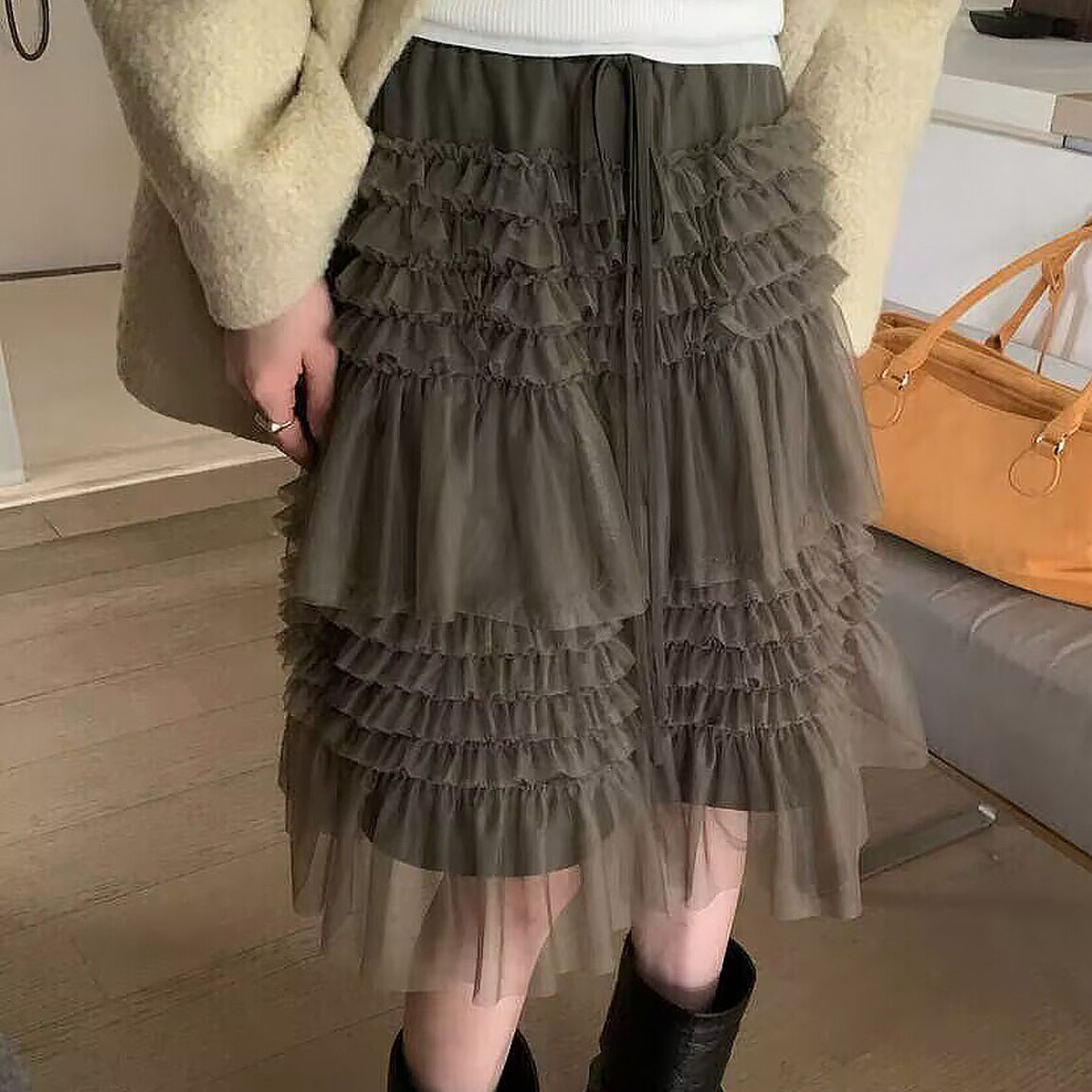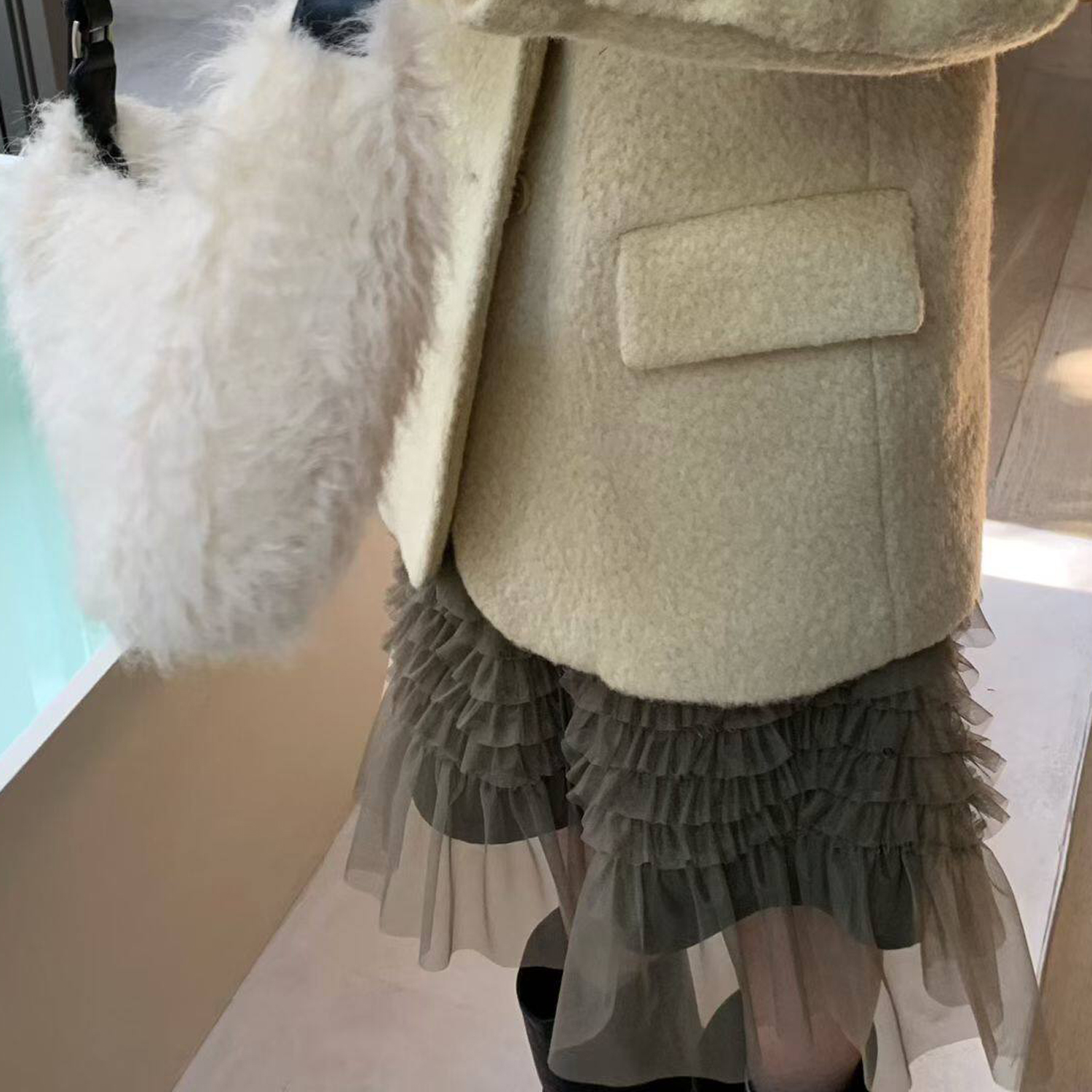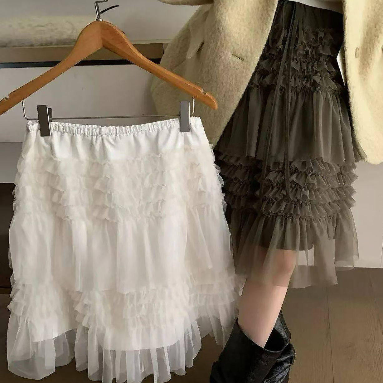 실사 겨울 켜기 새로운 두꺼운 부드러운 작은 꽃무늬 프릴 한 마디 디스플레이 다리 길이 2025 겨울 분위기 센스 반신 스커트