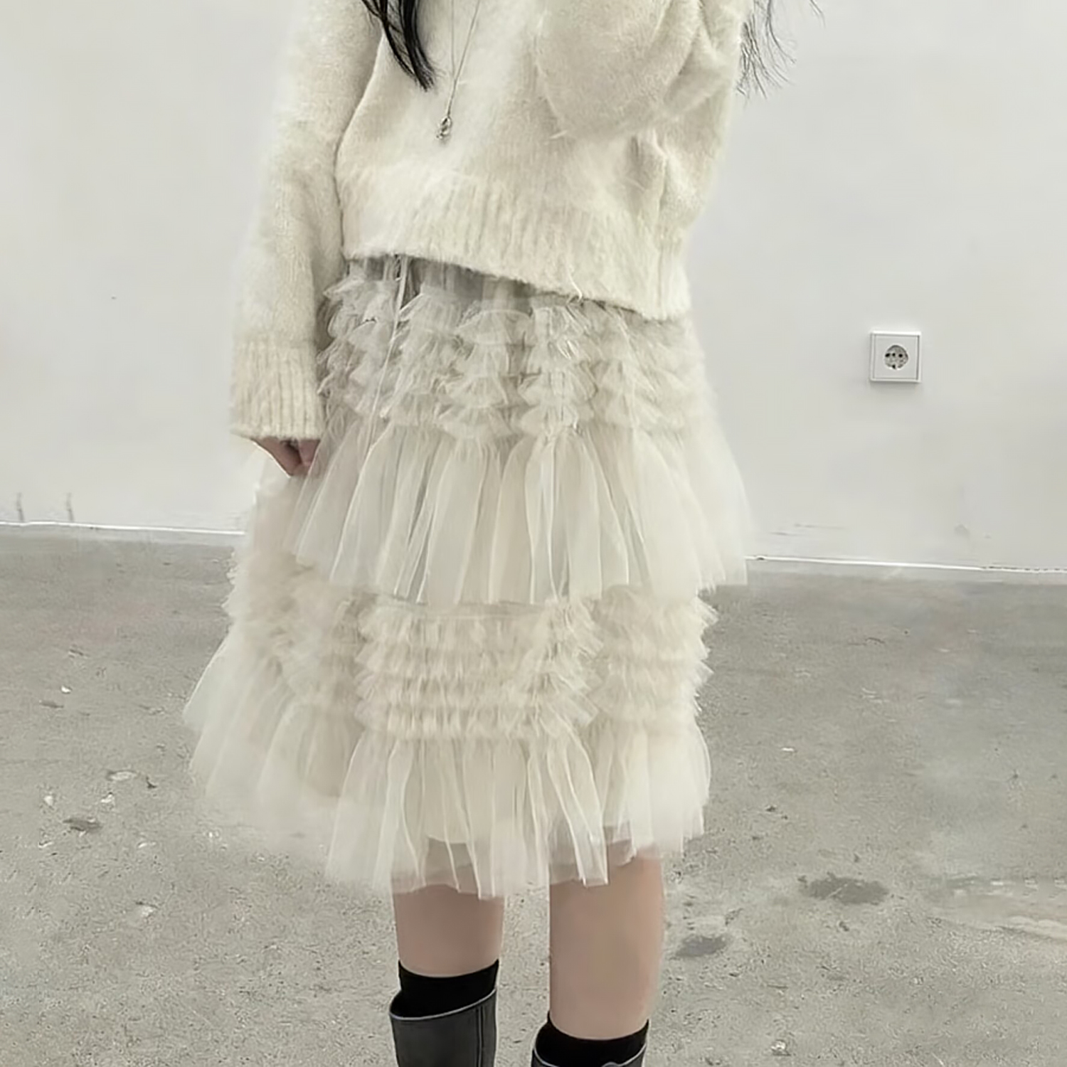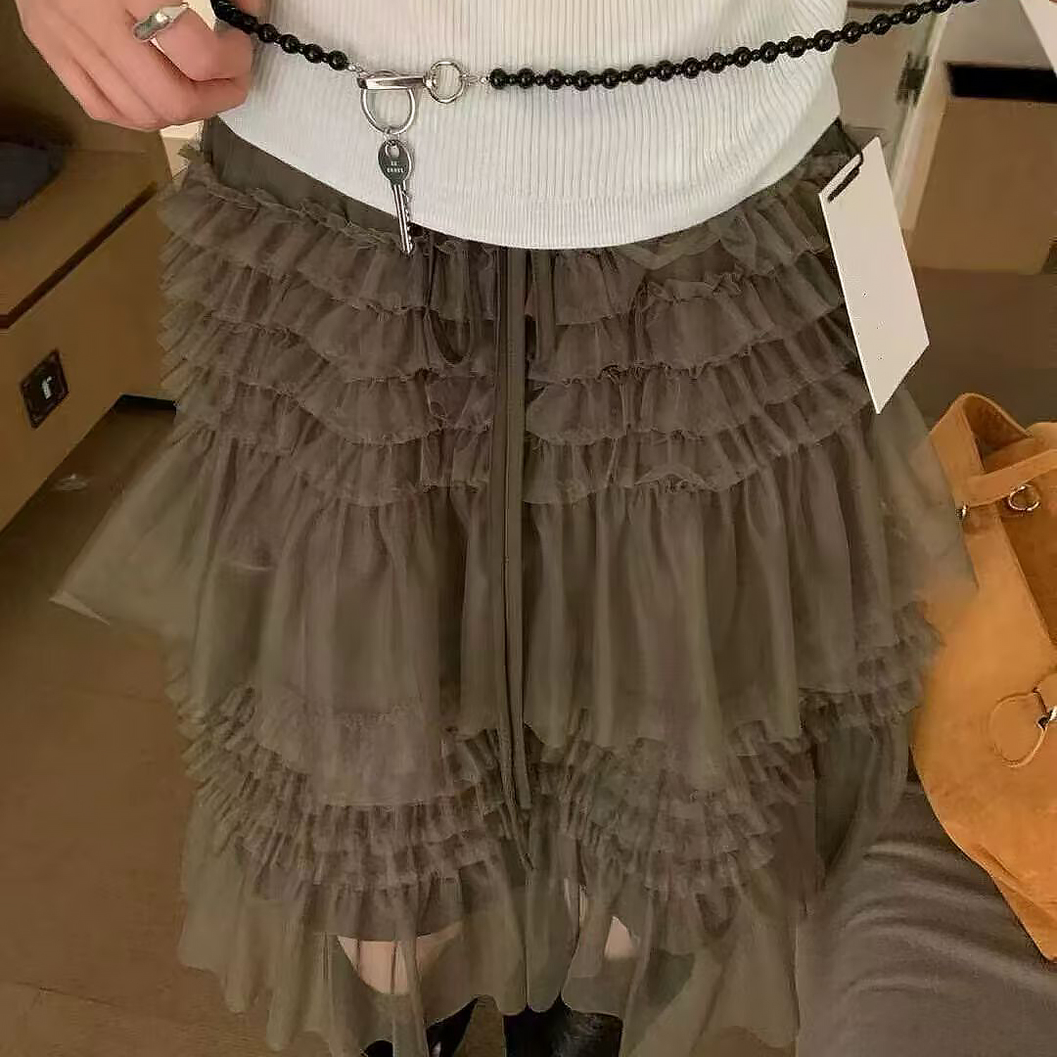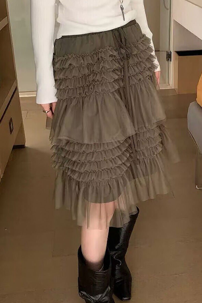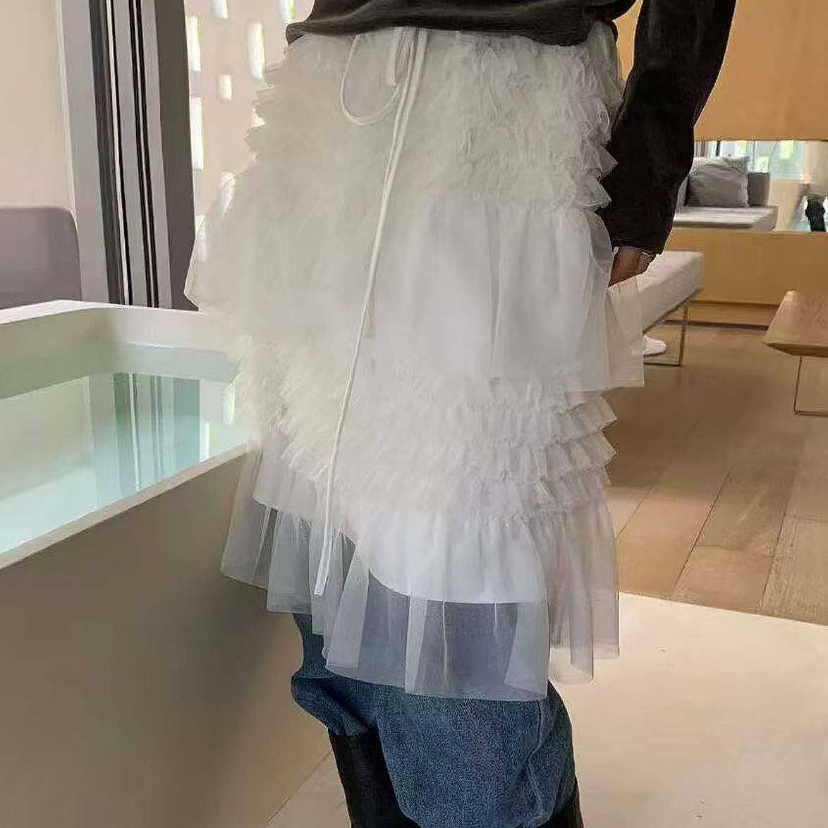 실사 겨울 켜기 새로운 두꺼운 부드러운 작은 꽃무늬 프릴 한 마디 디스플레이 다리 길이 2025 겨울 분위기 센스 반신 스커트