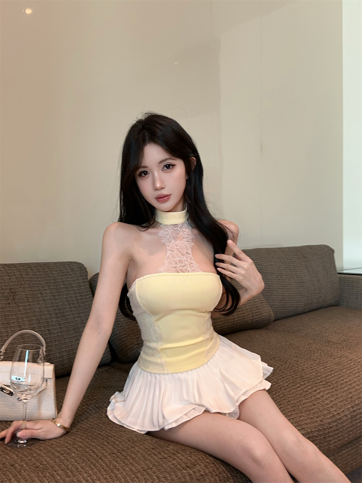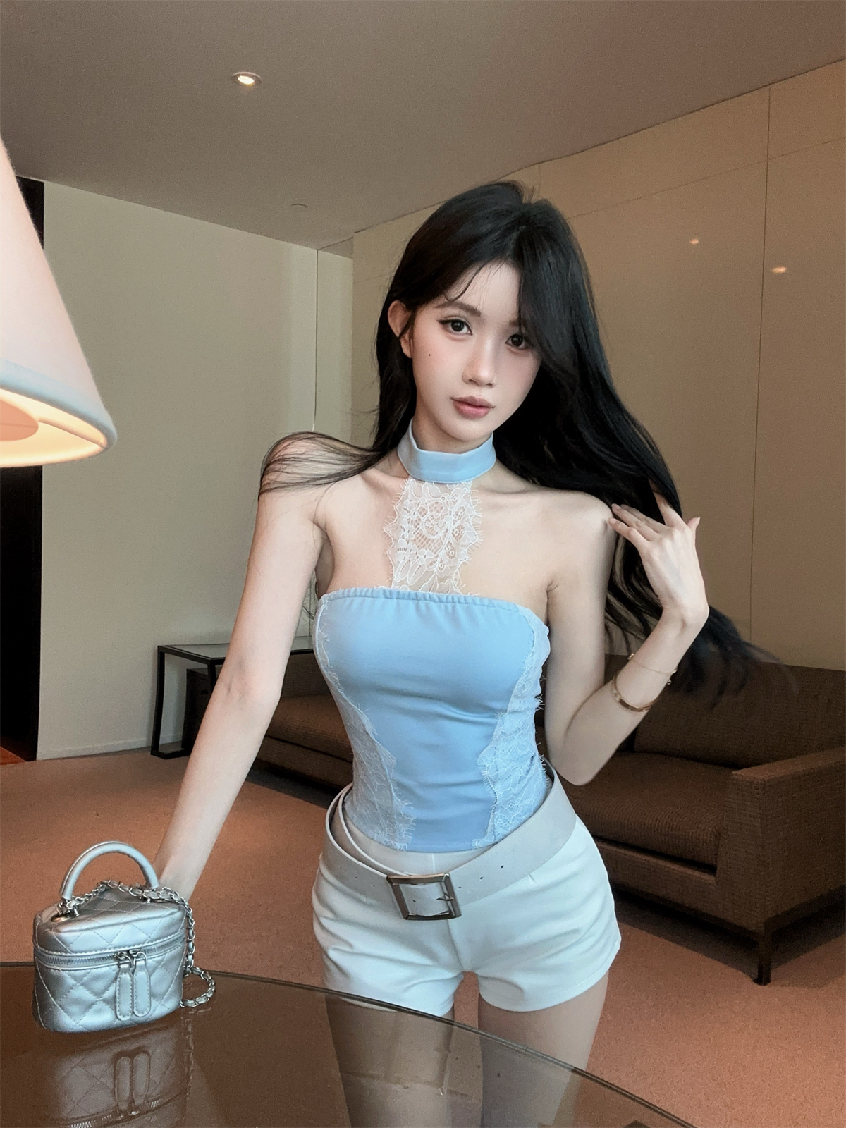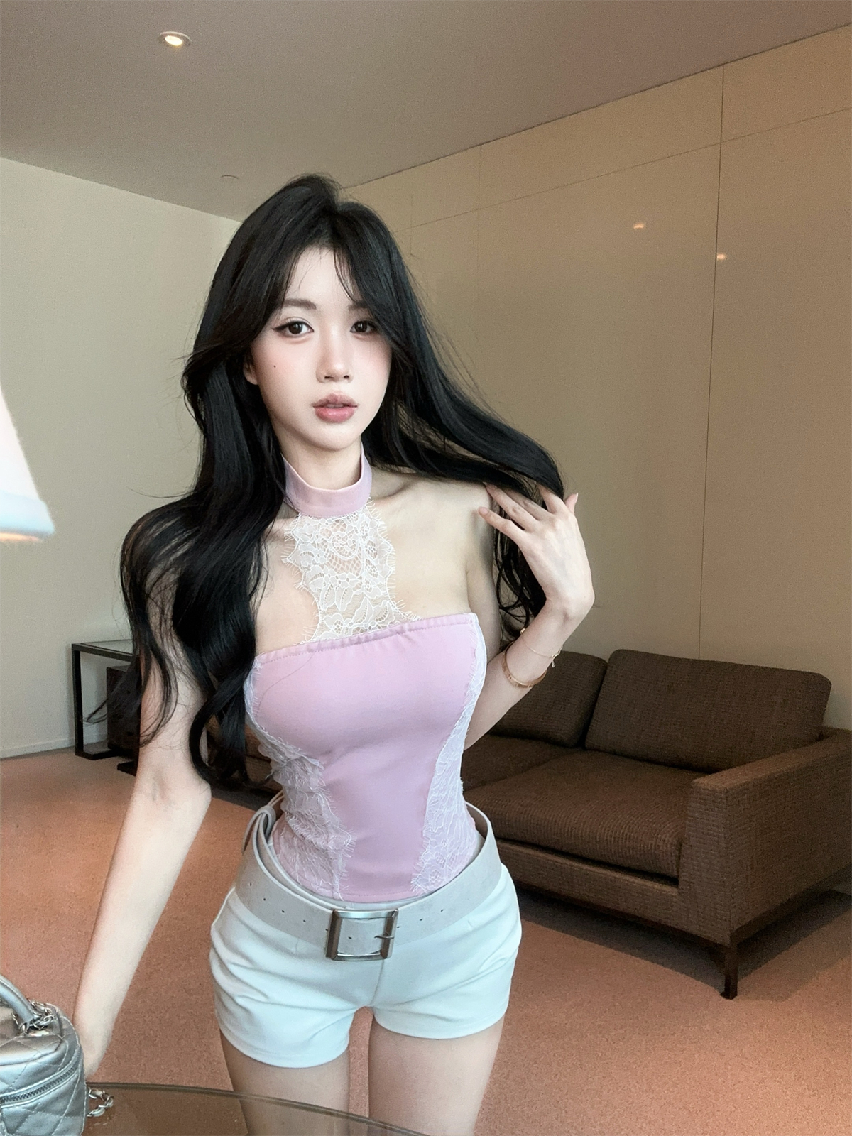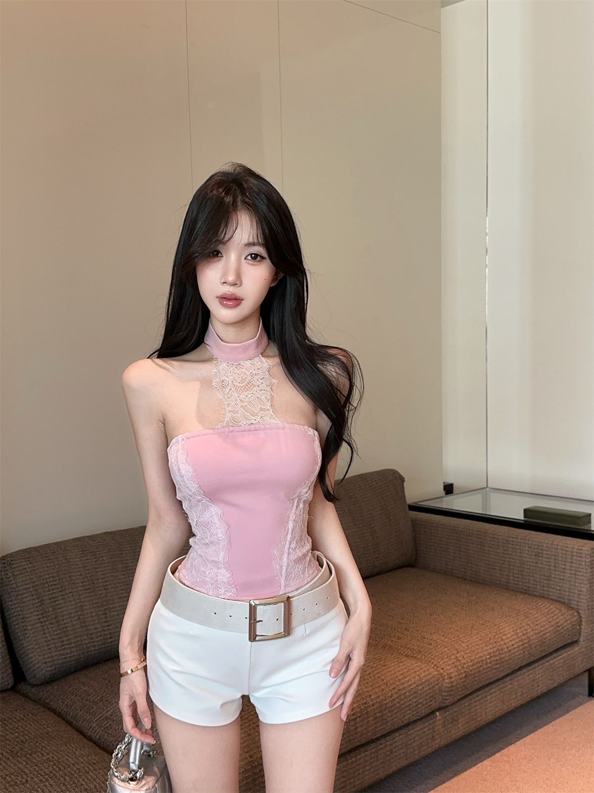 실제 촬영 정가 레이스 스티치 순수한 욕망 튜브 톱 스플릿 맨위 포장 가슴 조끼 여성 봄과 여름