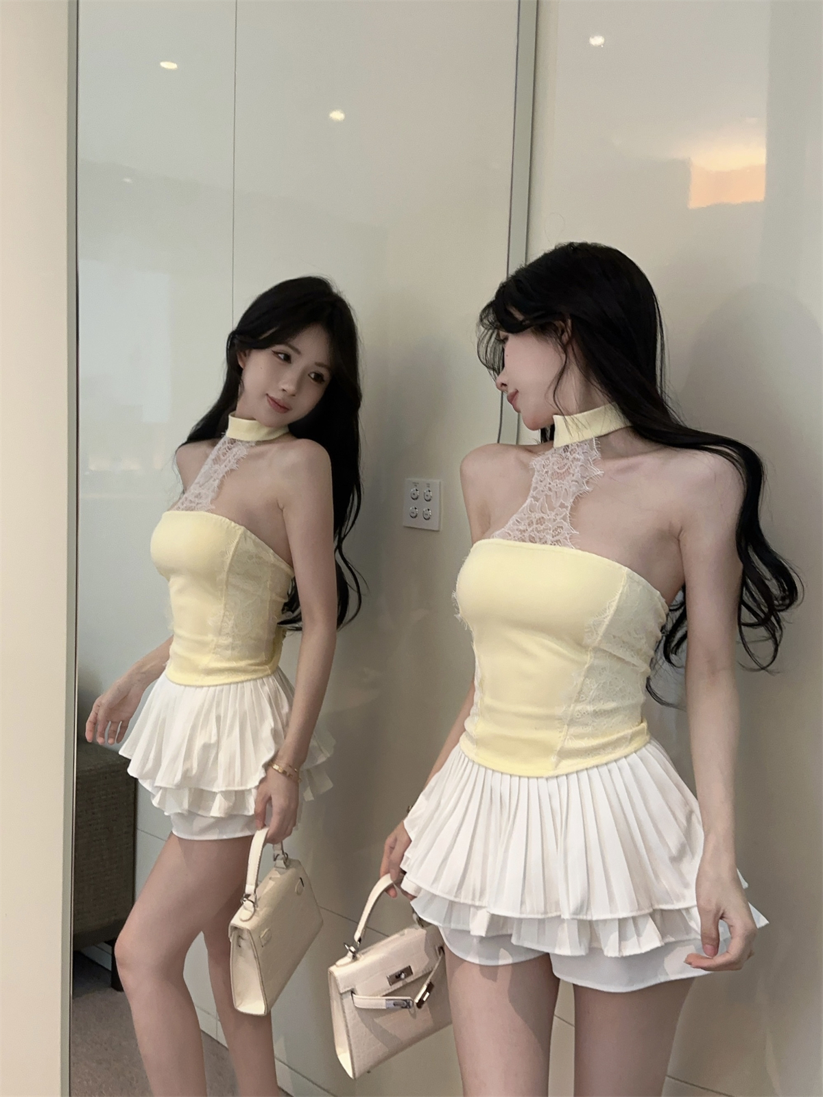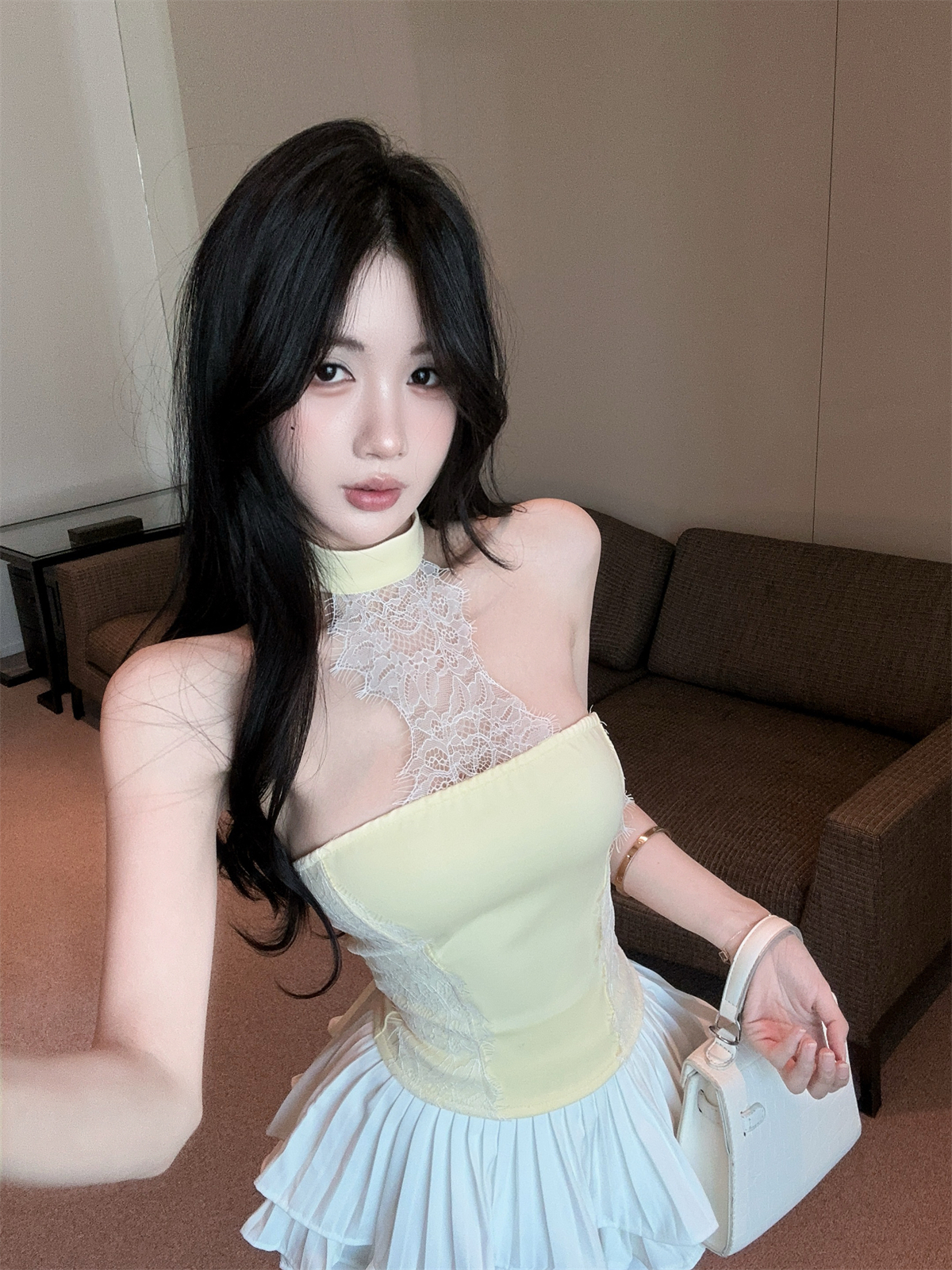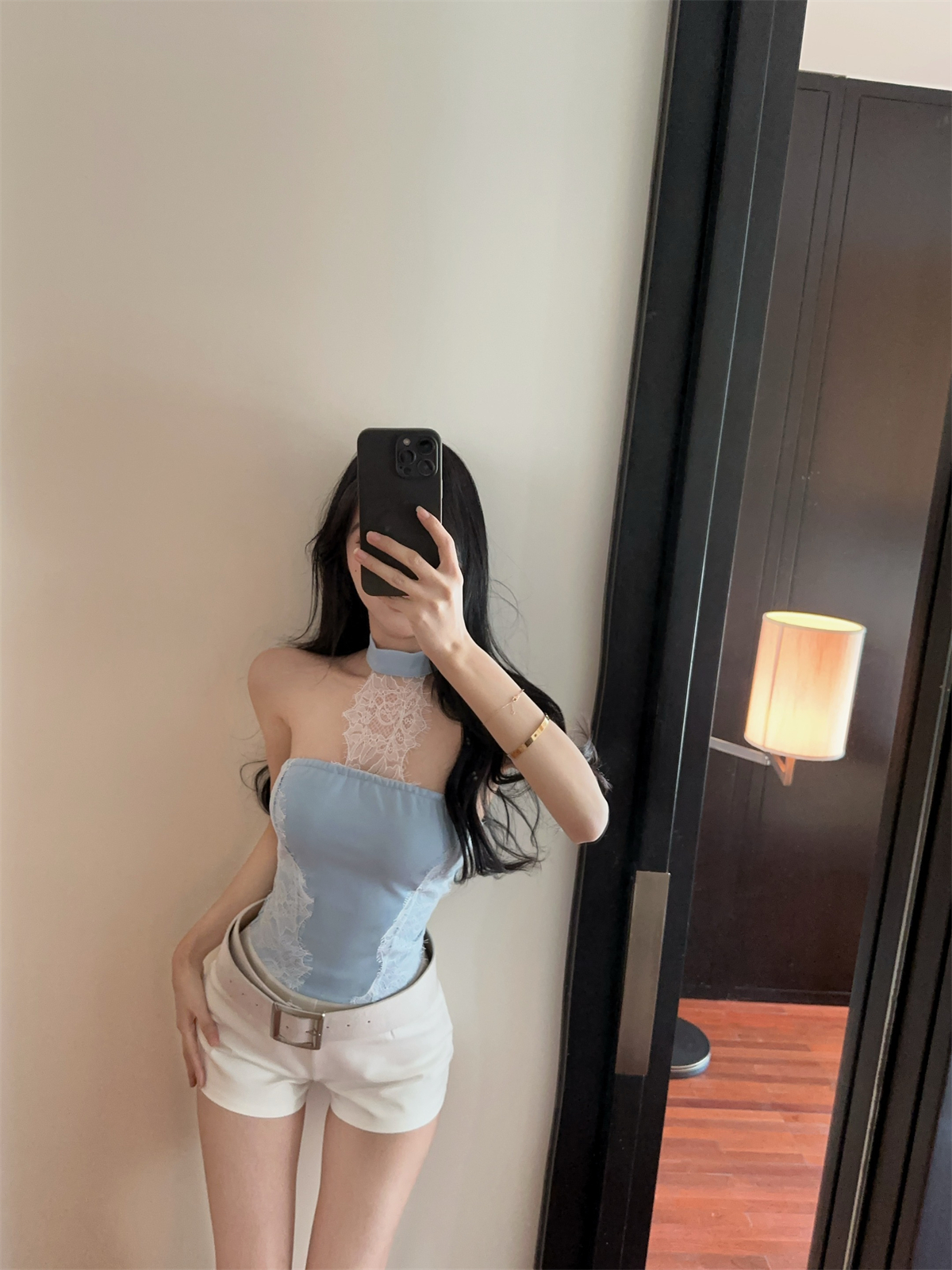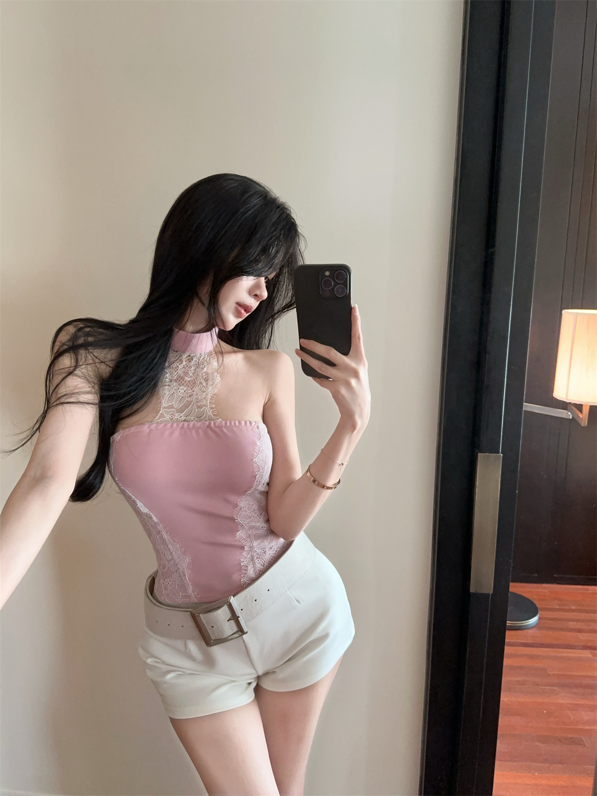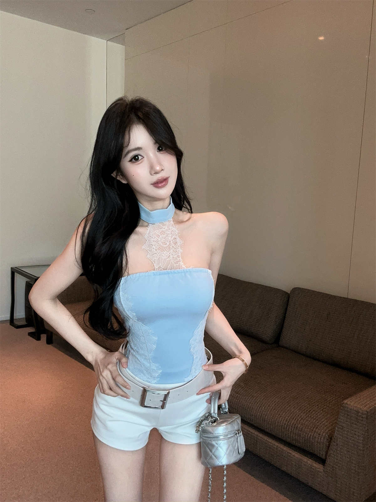 실제 촬영 정가 레이스 스티치 순수한 욕망 튜브 톱 스플릿 맨위 포장 가슴 조끼 여성 봄과 여름