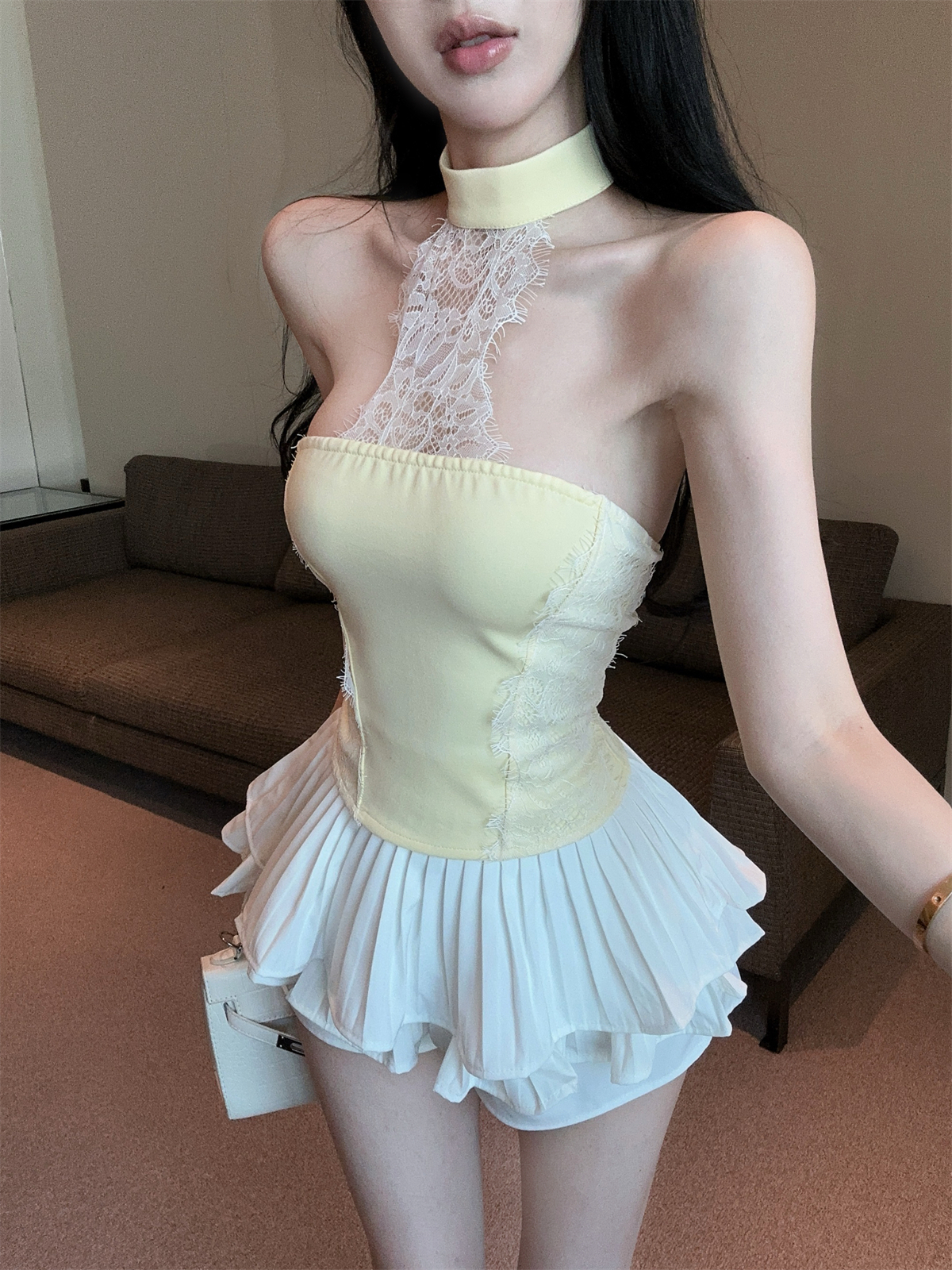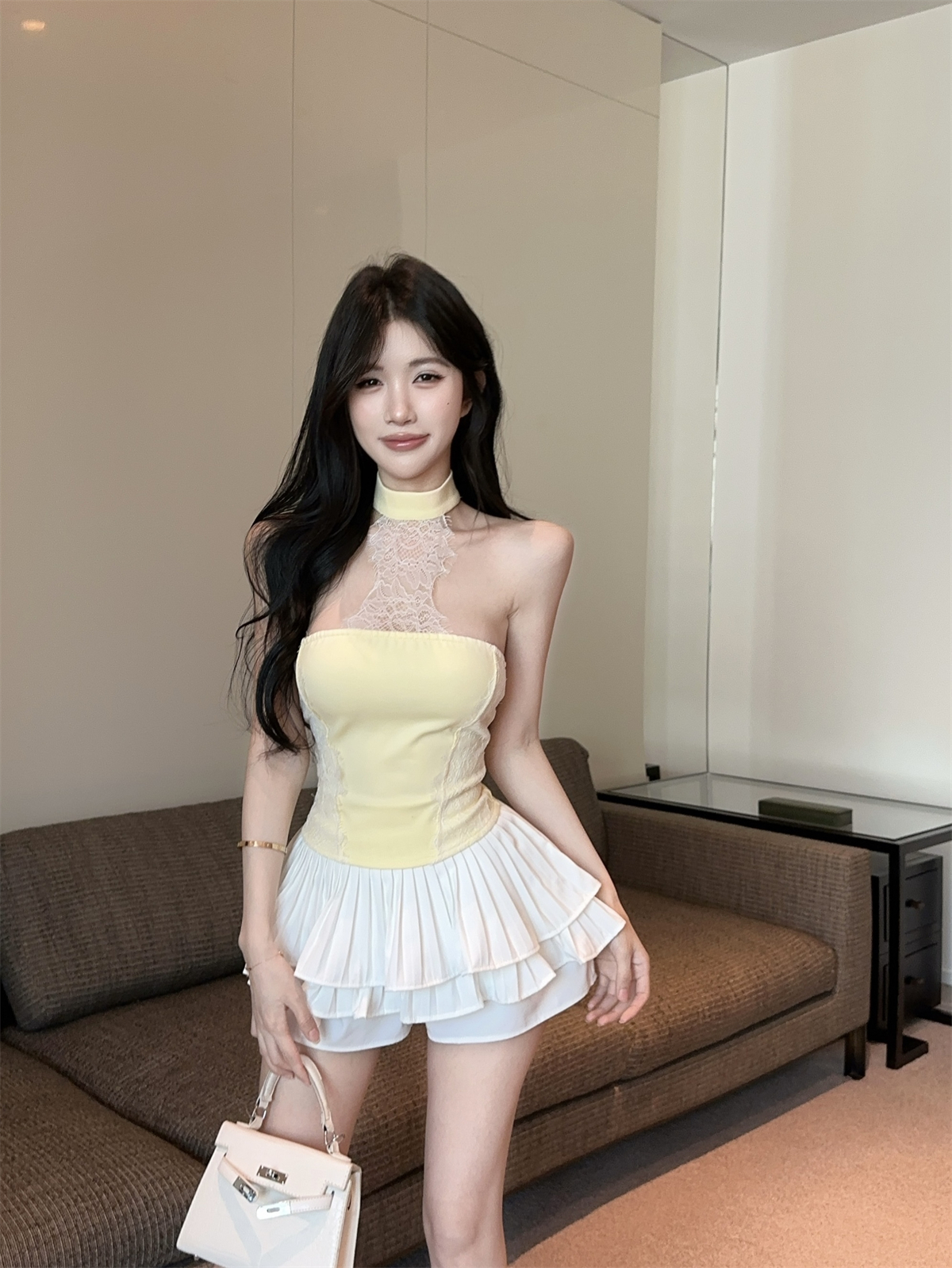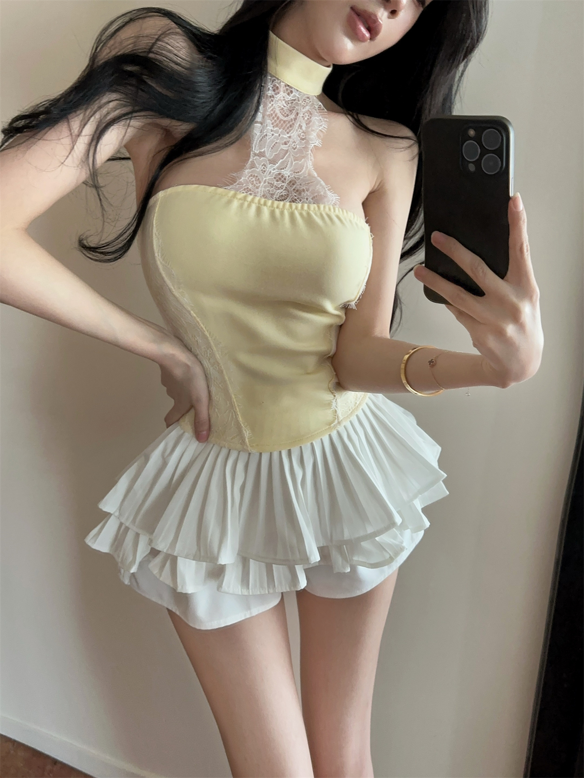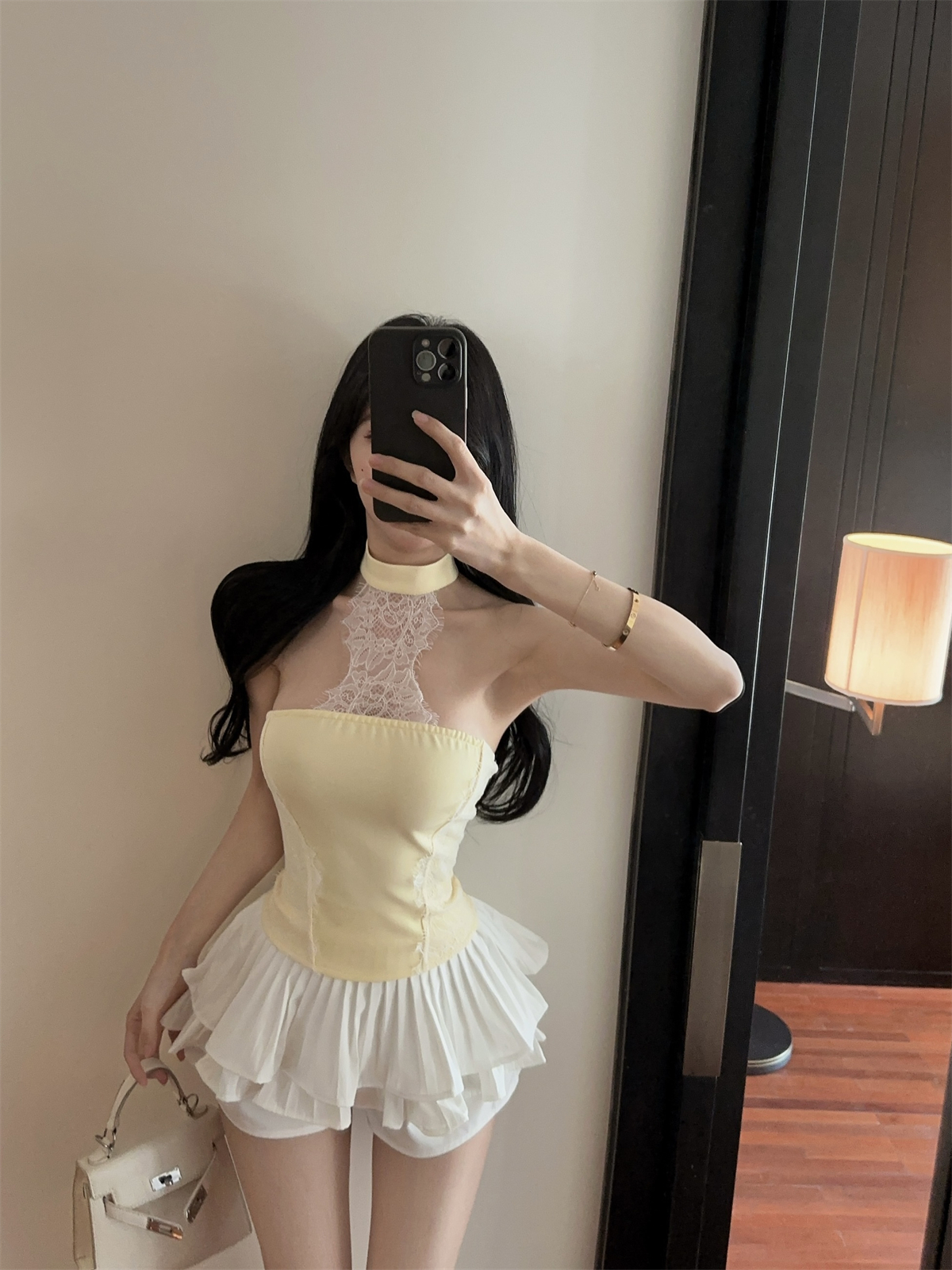 실제 촬영 정가 레이스 스티치 순수한 욕망 튜브 톱 스플릿 맨위 포장 가슴 조끼 여성 봄과 여름