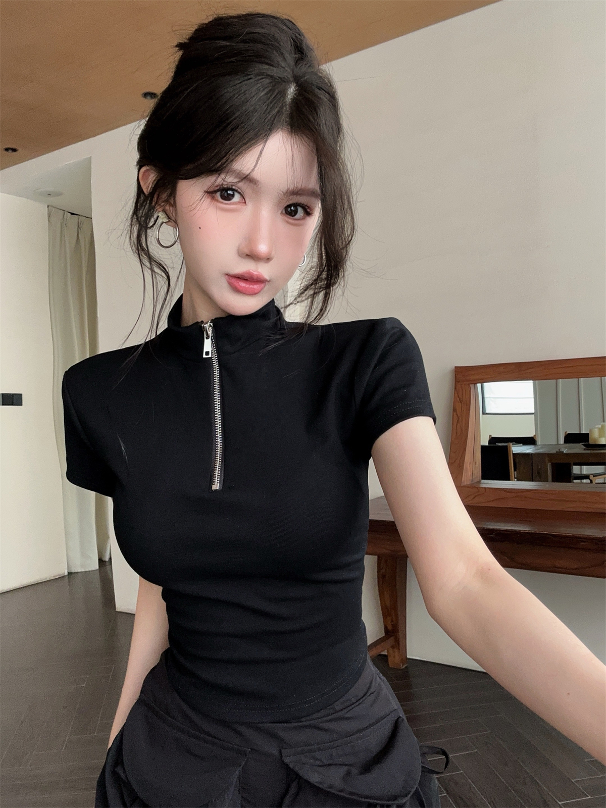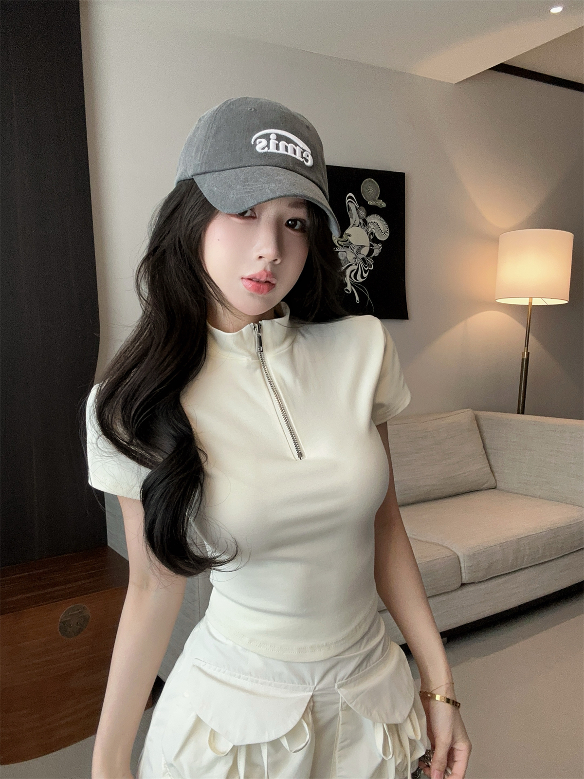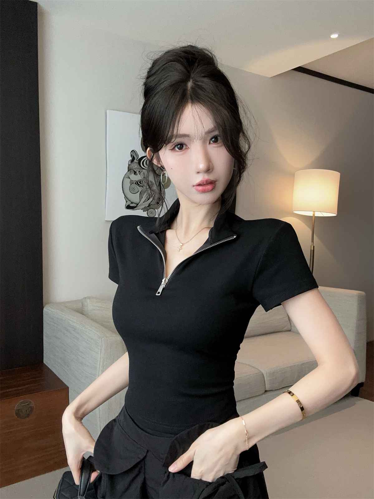 실사 정가 차가운 바람의 소리 핫걸 지퍼 조끼 민소매 질감 센스 맨위 올인원 의류 여성 여름