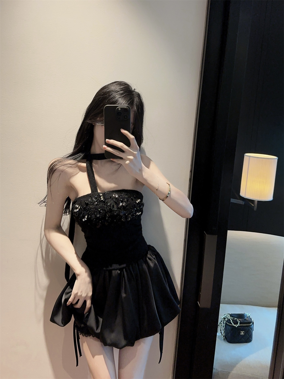 실사 정가 순수한 욕망 달콤함 레이스 꽃 자카드 허리 튜브탑 맨위 새틴 퍼프 치마 세트 여성 봄