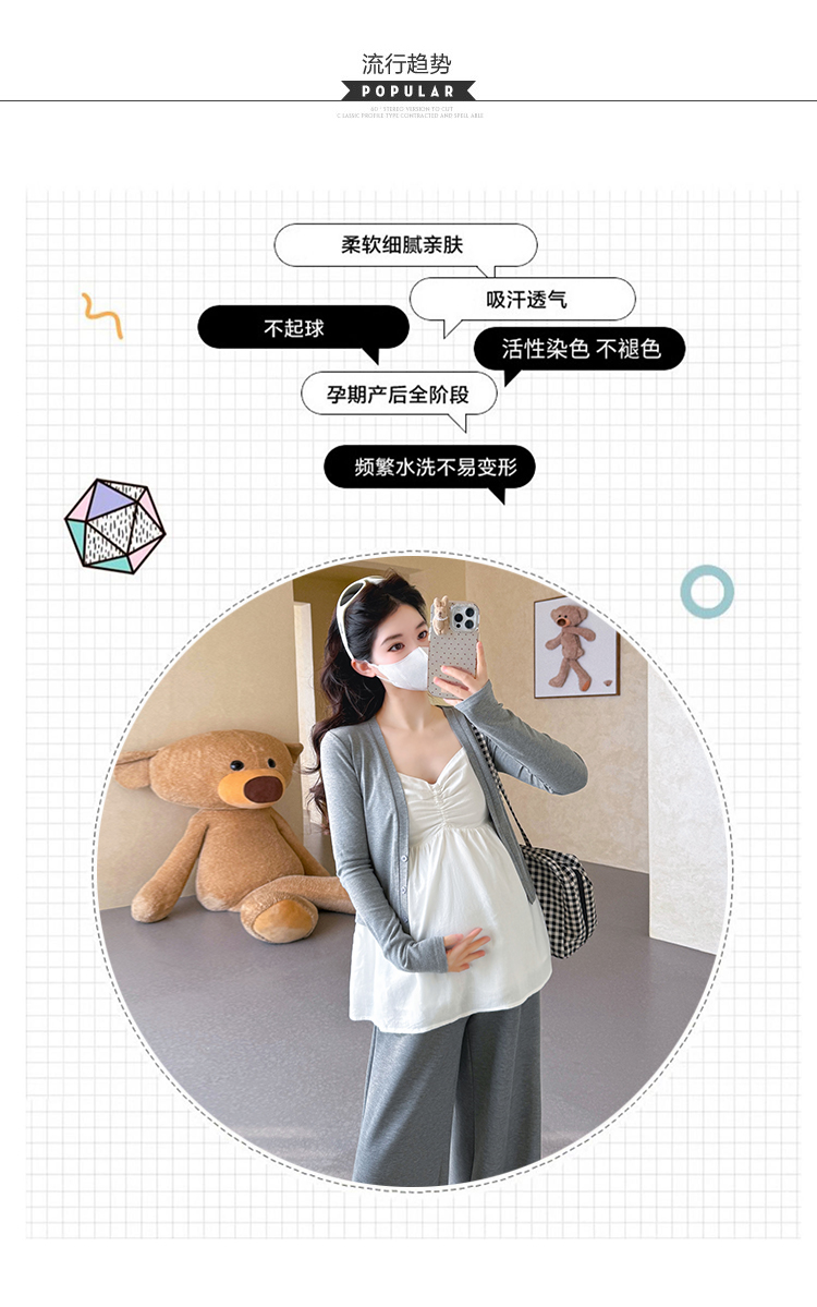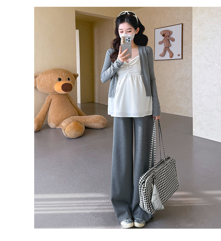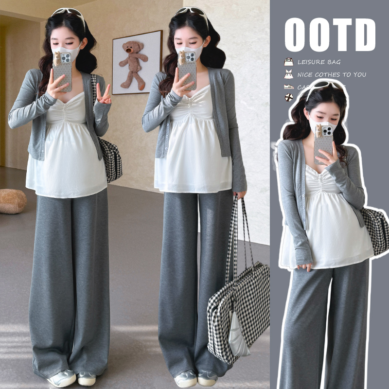 실사 xian 물품 봄 신제품 한국 스타일 다용도 맨위 베스트 와이드 레그 팬츠 임산부 3종 세트 세트