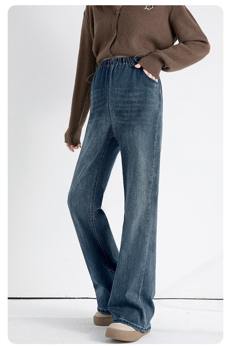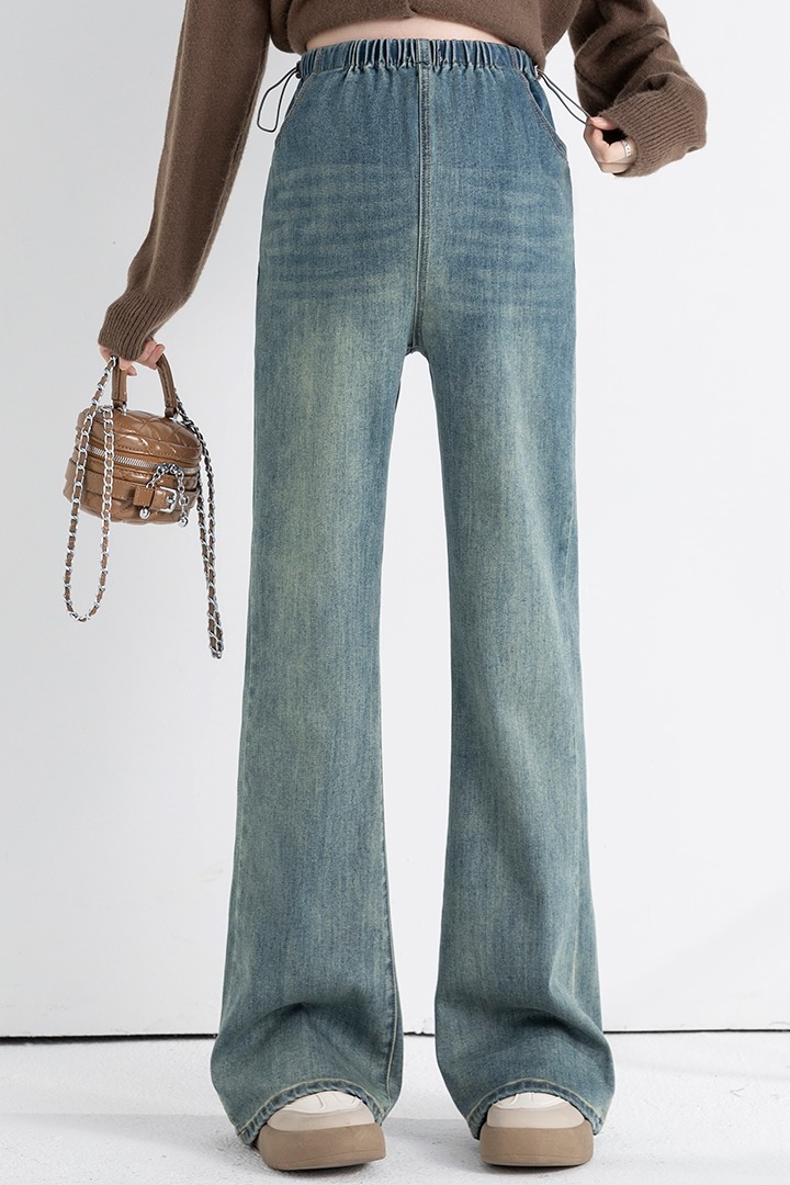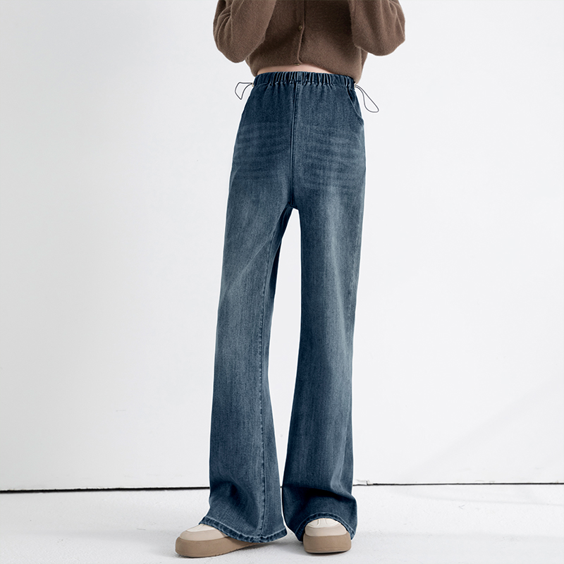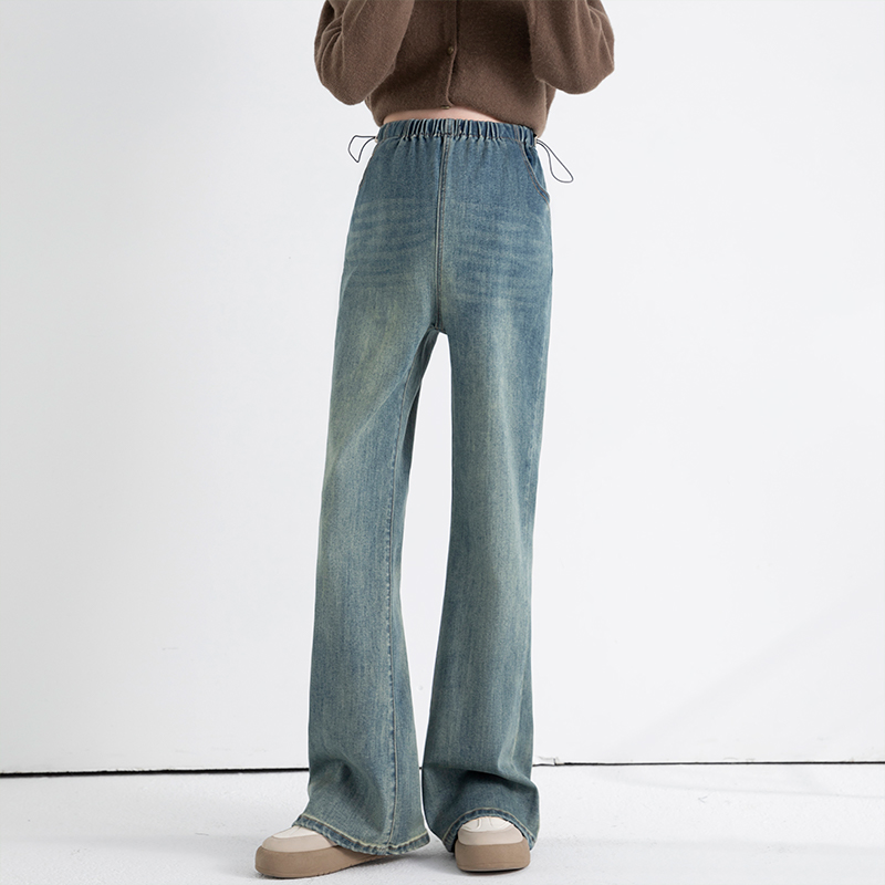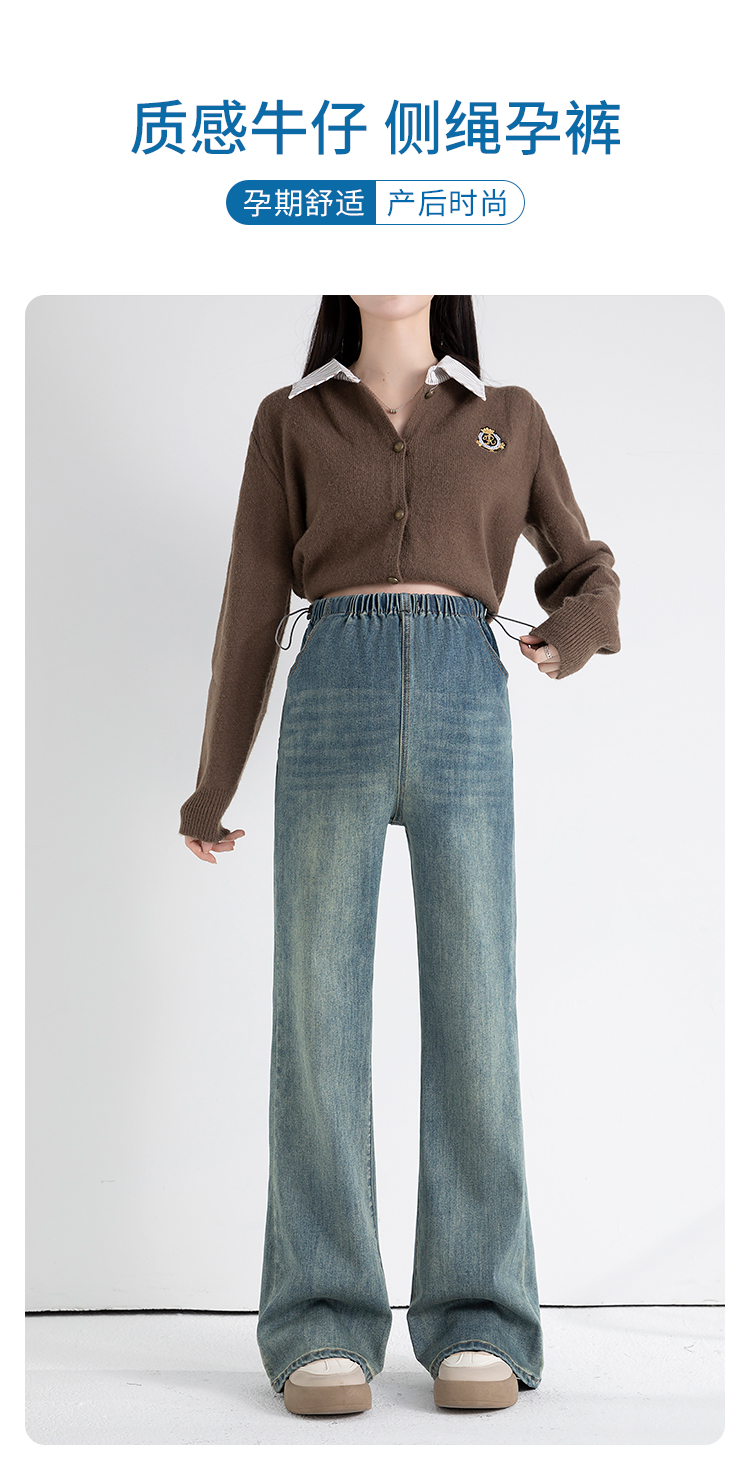 임산부 펌프 로프 데님 긴 바지 단 닝 블루 떨어지지 않음 색상 봄 가을 외출용 와이드 레그 팬츠 스트레이트 팬츠