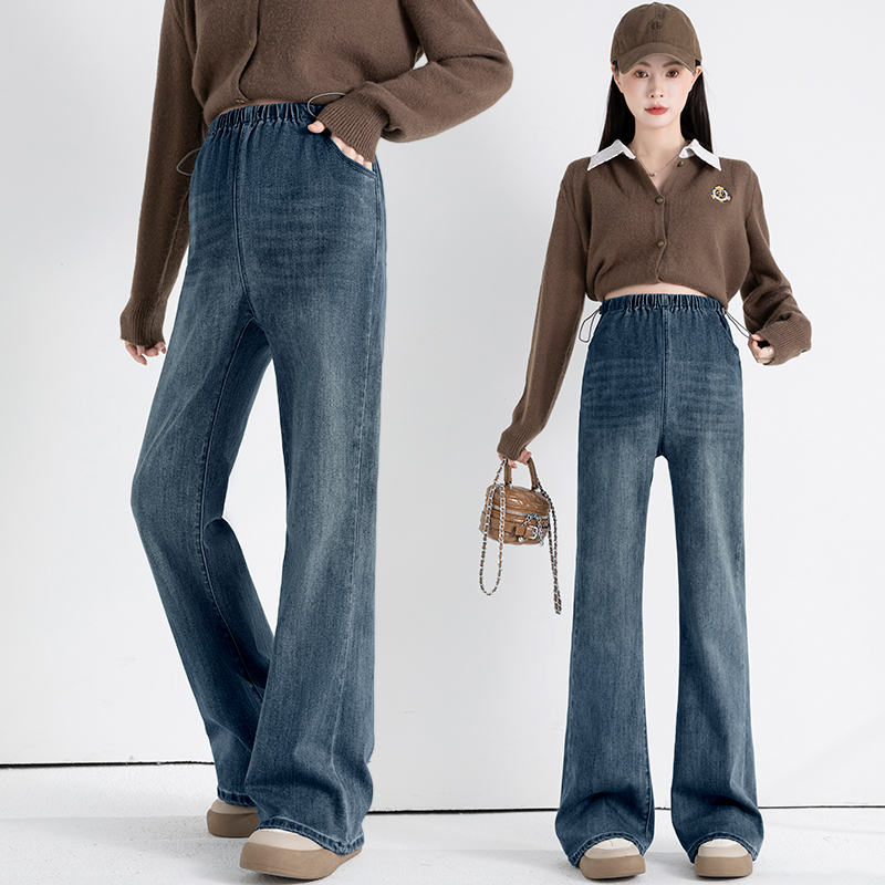 임산부 여름 주간 실크 청바지 9부 바지 신축성 얇은 스타일 외출용 라이 경기 서울 청바지 와이드 레그 팬츠