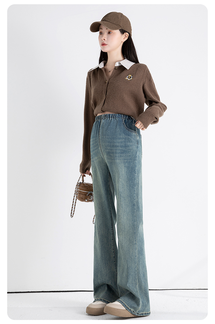 임산부 없음 복부 지지 루즈핏 레트로 청바지 하이웨이스트 몸매 가꾸기 슬림해 보이는 달콤함 넓은 다리 9부 바지