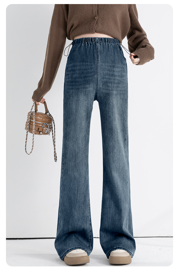 매력 실사 높은 품질 신축성 긴 바지 루즈핏 임산부 측면 펌프 로프 청바지 나팔 바지 넓은 다리 키 큰 남자