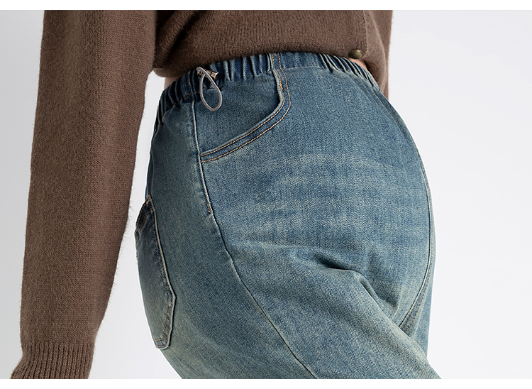 실사 임산부 마이크로 좁은 넓은 다리 있음 주머니 데님 긴 바지 펌프 로프 섹션 외출용 봄과 가을 루즈핏 슬림해 보이는 바닥 청소