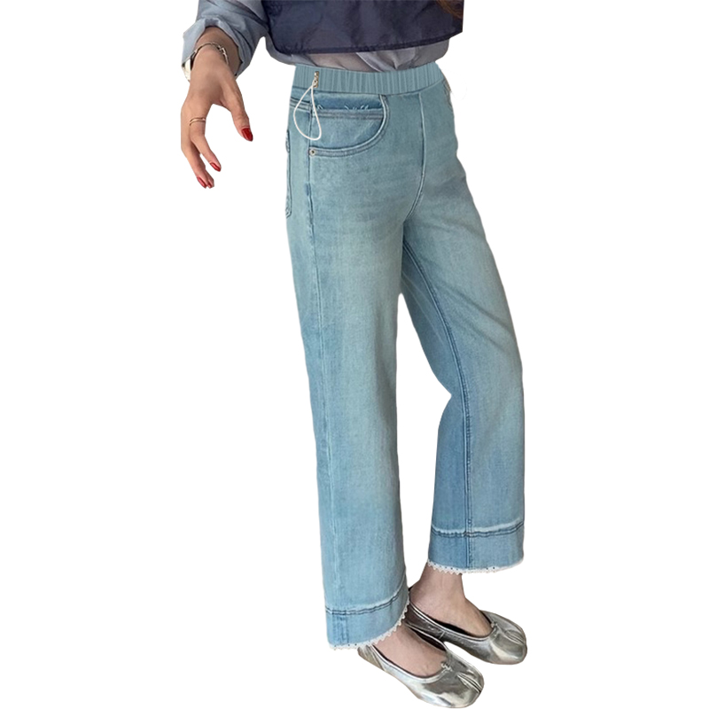 임산부 여름 주간 실크 청바지 9부 바지 신축성 얇은 스타일 외출용 라이 경기 서울 청바지 와이드 레그 팬츠