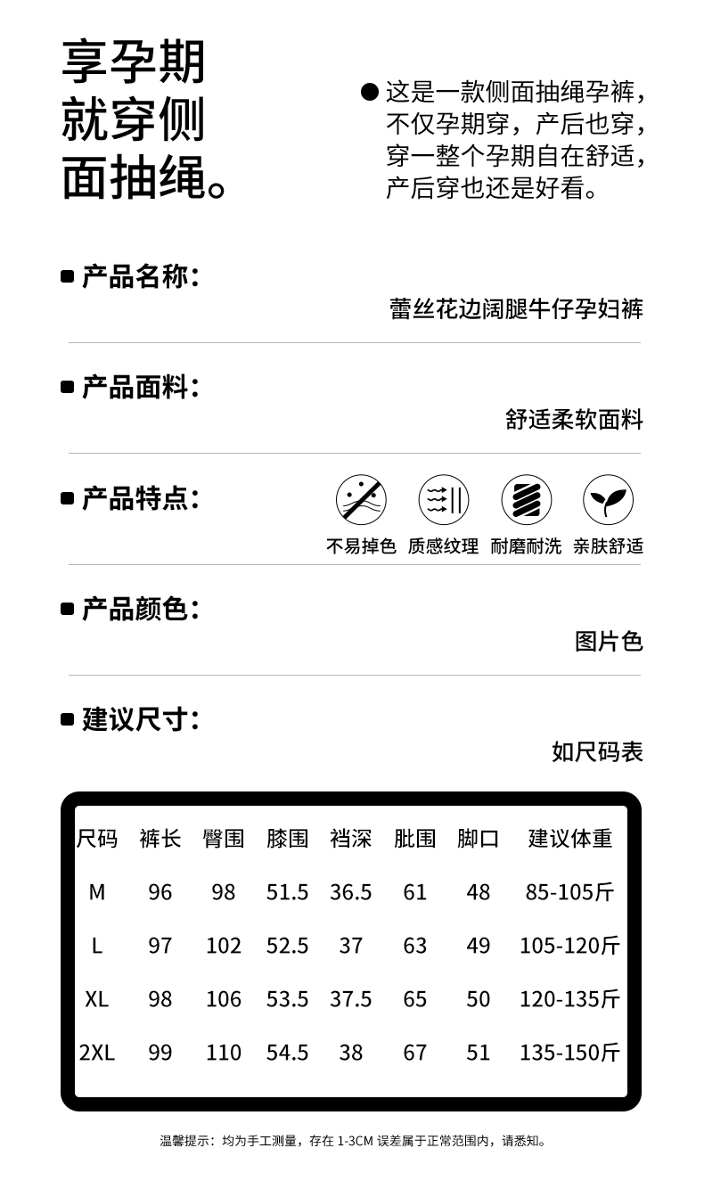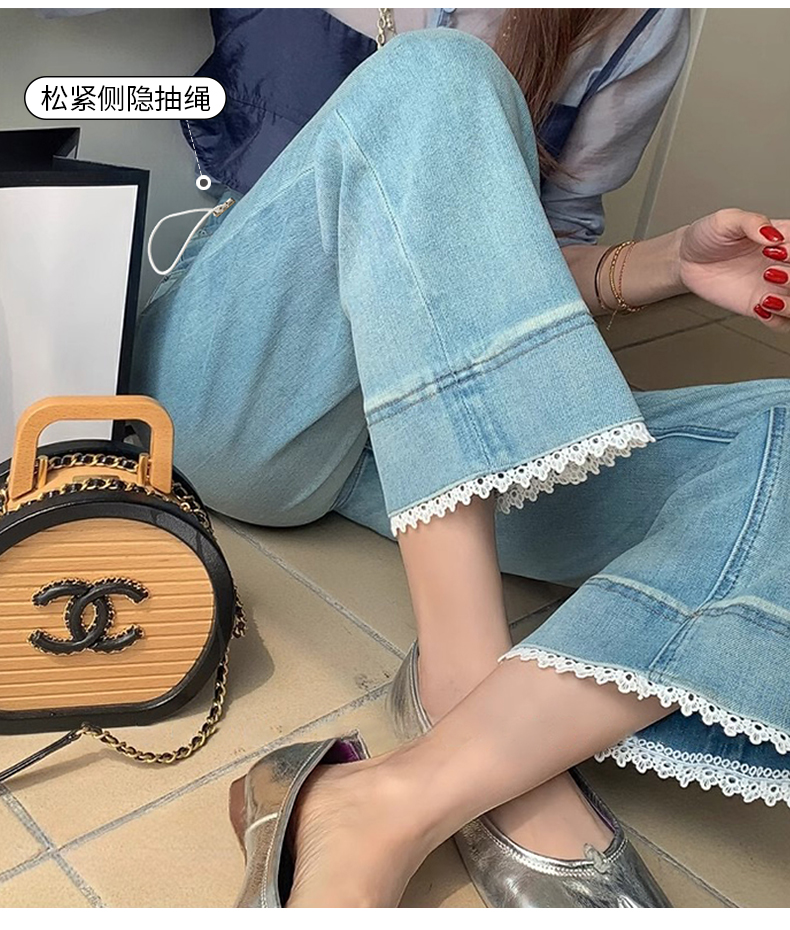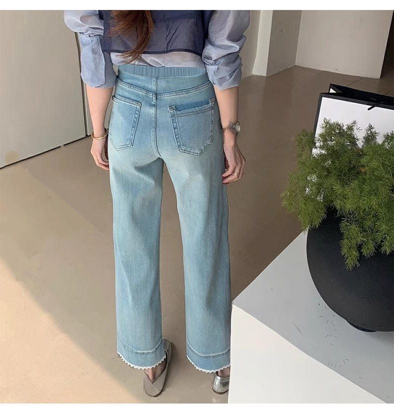 임산부 펌프 로프 레이스 청바지 9부 바지 없음 복부 지지 스트레이트 팬츠 루즈핏 와이드 레그 팬츠